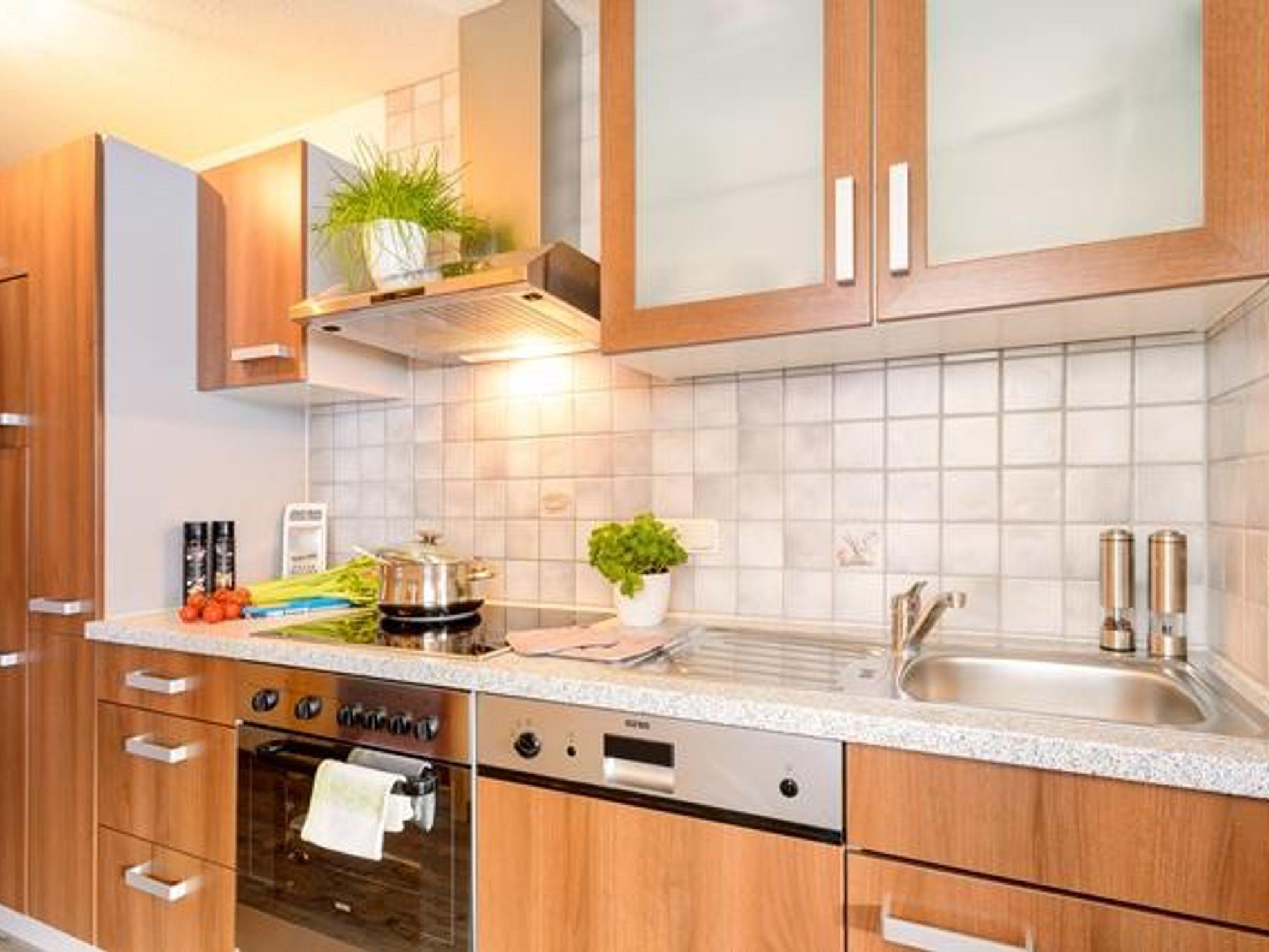 Schlafzimmer mit 3 Betten, Wohn-Schlafraum mit Doppelschlafcouch, Küchenzeile (Mikrowelle, Spülmaschine), Dusche/WC, Fön, Zimmersafe, Sat-TV, Radio, Durchwahltelefon, WLAN, sowie Balkon, ca. 48 qm für 2-5 Personen.