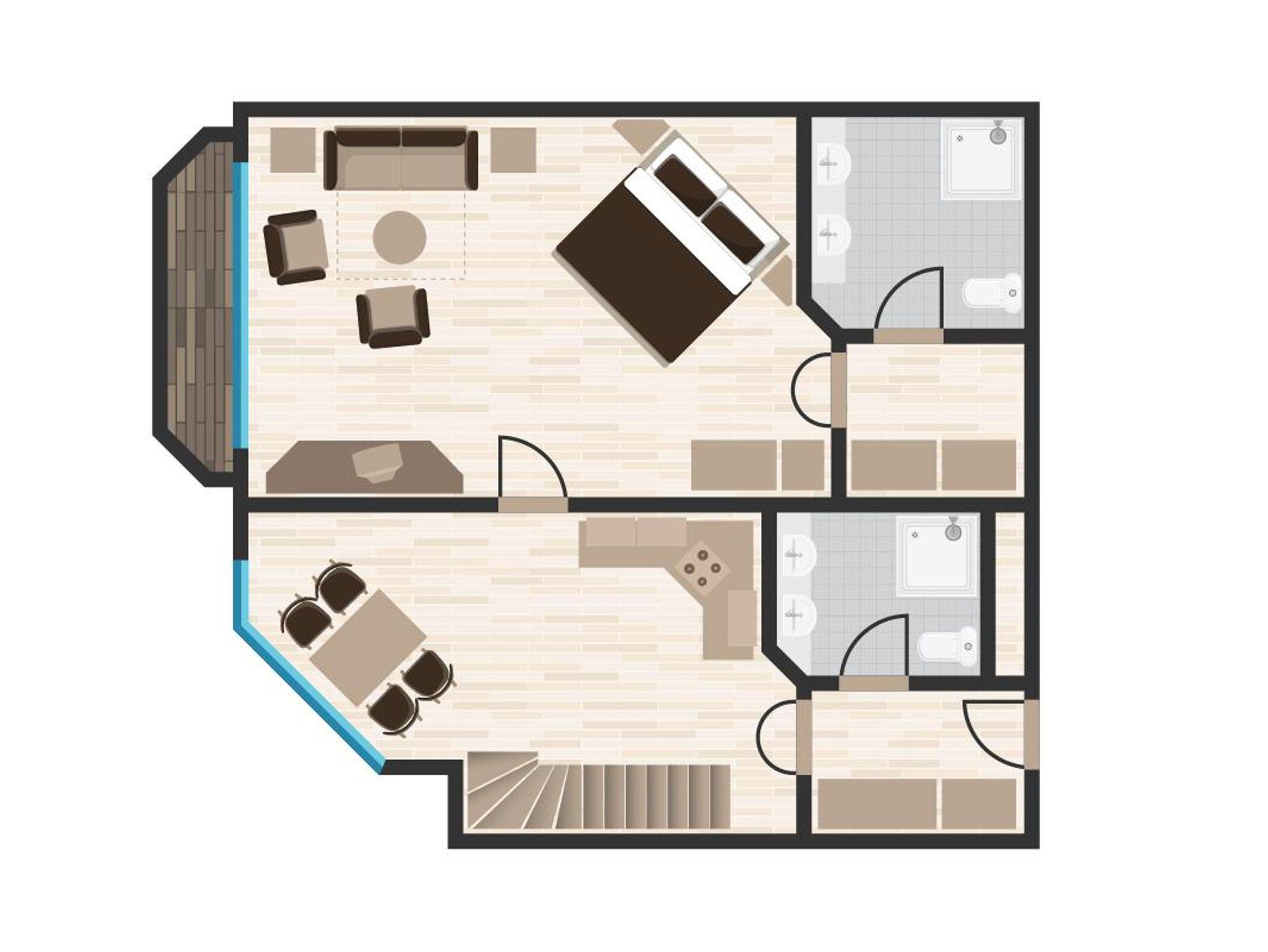 Unser Apartment Rubin mit ca. 70 qm. verfügt mit zwei Etagen über Elternschlafzimmer, Kinderzimmer, L-Küche mit großen Kühlschrank, 4er Ceranfeld, Mikro/Backofenkombination, Geschirrspülmaschine, Kaffeepadautomat, Toaster, Wasserkocher, Voll ausgestattet, Sitzecke, 2 Badezimmer mit Dusche, Doppelwaschbecken, WC, große Flachbildfernseher, WIFI Hotspot, Wintergarten und Balkon mit Süd-West Ausrichtung.