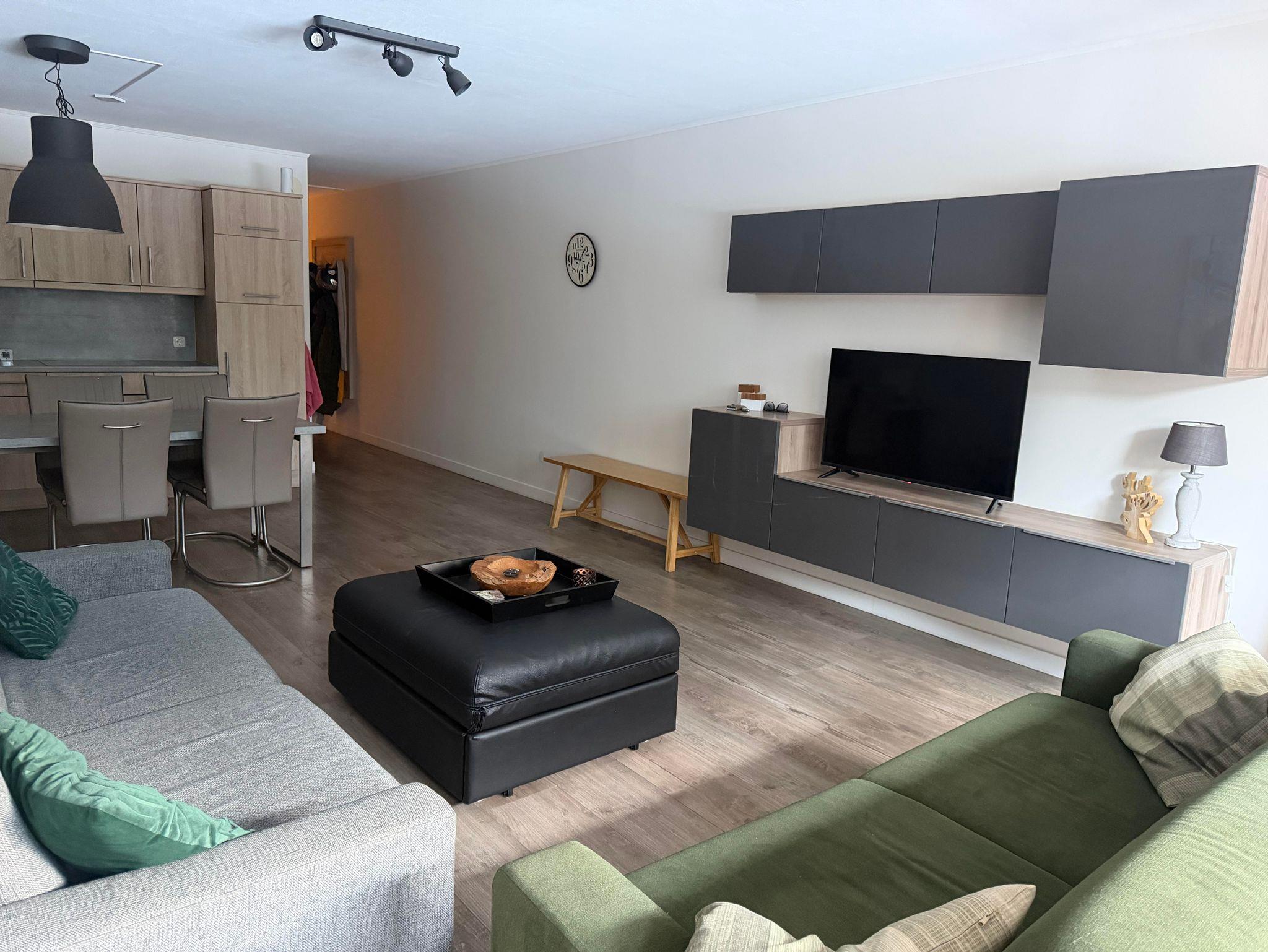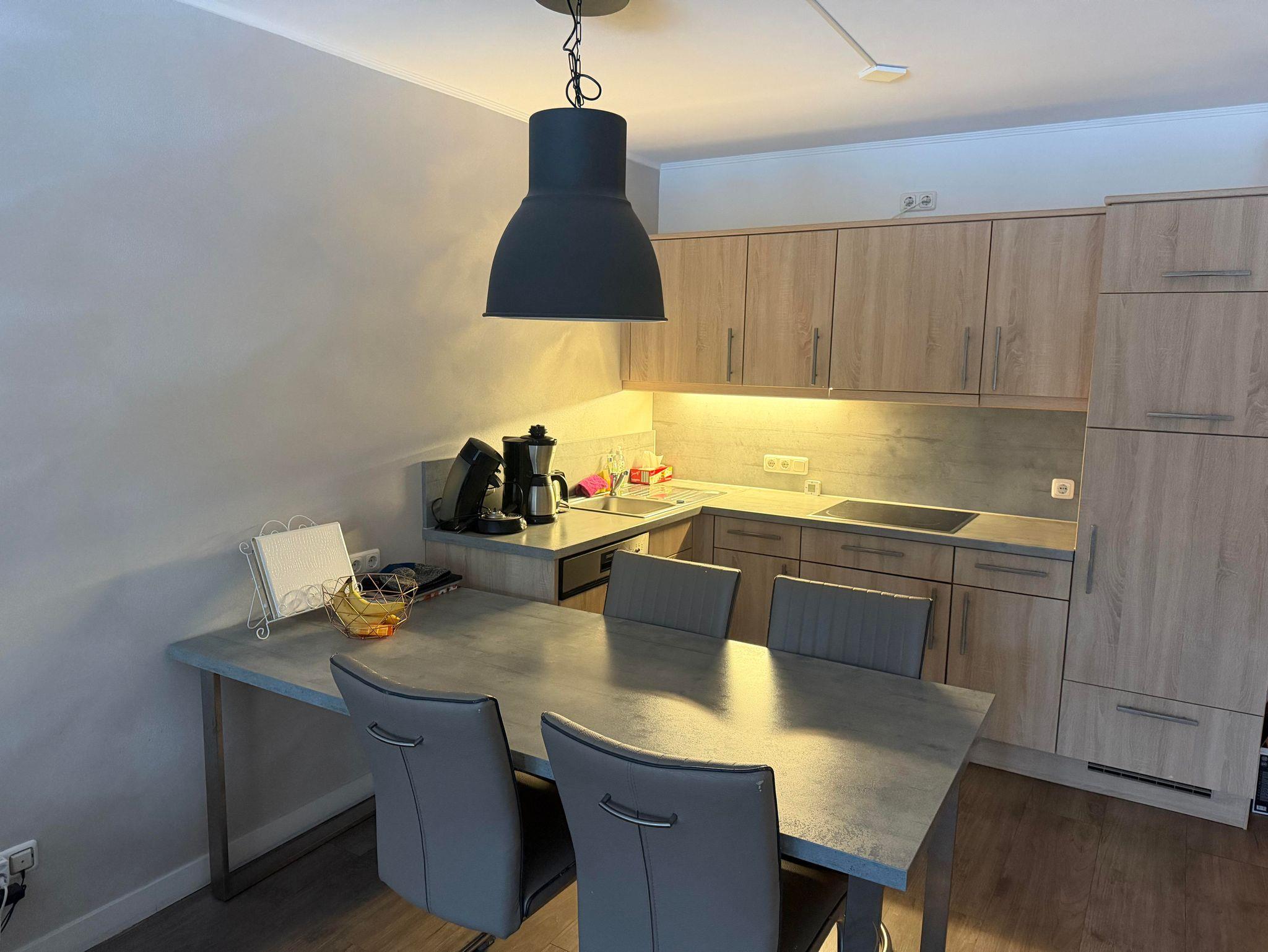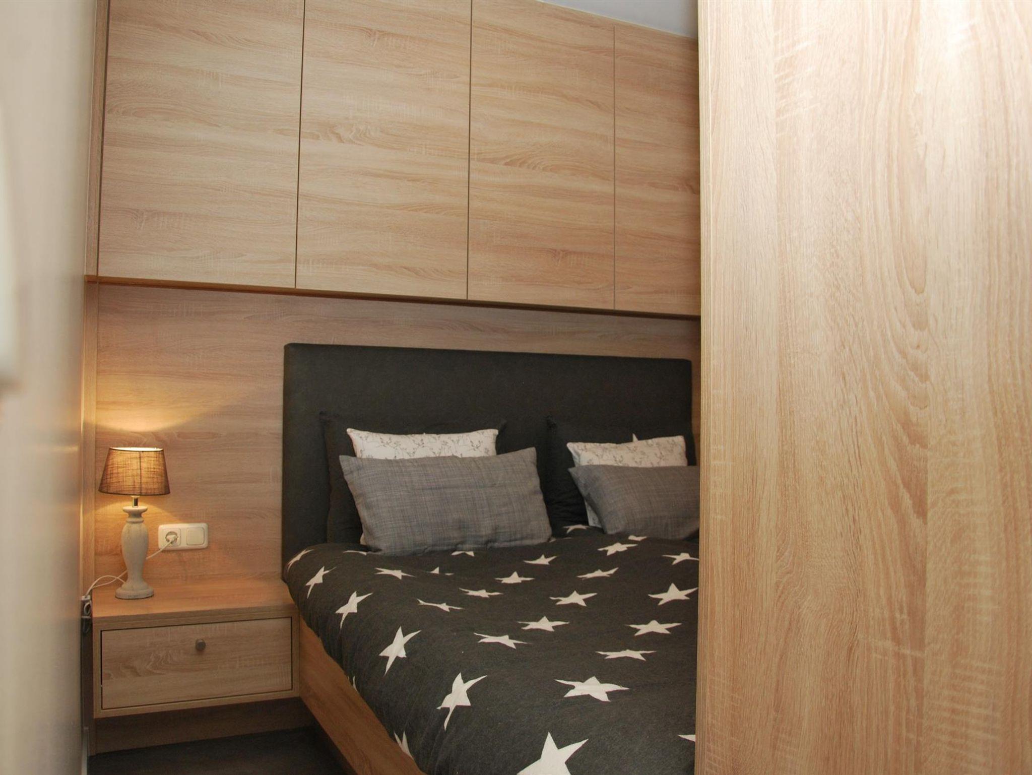 Die Wohnung (55 m2) bietet Platz für maximal 5 Personen und befindet sich auf der 5. Etage des Aparthotels (Aufzüge vorhanden). Die Wohnung verfügt über ein Schrankbett mit Doppelbett, eine Schlafsofa im Wohnbereich, eine voll ausgestattete Küche, über ein Bad mit Dusche und WC und einen Südbalkon.