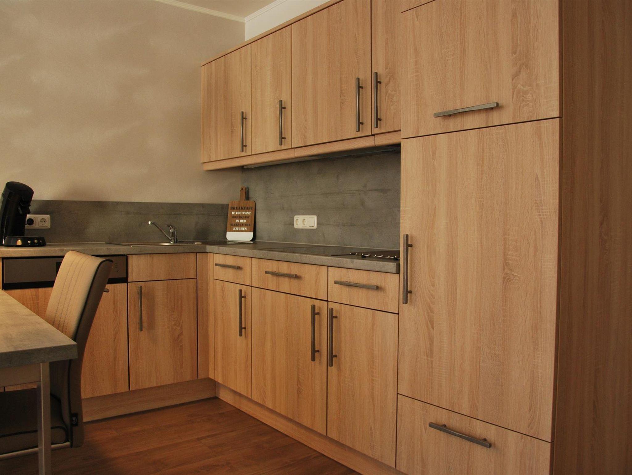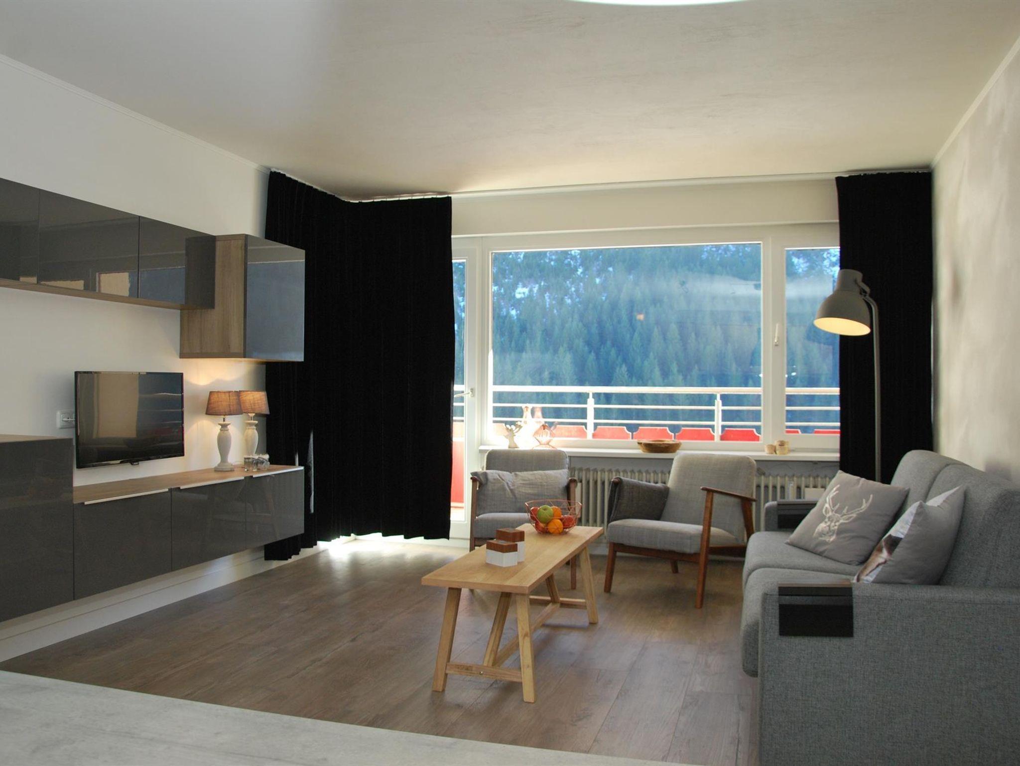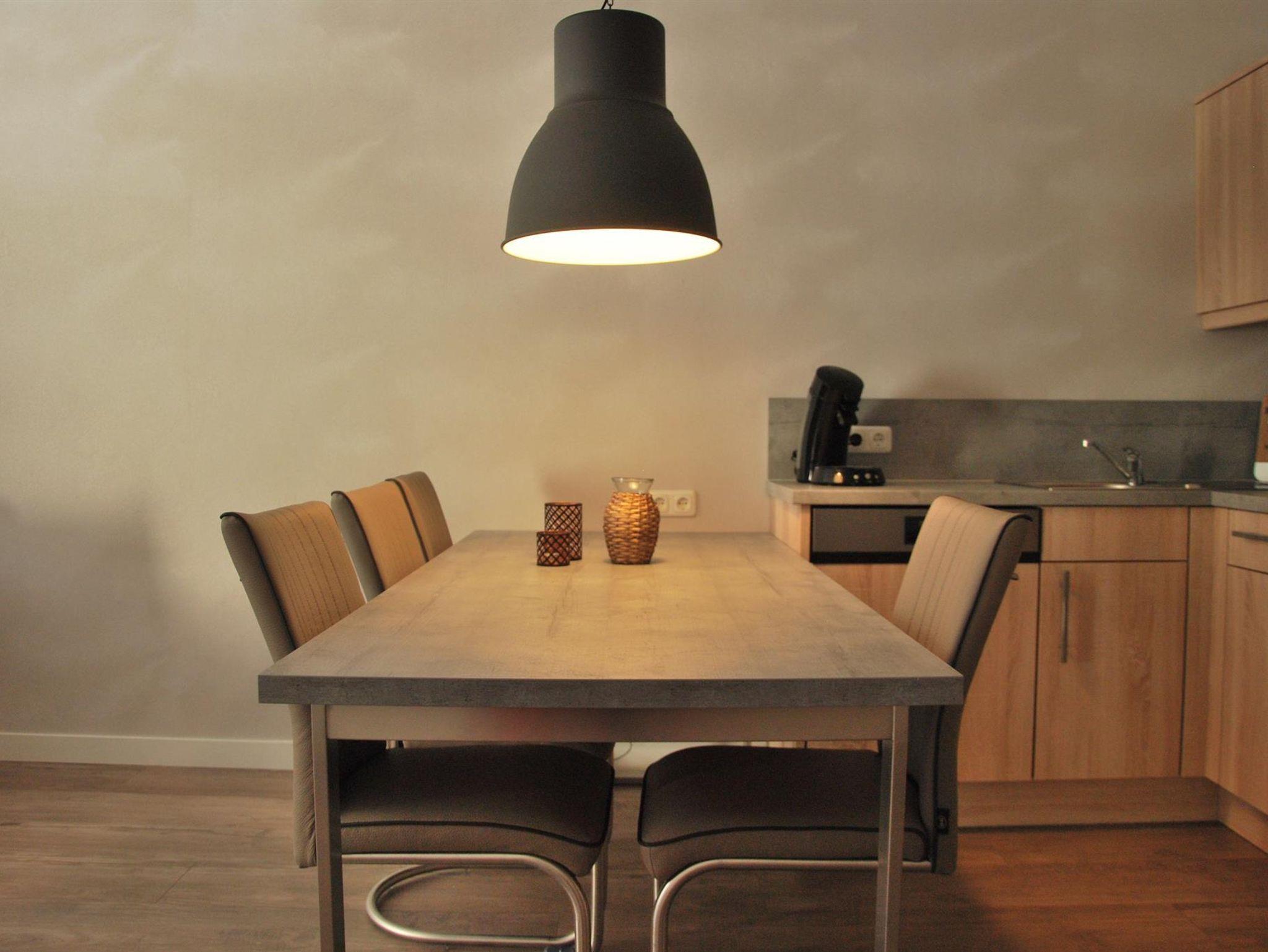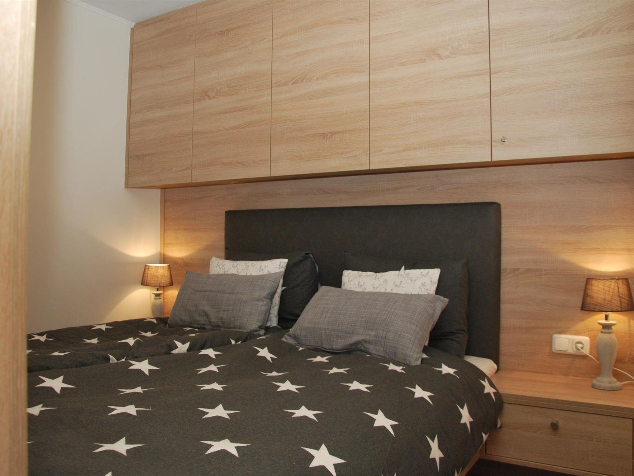 Die Wohnung (55 m2) bietet Platz für maximal 5 Personen und befindet sich auf der 5. Etage des Aparthotels (Aufzüge vorhanden). Die Wohnung verfügt über ein Schrankbett mit Doppelbett, eine Schlafsofa im Wohnbereich, eine voll ausgestattete Küche, über ein Bad mit Dusche und WC und einen Südbalkon.