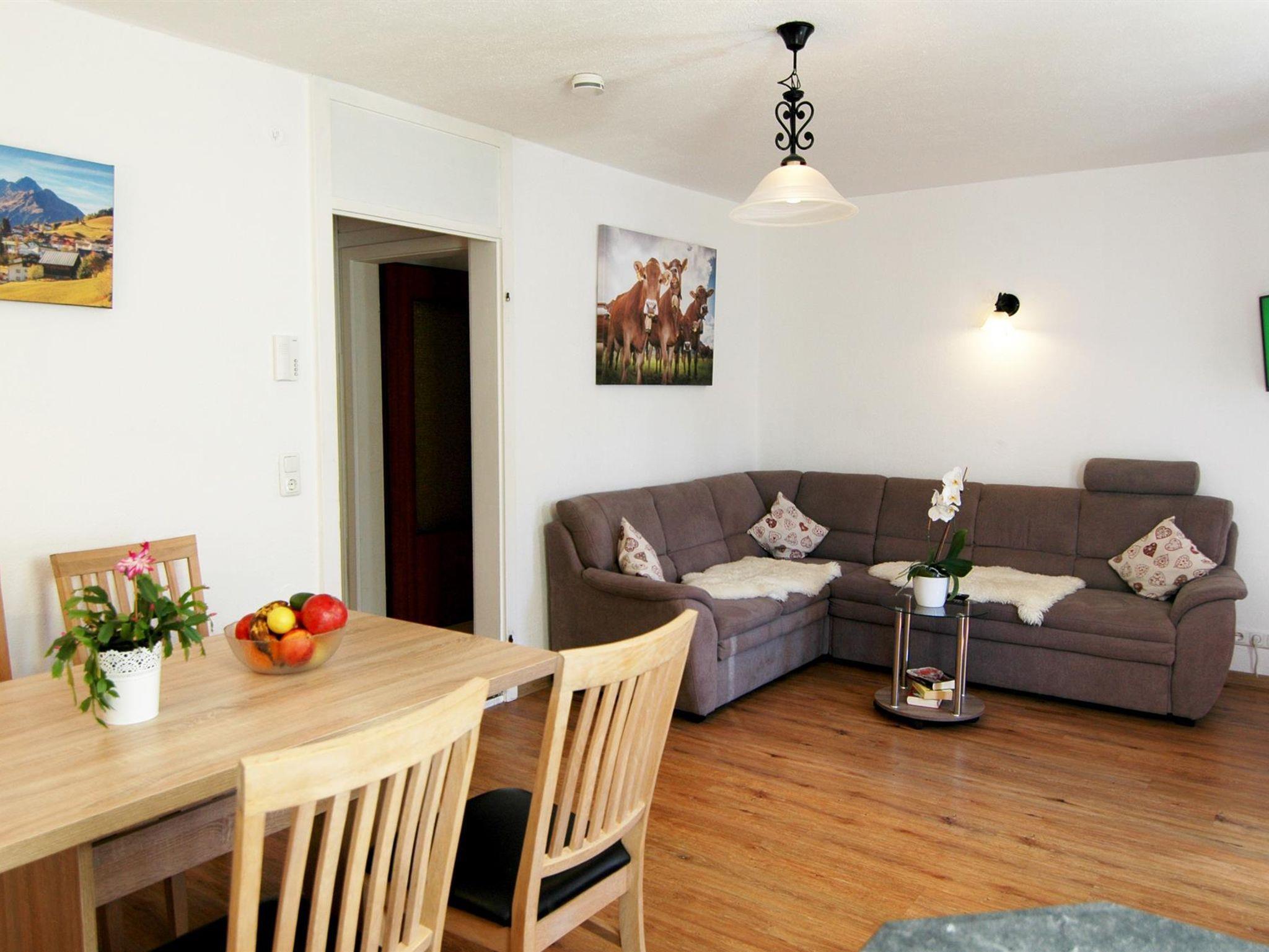Zwei gemütliche Schlafräume, ein geräumiges Wohnzimmer mit TV, seperate und gut ausgestattete Küche, 2 Duschen mit WC sowie ein Balkon zur Südseite mit herrlich traumhafter Gebirgsaussicht warten auf Sie.