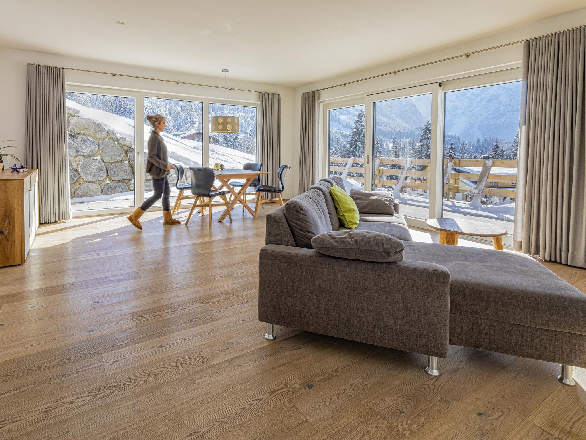 Walser Lodge, Ferienwohnung "Hammerspitze", 80 m2, EG, Terrasse