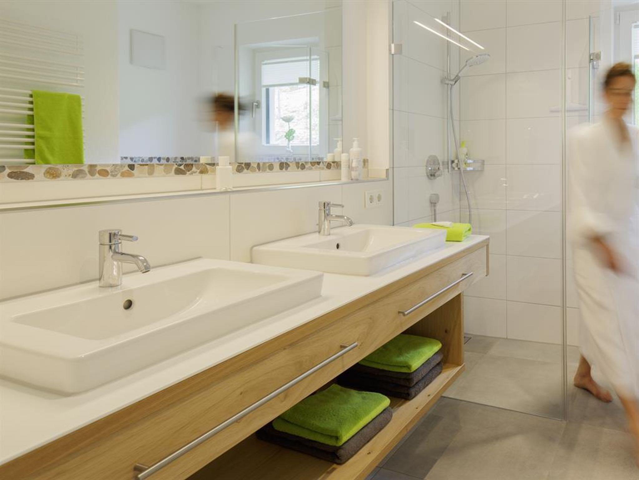 Die Ferienwohnung Bärenkopf liegt im OG unserer Walser Lodge. Der Blick durch die bodentiefe Fensterfront und den großen Balkon fällt auf das atemberaubende Bergpanorama des Kleinwalsertals. Die moderne Küche ist in den Wohnbereich integriert. Die gemütlichen, fußrandlosen Doppelbetten mit Deckbetten bieten Überlänge (220 cm). Das Bad ist mit Dusche, WC und 2 Waschbecken ausgestattet, zusätzlich gibt es ein weiteres WC. Erholen Sie sich im Saunabereich mit Panorama-Ruheraum!