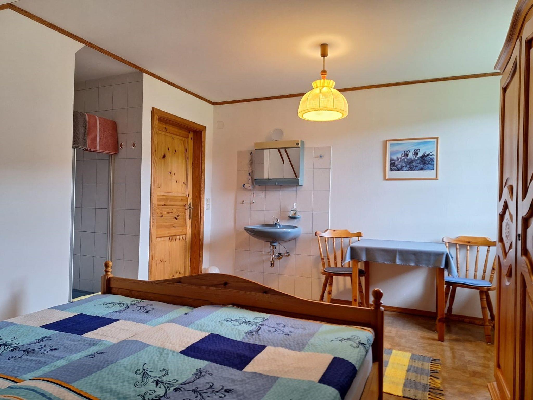 Das helle und geräumige Zimmer verfügt über ein gemütliches Doppelbett und lädt zu erholsamen Nächten nach einem erlebnisreichen Tag in der Natur ein. Zur Ausstattung des Zimmers gehören auch ein Kleiderschrank, 2 Nachtkästchen und eine Sitzgelegenheit, damit Sie sich wie zu Hause fühlen können.