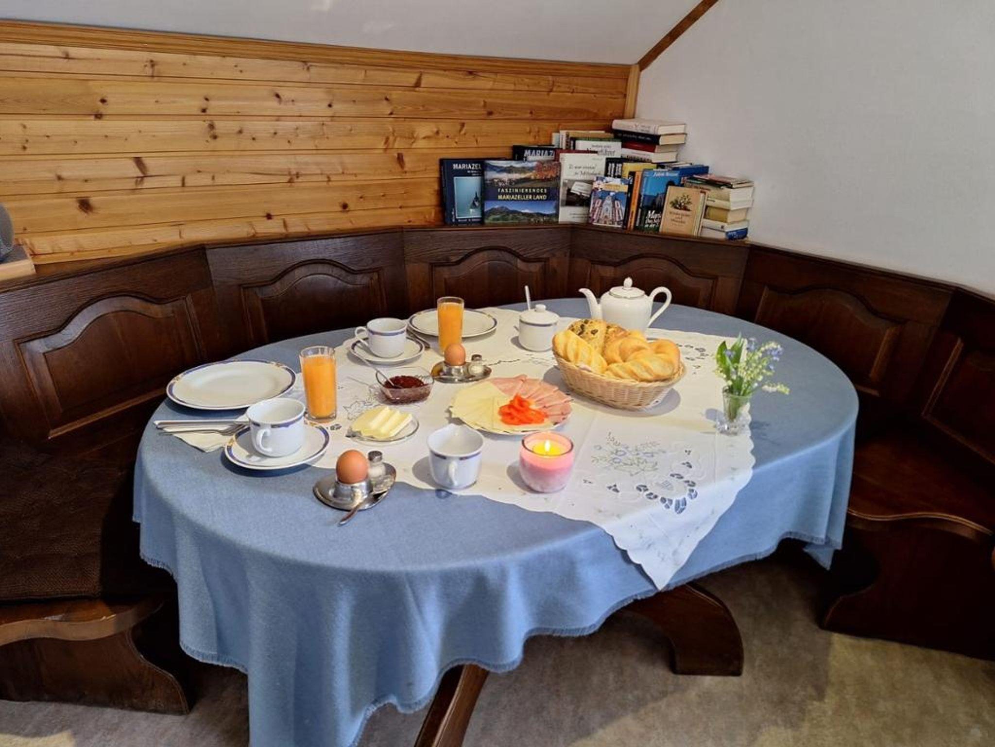 Genießen Sie am Morgen ein köstliches Frühstück, das im gemütlichen Frühstücksraum serviert wird, wo Sie auch unterhaltsame Bücher und Spiele vorfinden.