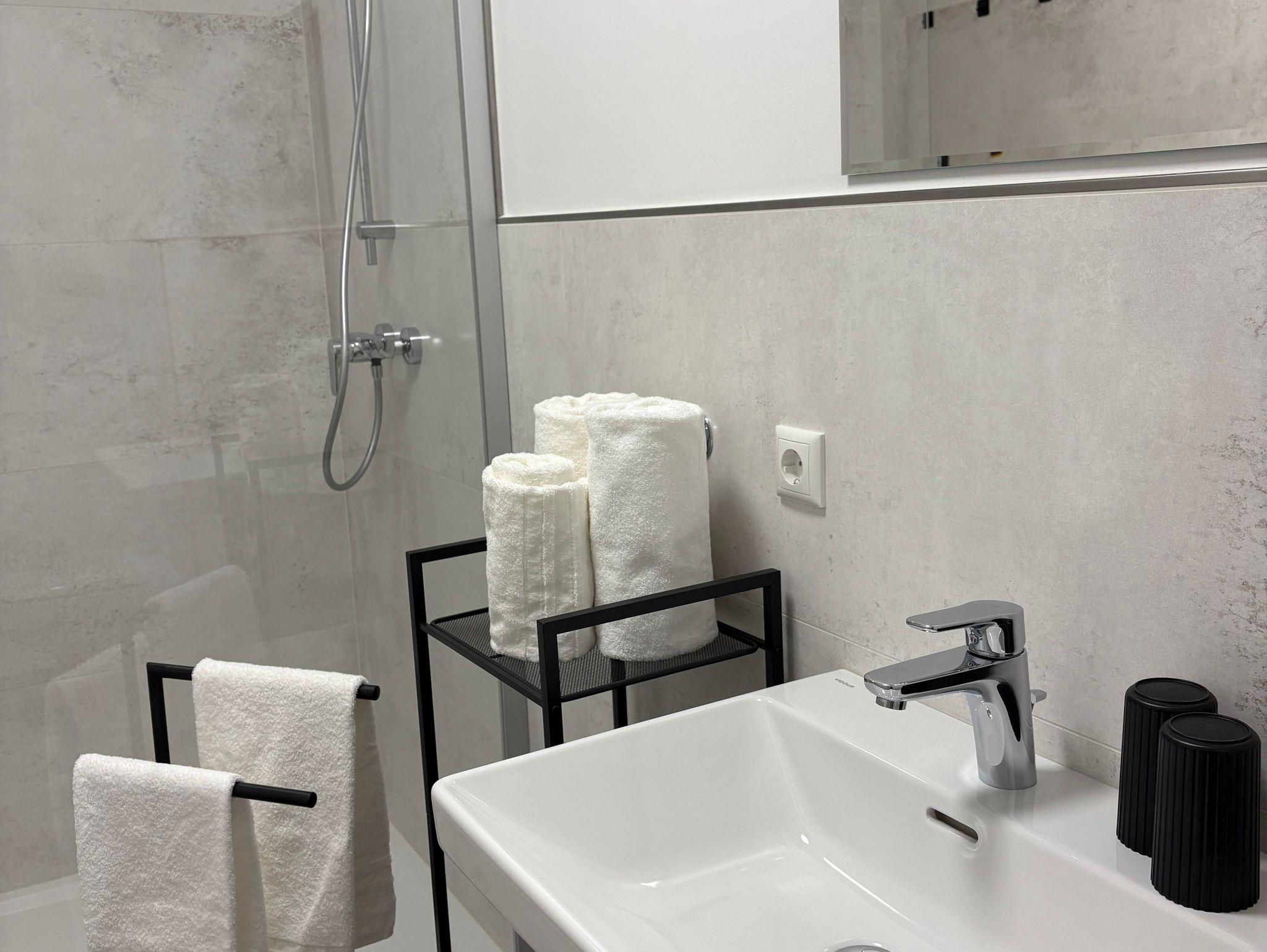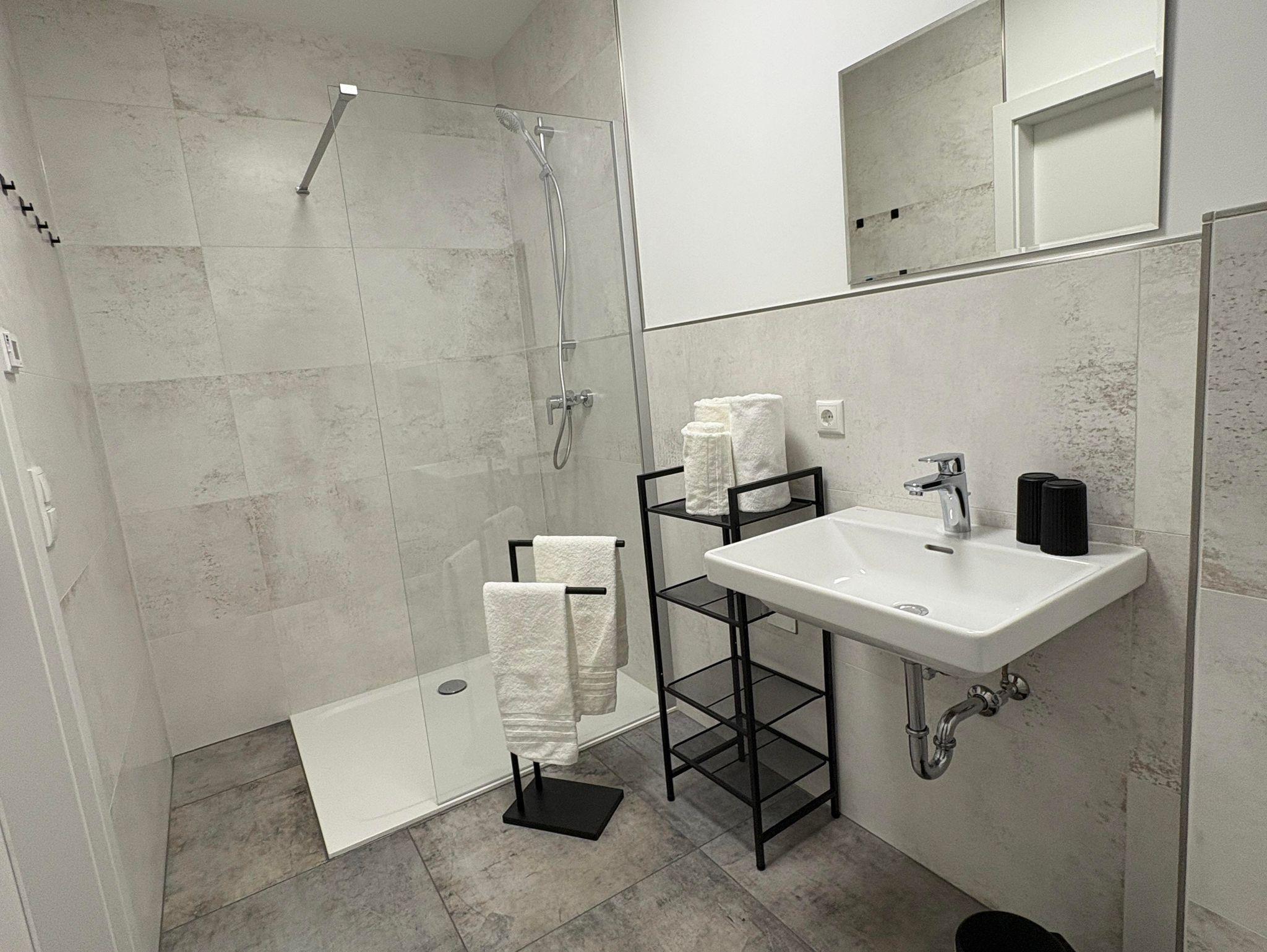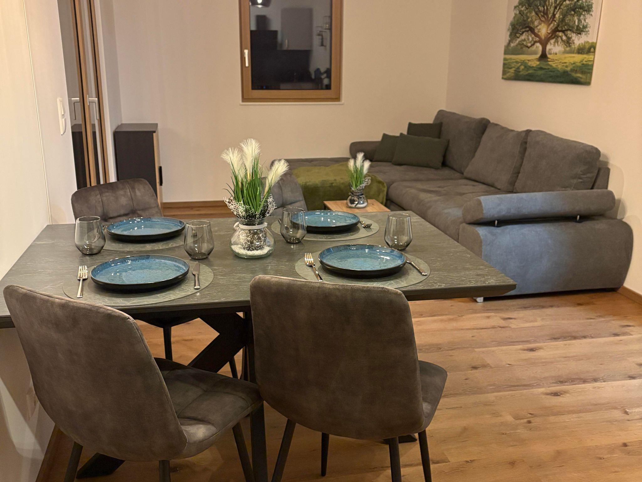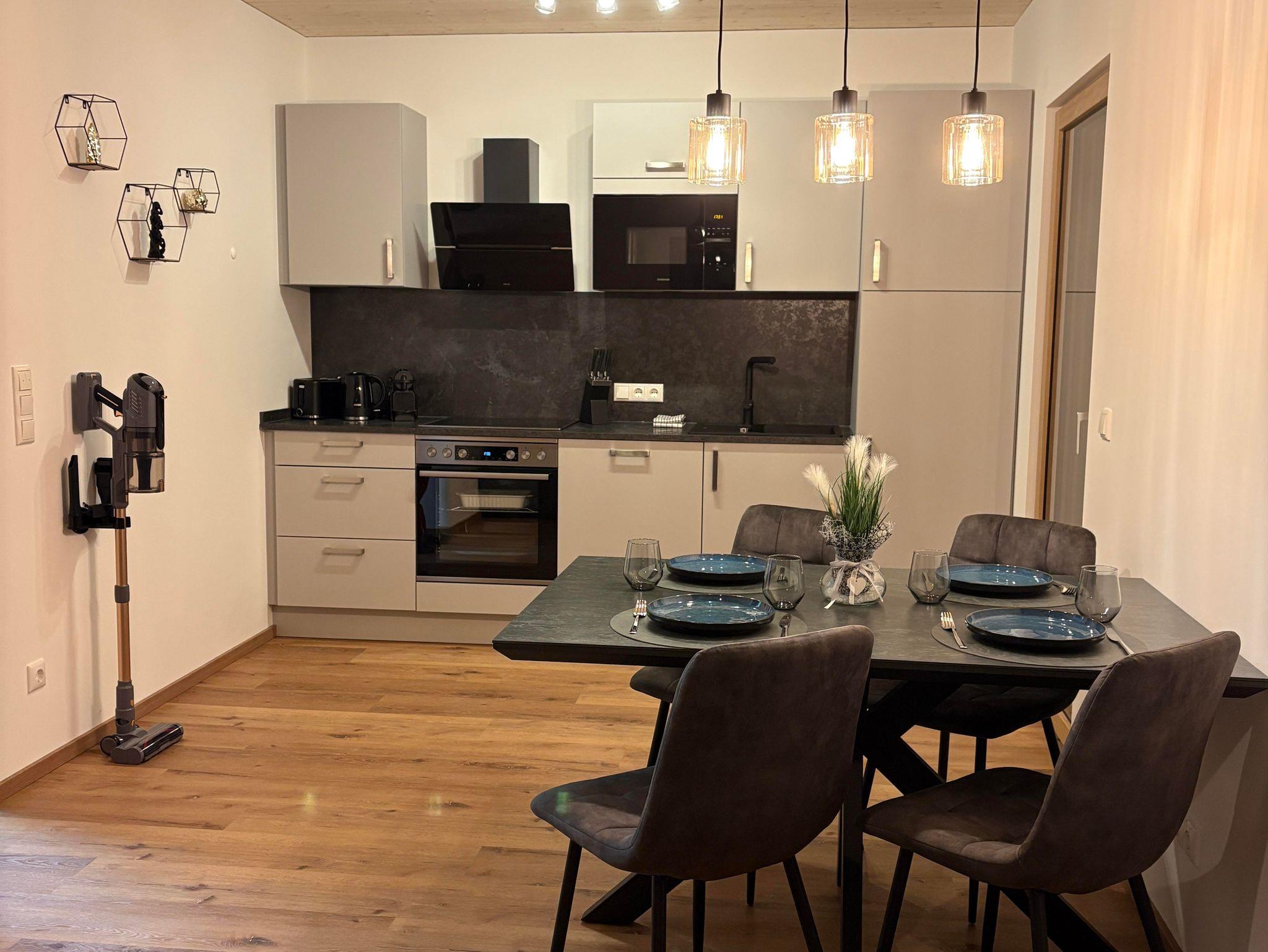 Sie erwartet ein neu errichtetes und ruhig gelegenes Appartement mit 1 Schlafzimmer, 1 Wohnküche mit hochwertigem Doppelschlafsofa, 1 Badezimmer mit Dusche und WC und Garderobe. Die voll ausgestattete Küche lässt keine Wünsche offen. Von der Nespresso-Maschine über den Herd, Backofen, Mikrowelle, Toaster, Wasserkocher bis hin zum Geschirrspüler finden Sie alles, was Sie zur Selbstversorgung benötigen. Bettwäsche und Handtücher sind Inklusive.