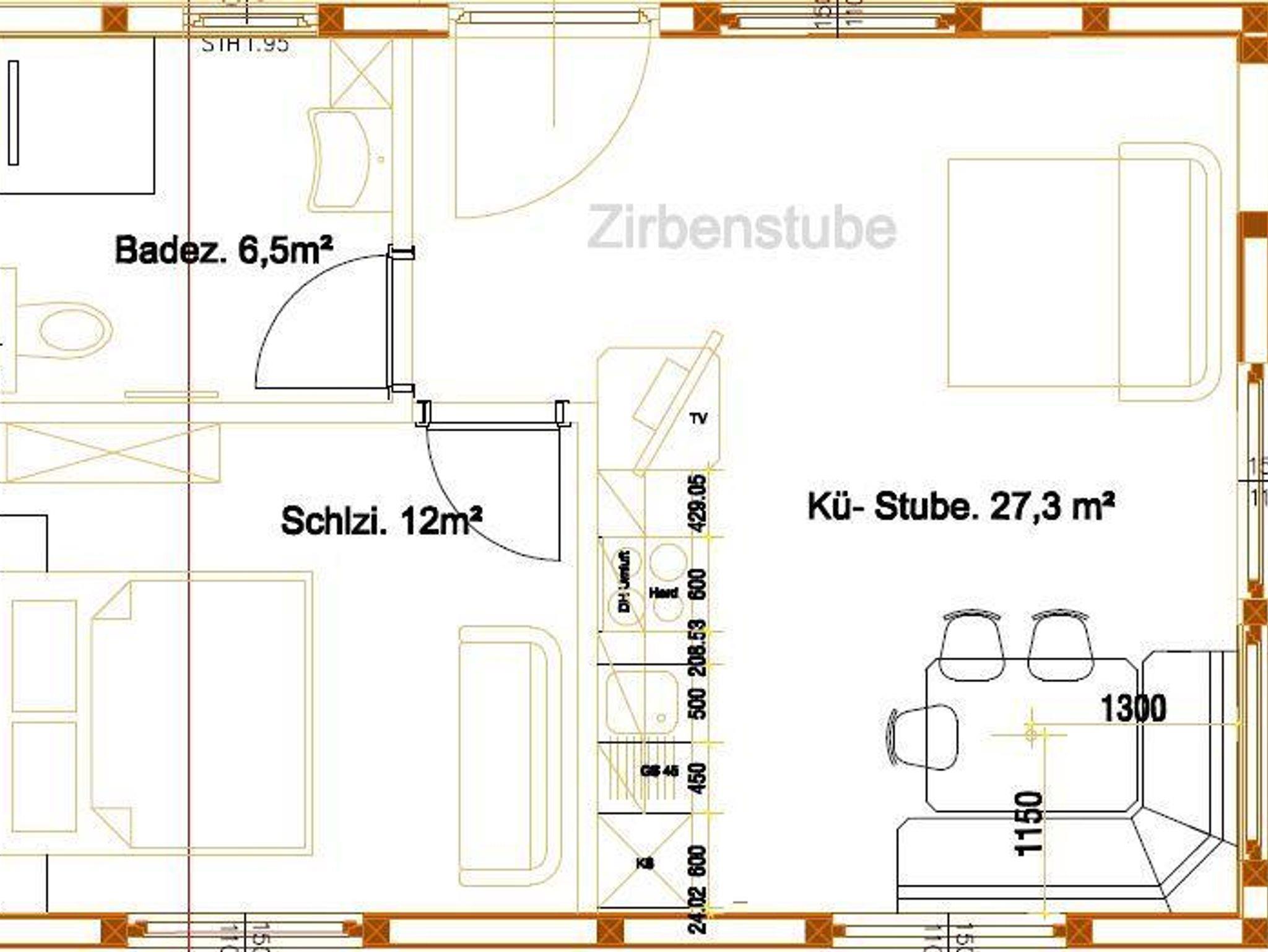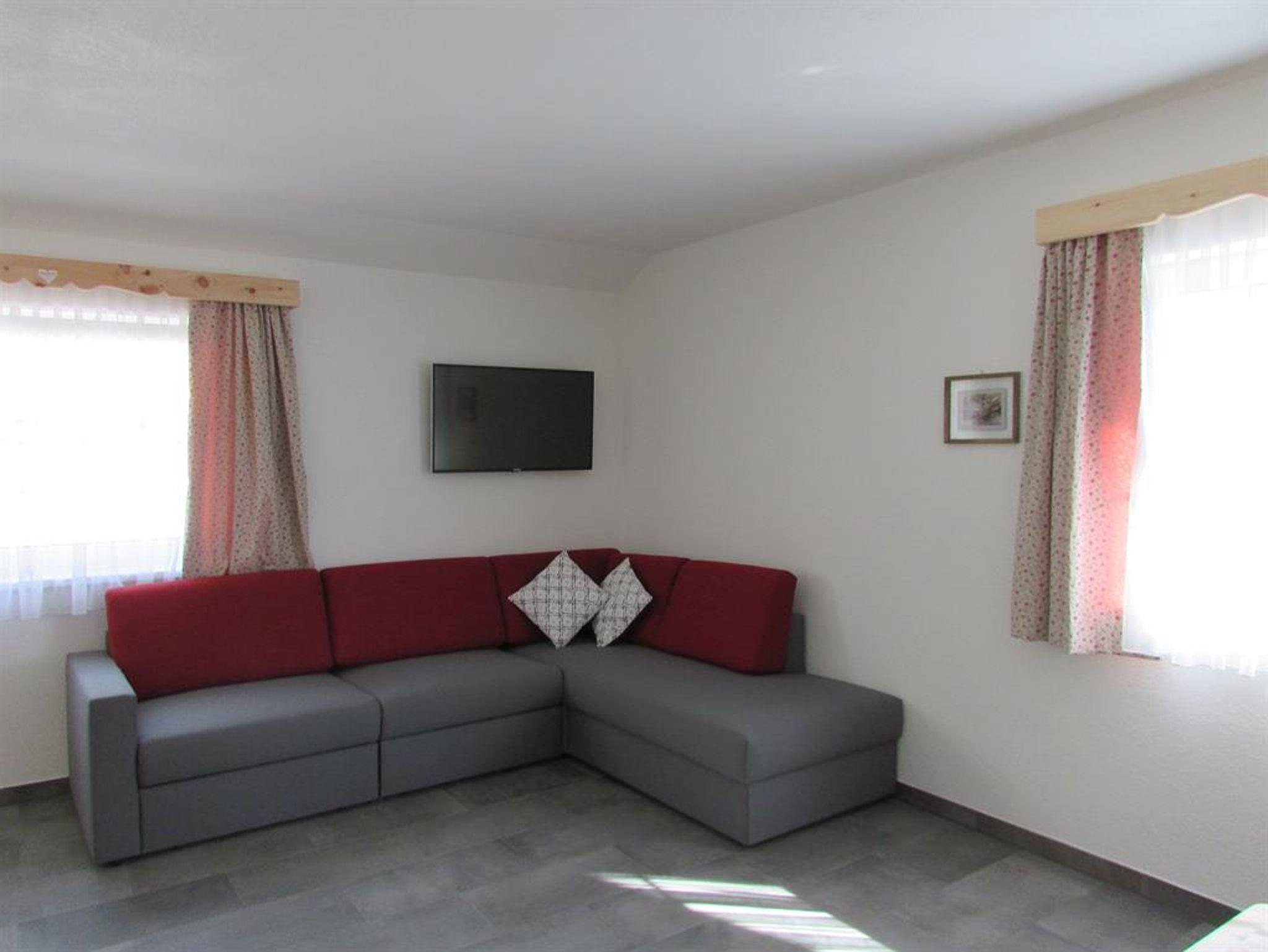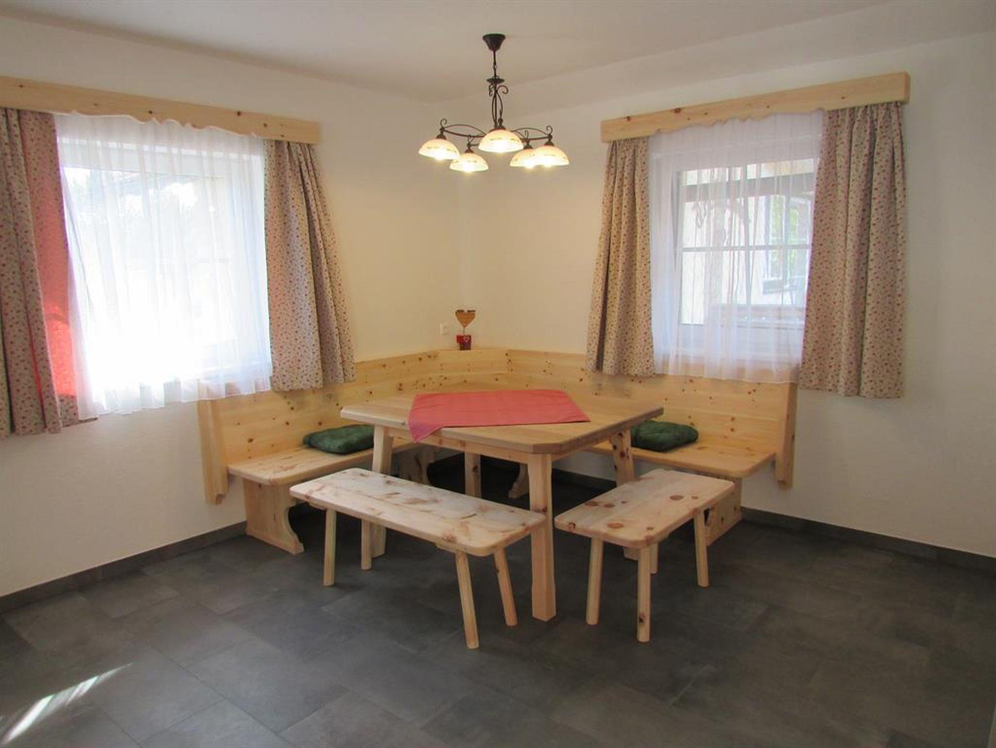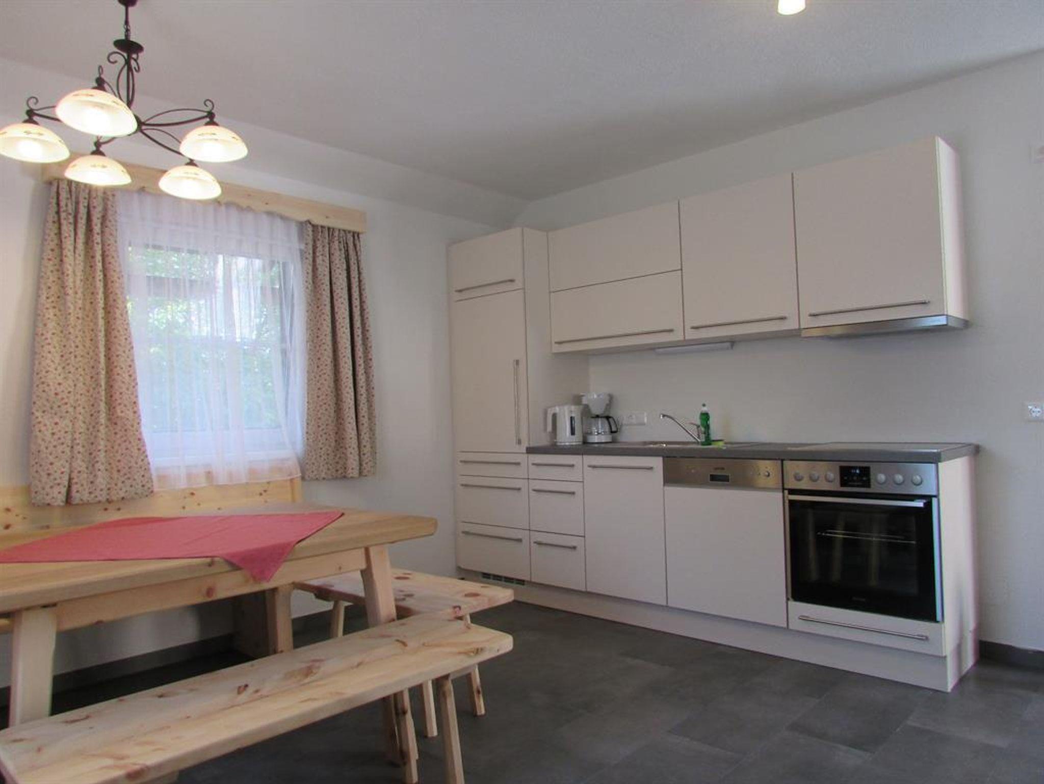 In dieser Ferienwohnung ist ein Schlafzimmer ein Bad mit WC und eine Wohnküche mit ausziehbarem Sofa. Die Ferienwohnung ist mit Zirbenholz eingerichtet. Sie ist sehr hell mit drei Fenstern im Wohnbereich.