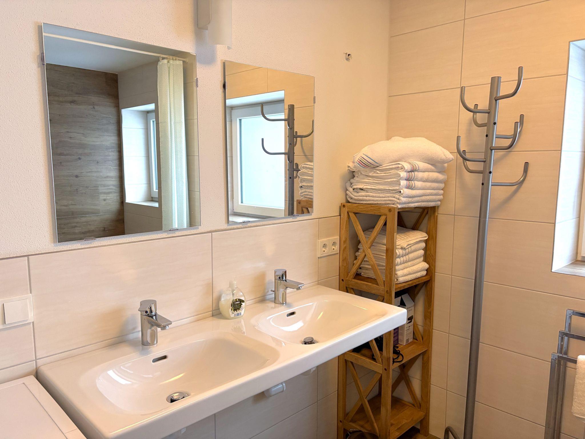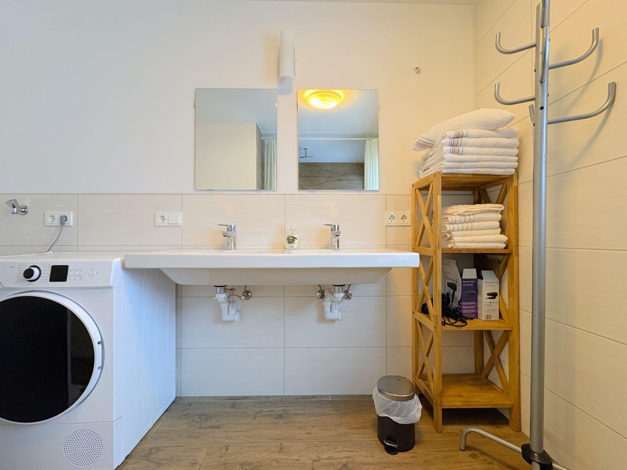 "Benjamin", 5-room apartment 100 m2, on the upper ground floor. Spacious, comfortable and modern furnishings: entrance hall. 4 double bedrooms. Kitchen-/living room (oven, dishwasher, 4 ceramic glass hob hotplates, kettle, microwave, electric coffee machine) with bar, dining nook and satellite TV (flat screen). Exit to the terrace. Shower, sep. WC, double hand-basin. Underfloor heating. Terrace roofed, garden 80 m2. Terrace furniture, barbecue, deck chairs. Facilities: washing machine, children's high chair, baby cot. Internet (WiFi, free). Please note: non-smokers only. 50605-002112-2020