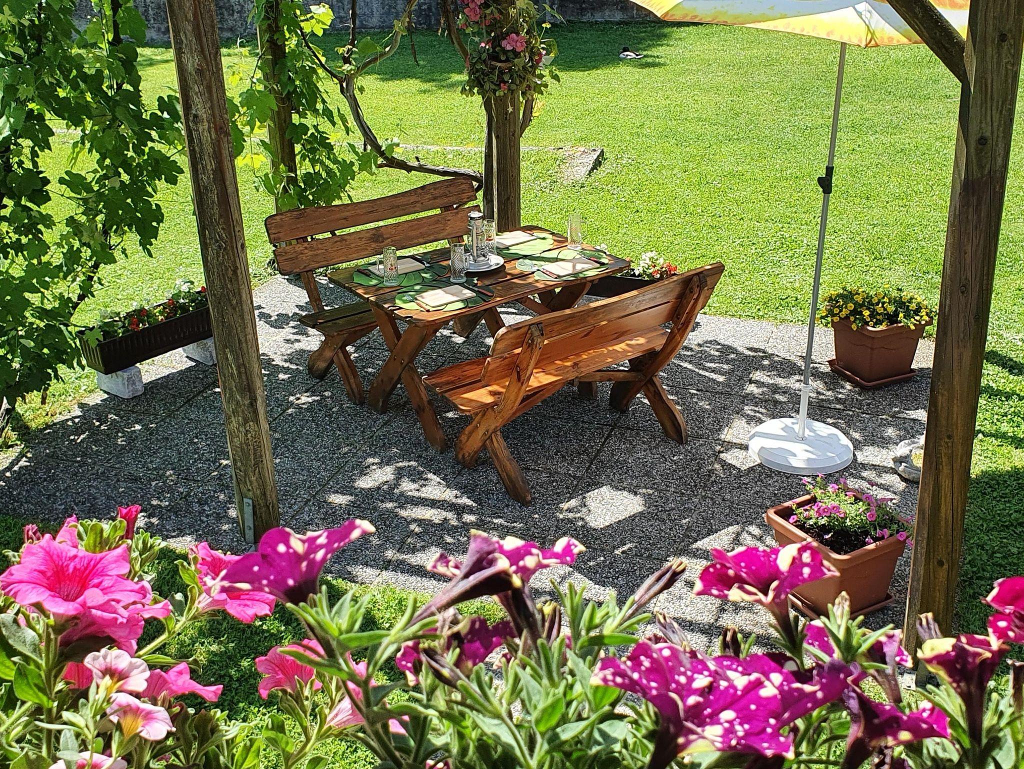 Der große Garten mit Grünfläche bietet Platz für gemütliche Stunden unter der Weinlaube bei einer Brettljausen. Verbringen Sie erholsame Stunden auf unserer überdachten Mühlbachterasse mit Griller und Kühlmöglichkeiten für Getränke etc. Auf Wunsch ist auch Waffelbacken für Kinder möglich. In der Einliegerwohnung im Untergeschoß befindet sich eine große Historische und Populärgeschichtliche Hausbibliothek.