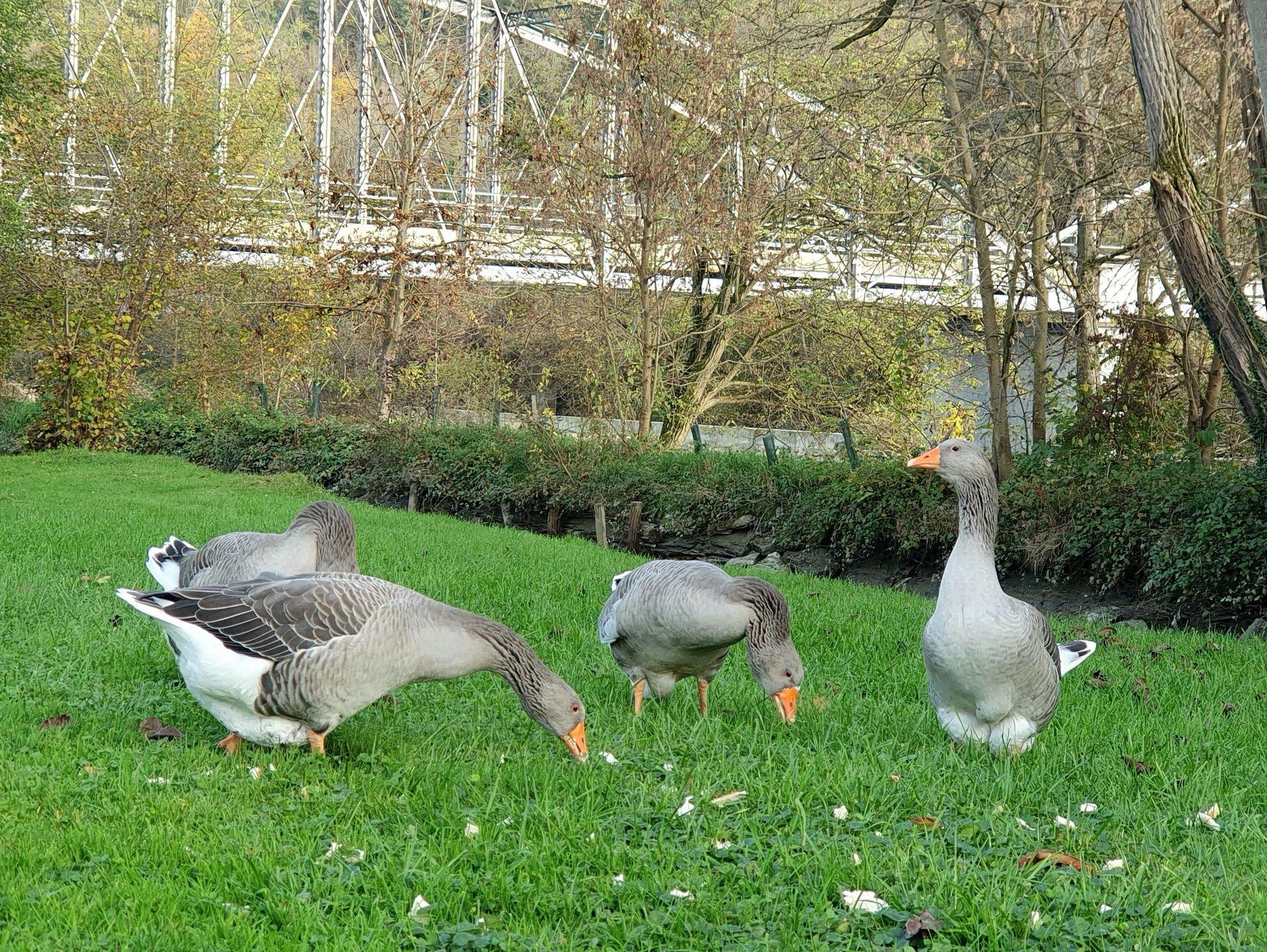 Der Murradweg R2 geht direkt an unserem 3000m2 großen Anwesen vorbei. Das gesamte Grundstück ist eingezäunt und somit für den freien Auslauf von Haustieren bestens geeignet. Enten, Graugänse und Hühner sind bei uns gern gesehene Dauergäste.