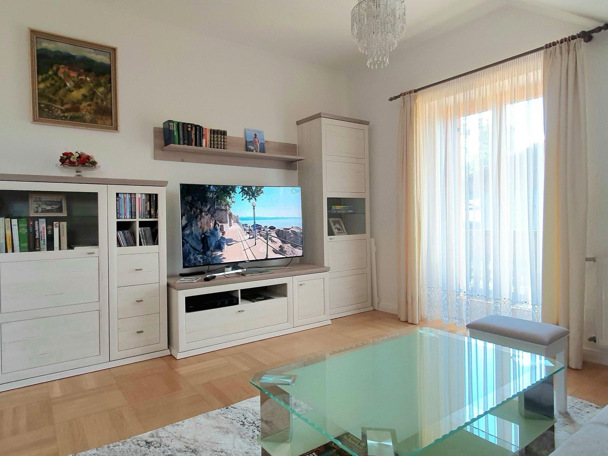 Das Haus bietet im Erdgeschoß eine neu und modern eingerichtete Ferienwohnung (75m2) für bis zu 5 Personen Platz: Wohnzimmer, Kinderzimmer, Schlafzimmer und gemütliche Wohnküche mit Tischherd, großes Bad mit Dusche und Waschmaschine. WC ist separat.