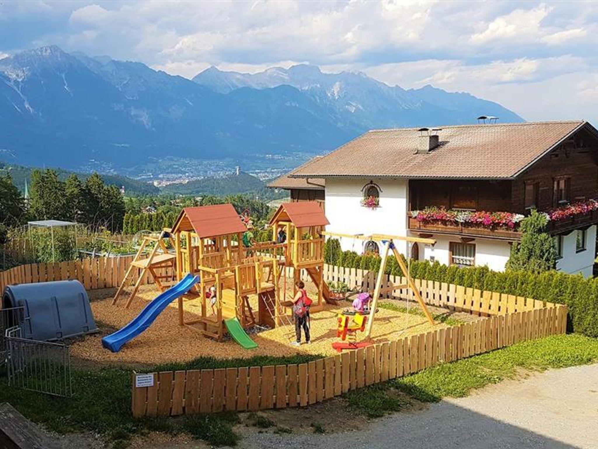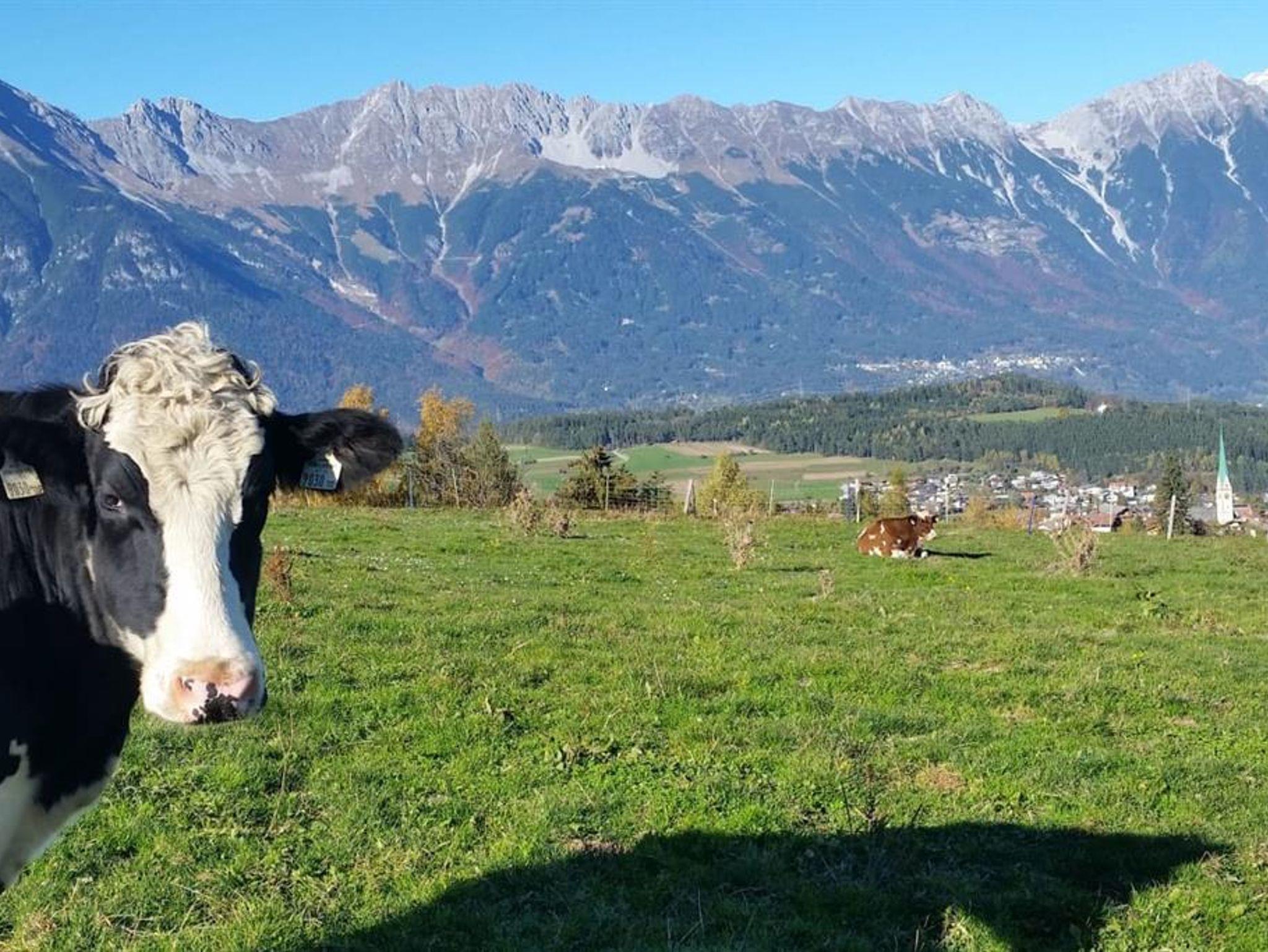 Die geräumige Ferienwohnung, ca. 75 m², befindet sich im 2. Stock des Bauernhauses. Wunderschöner Blick vom Balkon in die Bergwelt zum Beispiel auf die Serles, sowie auf die Europabrücke, werden Sie verzaubern. Die Ferienwohnung besitzt 2 Wohnschlafräume, eine Wohnküche, Bad, WC, Zentralheizung, SAT-TV, Radio und Balkon. Eine komplett ausgestattete Küche sowie Bettwäsche und Handtücher stehen ebenfalls zur Verfügung.