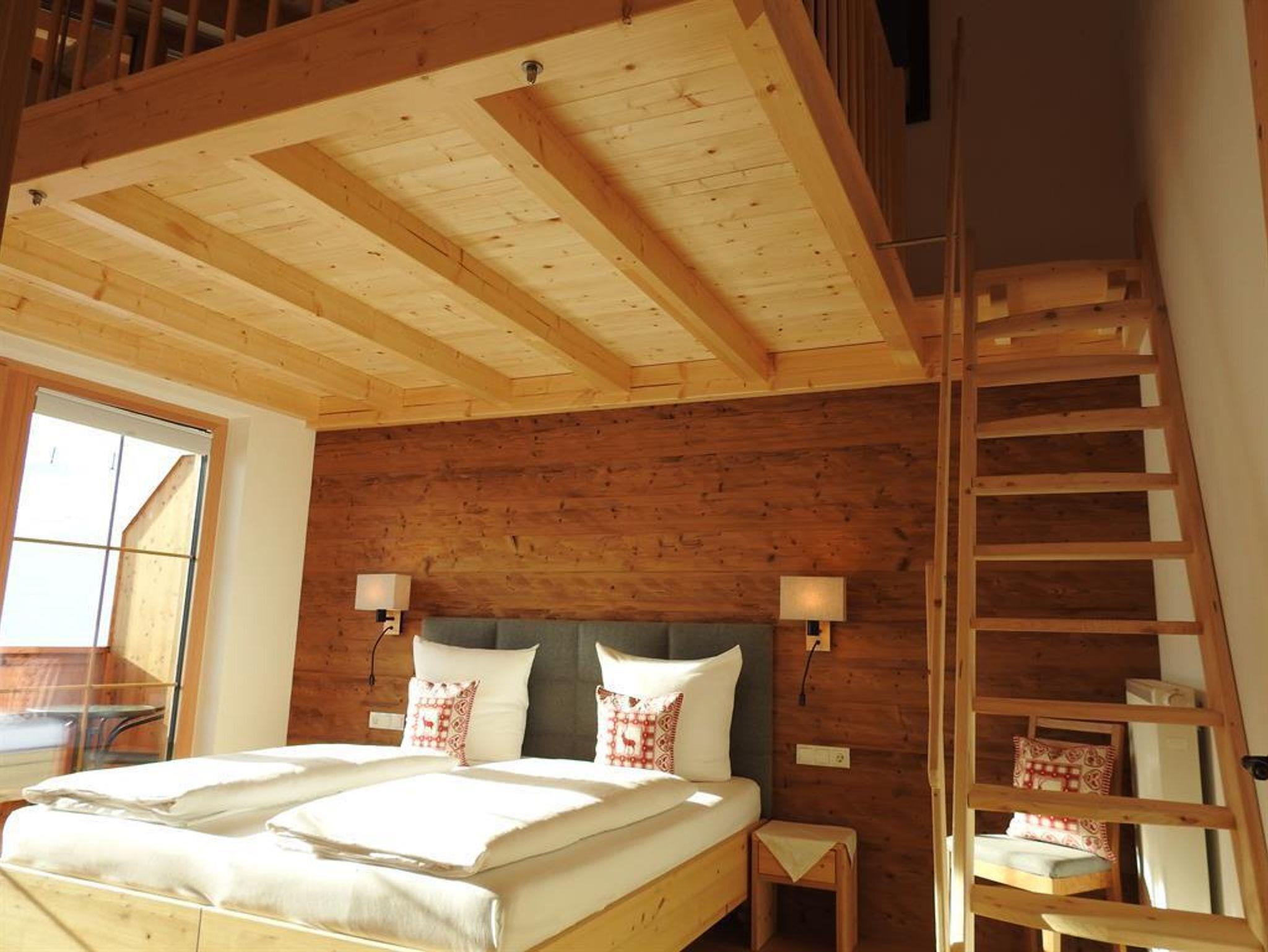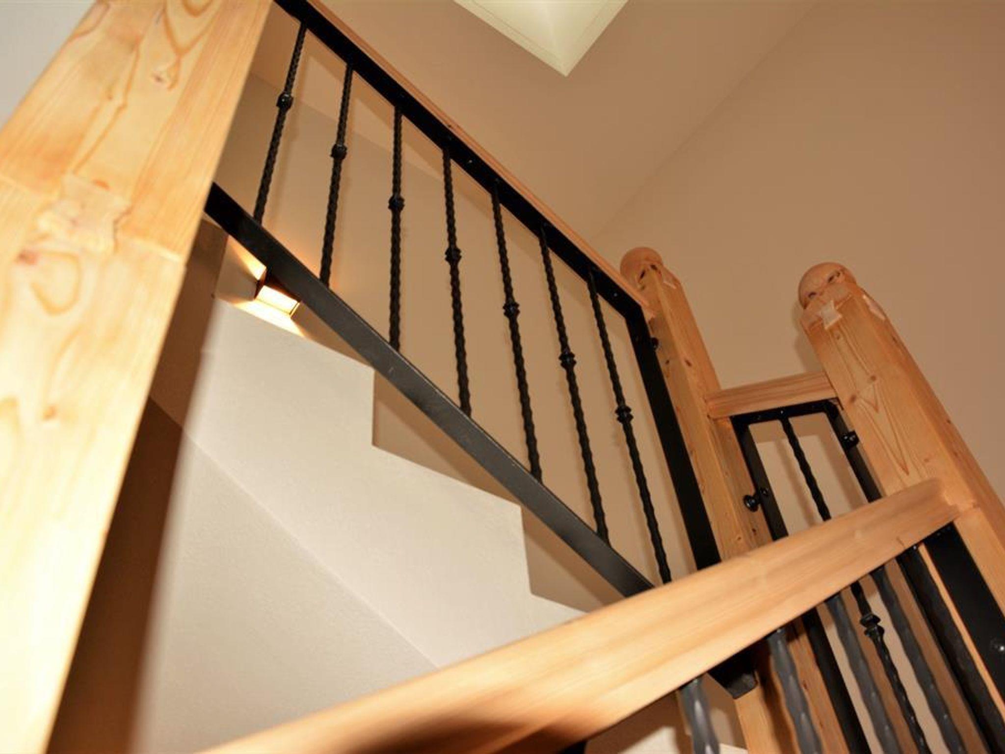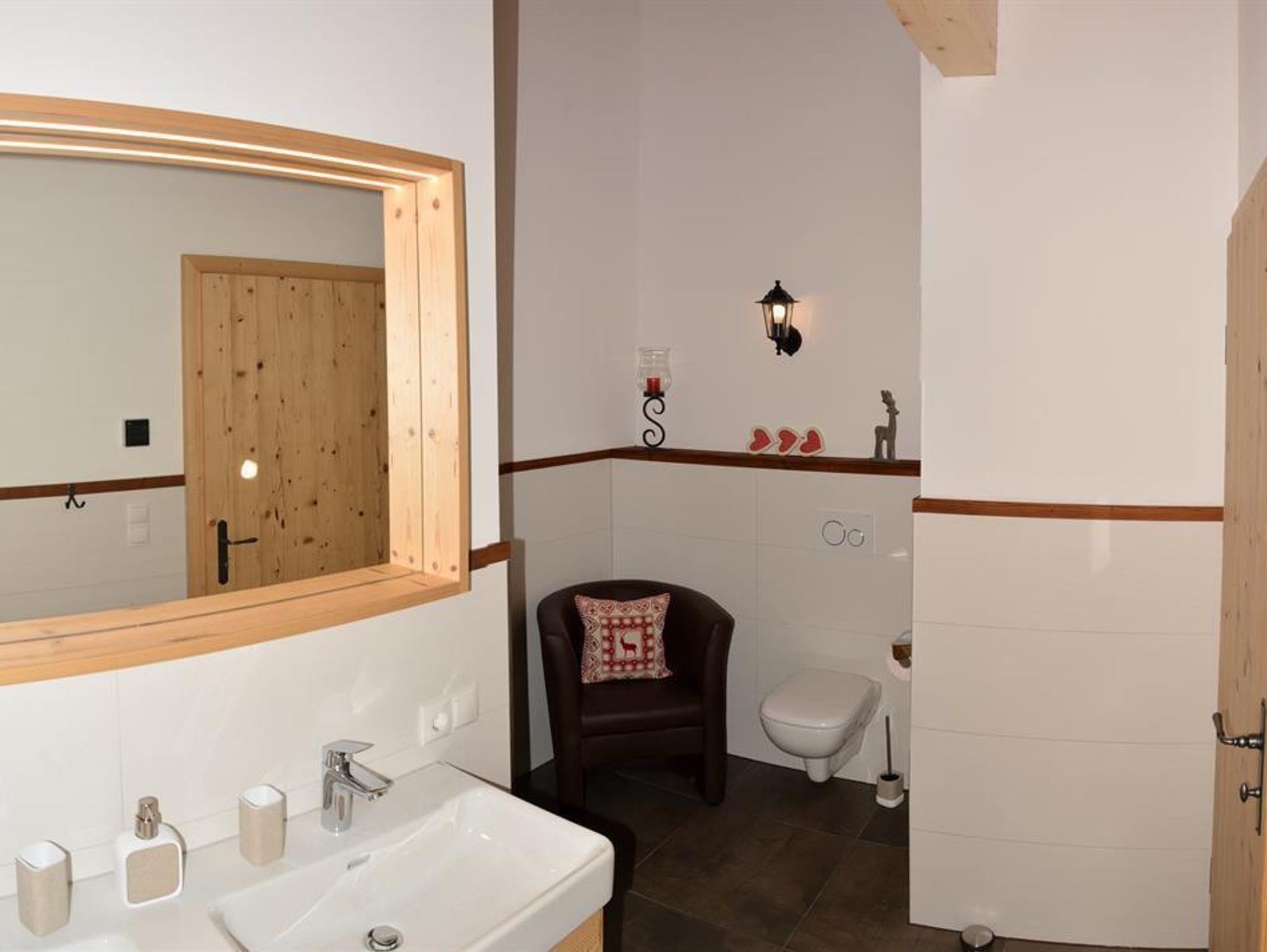 Diese barrierefreie Ferienwohnung in Vollholz mit offenem Dachstuhl, Galerie und Balkon besteht aus einem Wohnzimmer mit Essplatz, Küchenbereich, 2 Schlafzimmern (eines davon mit Galerie), Bad mit Dusche, Doppelwaschbecken, WC und zusätzlichem separaten WC.
