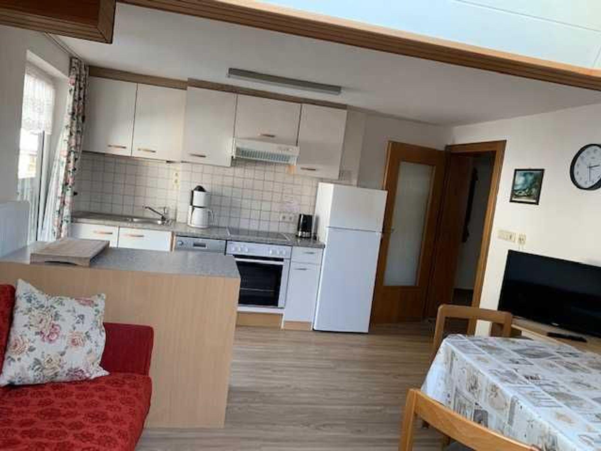 Rustikal ausgestattet mit einer Wohnküche ,gemütlicher Essecke mit Eckbank, Kabel/TV ,ein Schlafzimmer mit Doppelbett ,ein kleiner Tisch mit Stuhl ,DU/WC, Balkon