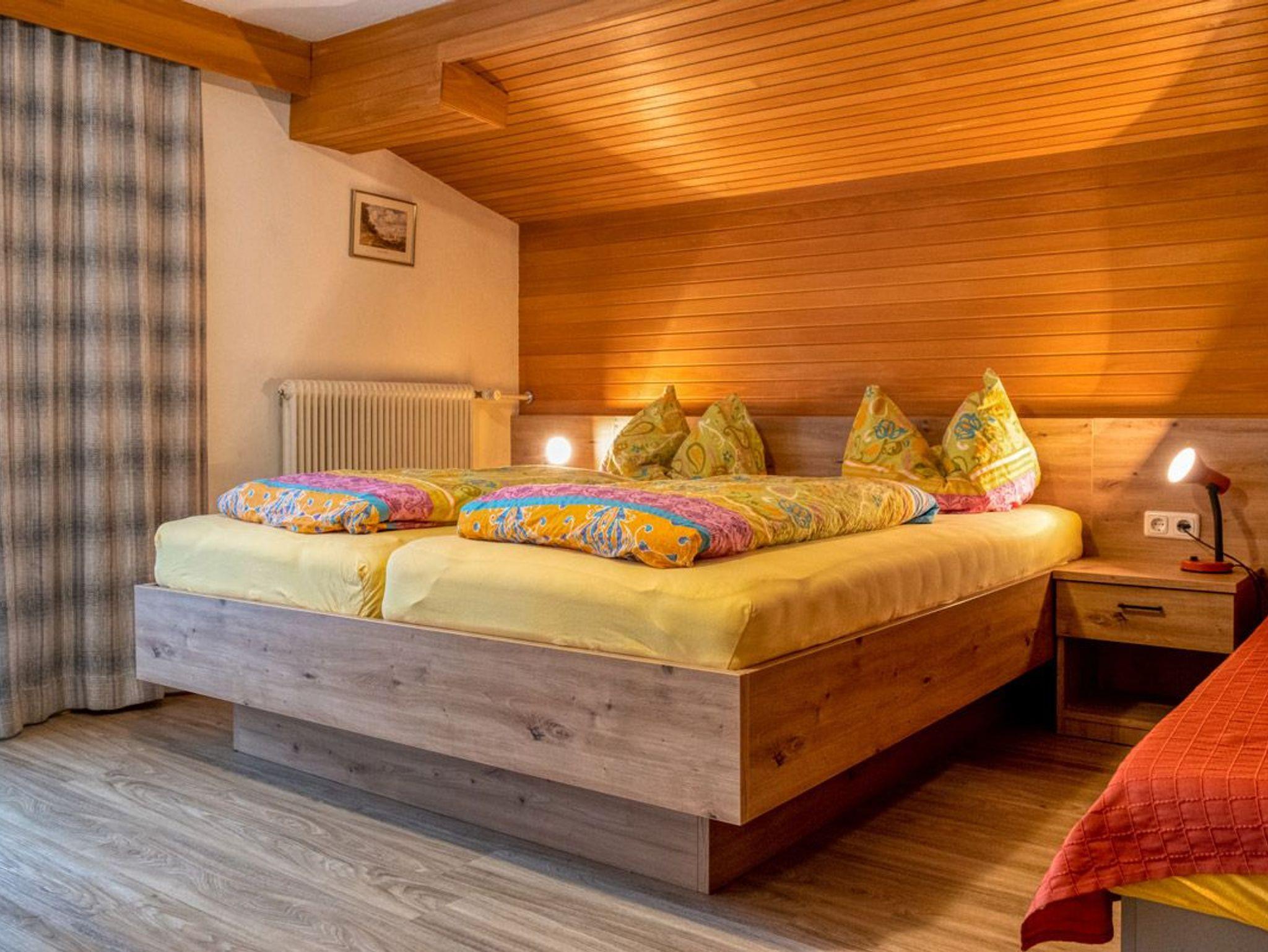 Ein Schlafzimmer mit Doppelbett ,Polsterliege und Waschgelegenheit, ein Schlafzimmer mit eigener DU/WC,französischem Bett (1,40 m), ein Schlafzimmer mit französischem Bett/1,40 m) und Einzelbett. Ein Wohnraum mit Couch, Essecke und Küche im Wohnbereich, Herd mit Cerankochfeld, DU/WC, Diele, Balkon Nord-Ostseitig, mit Blick zur Rot Flüh ,Gimpel und Köllenspitze.In den Betten sind hochwertige Orthomed Vita-Cel 7-Zonen Matratzen , sowie Allergiker-Faser Kopfkissen.FLAT/TV,32digital Kabel LED