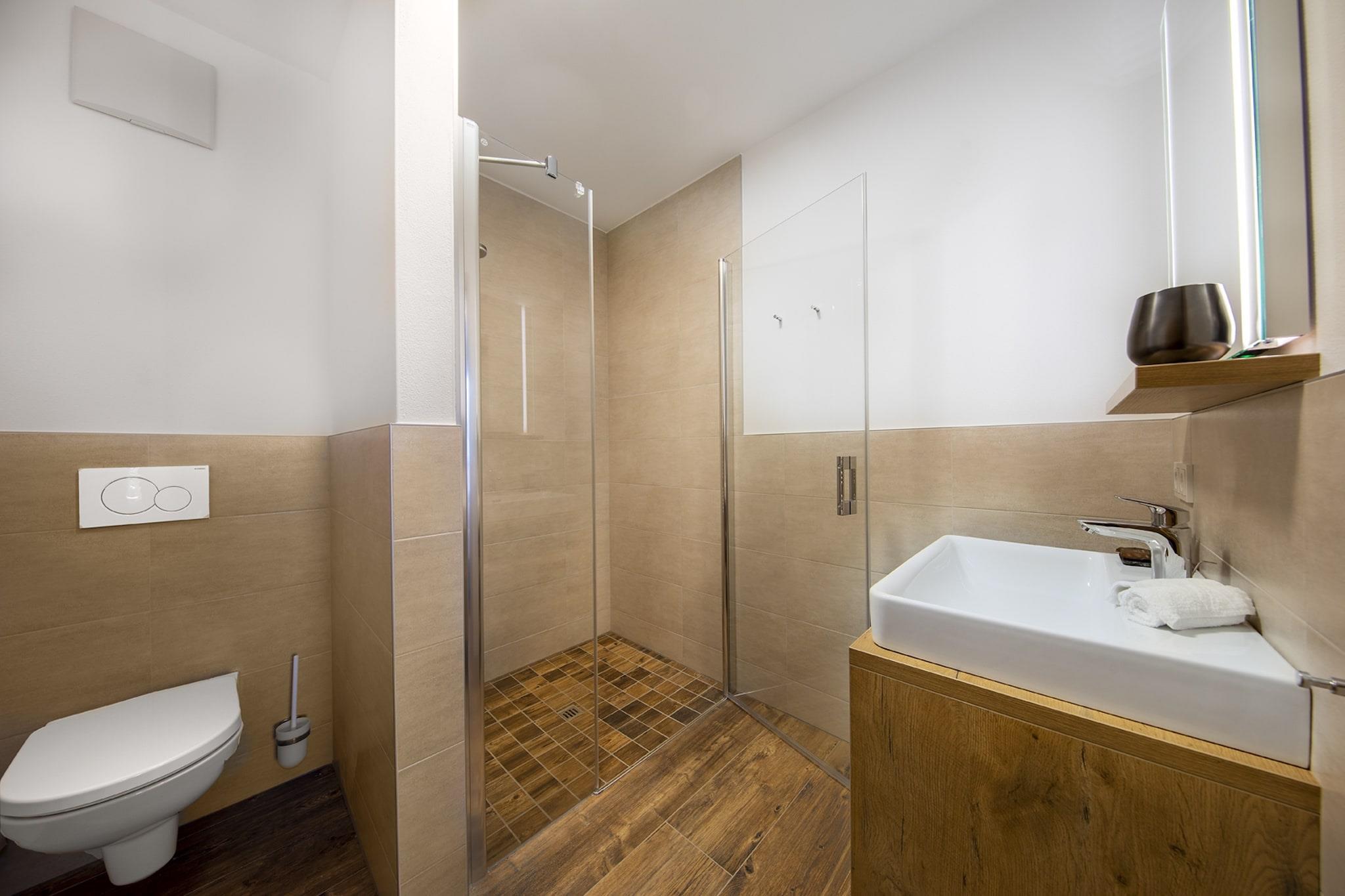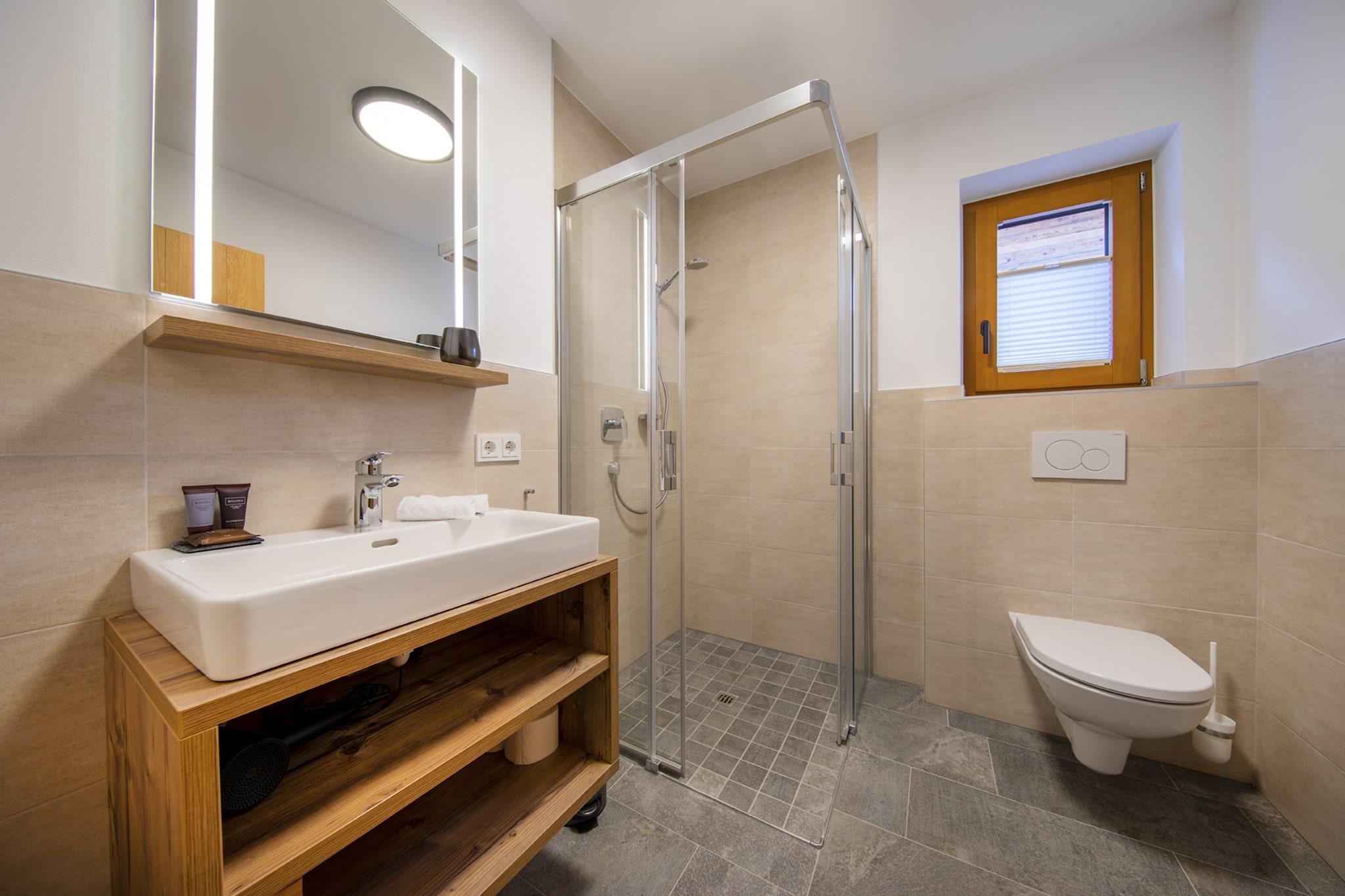 I utkanten av den pittoreske landsbyen Neukirchen am Grossvenediger finner du nasjonalparkhyttene, som inkluderer hytten Schlieferspitze. Morsomt faktum: disse hyttene er oppkalt etter en av toppene i Hohe Tauern nasjonalpark. Her kan du nyte en komfortabel ferie i den luksuriøst møblerte hytten, med plass til åtte gjester. Fra alle etasjer i hytten, hver med balkong eller terrasse, er det uhindret utsikt sørover fjellene i Hohe Tauern nasjonalpark, inkludert Großvenediger. I den store stuen/spisestuen har du tilgang til en romslig, overbygd terrasse med spisebord og solsenger. Dette rommet fungerer som møtested og midtpunkt i hytten for koselige kvelder med familie og venner. Innredet i en alpin-moderne stil, er det en komfortabel sittegruppe med peis, et romslig spisebord og en moderne kjøkkenøy. Det er en separat TV-stue. Fire soverom har dobbeltseng, hvorav to har eget bad. Som prikken over i-en er det et annet bad med finsk badstue. Hytta ligger på toppen av nasjonalparkhyttene i en rolig blindvei. Det lover deg en avslappende ferie! Om vinteren kan du oppbevare ski og skistøvler i skiboden når du kjører inn til Chalet Schlieferspitze. Dalnedkjøringen i skiområdet Wildkogel Arena går forbi nasjonalparkhyttene, slik at du raskt kommer deg i bakken! Nederst i løypa kan du nå gondolen med skibussen som tar deg til toppen av fjellet eller til et av de nærliggende skiområdene: Zillertal Arena eller Kitzbüheler Alpen. På slutten av en dag i snøen kan du slappe av i sittegruppen ved peisen for å prate om dagens eventyr. Om sommeren kan du nyte naturen til langt på natt på den overbygde terrassen med en infrarød terrassevarmer eller utforske Hohe Tauern nasjonalpark på de merkede tur- og sykkelstiene. For barna er det også mye moro å finne på i området! Ta gondolen til toppen av fjellet, hvor du finner en stor lekeplass, eller bo nærmere hytta og slapp av rundt den naturlige innsjøen i resepsjonsområdet. «Nationalpark Sommercard» er inkludert i oppholdet og kan brukes til gratis sommeraktiviteter.