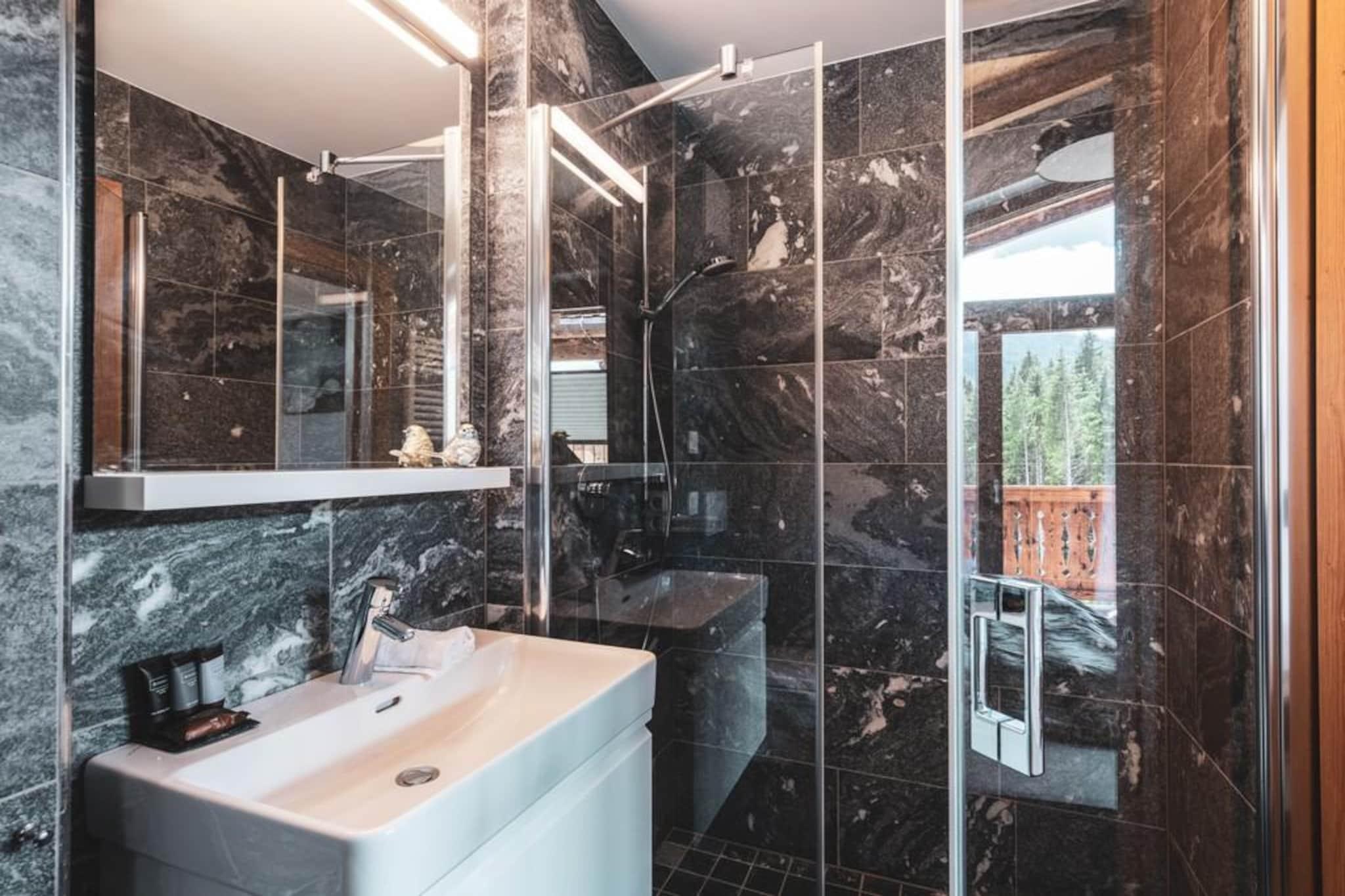 På et helt spesielt sted, sørvest for den velkjente Neukirchen am Großvenediger og midt i frisk fjelluft, grønne enger og vakkert snøhvite åser, ble denne svært luksuriøse hytten bygget på den solfylte skråningen til Roßberg. Den praktfulle hytten er designet med karakter. Bruk av mye tre, spesifikke detaljer og perfekt utførelse kombinert med bruk av materialer av høy kvalitet sikrer et spesielt komfortabelt og luksuriøst hus. Du føler deg umiddelbart hjemme. Hytten din, som du selvfølgelig skal bo i alene, har tre etasjer. En av etasjene er stueetasjen, som gir en enestående utsikt med sine enorme vinduer. I tillegg til stue og spisestue med koselig vedovn, er det et moderne åpent kjøkken utstyrt med oppdaterte hvitevarer. Soverommene, som er spredt over etasjene, er svært komfortable og innredet til en høy kvalitet. Du har også din egen private badstue. Du kan parkere bilen (to stykker) på de delvis overbygde parkeringsplassene. Det er andre hytter i umiddelbar nærhet, og skaper en slags landsby. En skiutleie med skiskole ligger sentralt til. Det finnes også en snackbar med en liten meny for en matbit eller en drink. Vil du ha ferske rundstykker hver dag? Ikke noe problem, disse kan bestilles i resepsjonen. Skiheisen med treningsområde er lett tilgjengelig til fots fra hytten og er perfekt for familier med små barn eller nybegynnere. Erfarne skiløpere kan ta den gratis skibussen til heisen til det praktfulle skiområdet Wildkogel Arena. Med beliggenheten rett ved bakken, kan du gå på ski tilbake til hytta i nærheten hvis det er nok snø. Vil du oppleve noe annerledes? Skiområdene Zillertal Arena eller Kitzbühel/Kirchberg ligger bare noen få minutter unna med bil