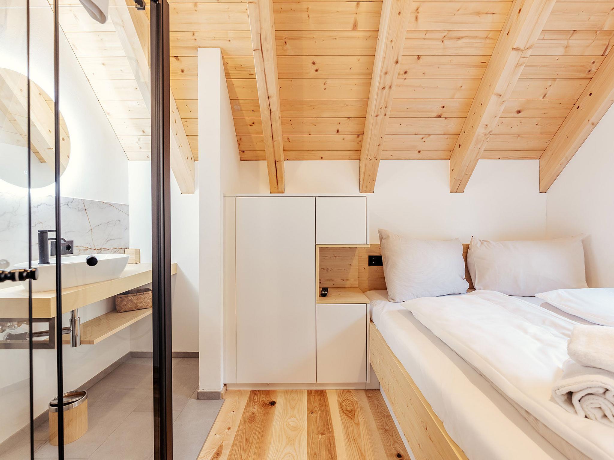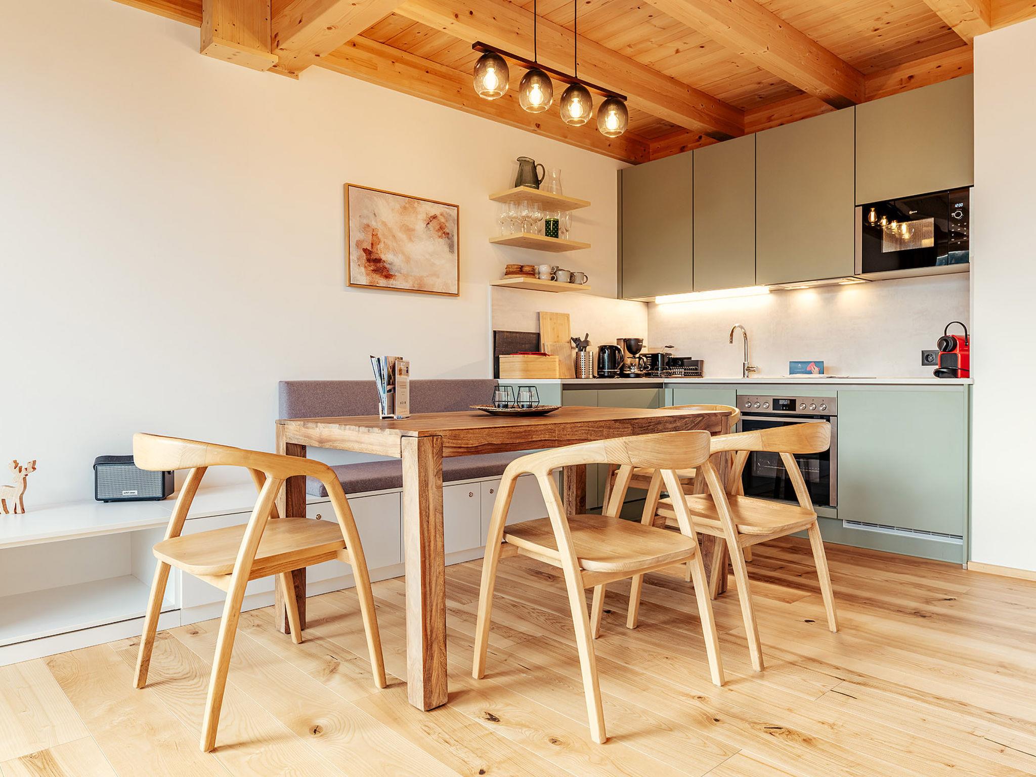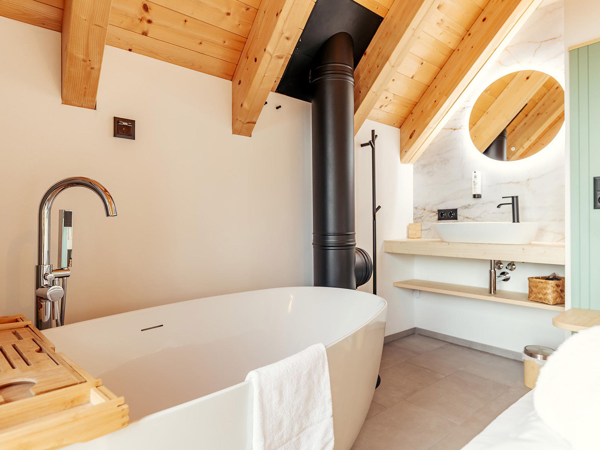 "Chalet Nr. 4 mit 2 Schlafzimmern und Sauna", 3-room house 67 m2 on 2 levels. Object suitable for 6 adults. 1 room with 1 double bed and TV. 1 room with 1 double bed. Living room with 1 sofabed and 1 pull-out bed. Kitchen, open kitchen (dishwasher, toaster, kettle, microwave, freezer, electric coffee machine). Bath/WC, shower/WC, sep. WC. Terrace. Facilities: sauna. Please note: non-smokers only. Maximum 2 pets/ dogs allowed.