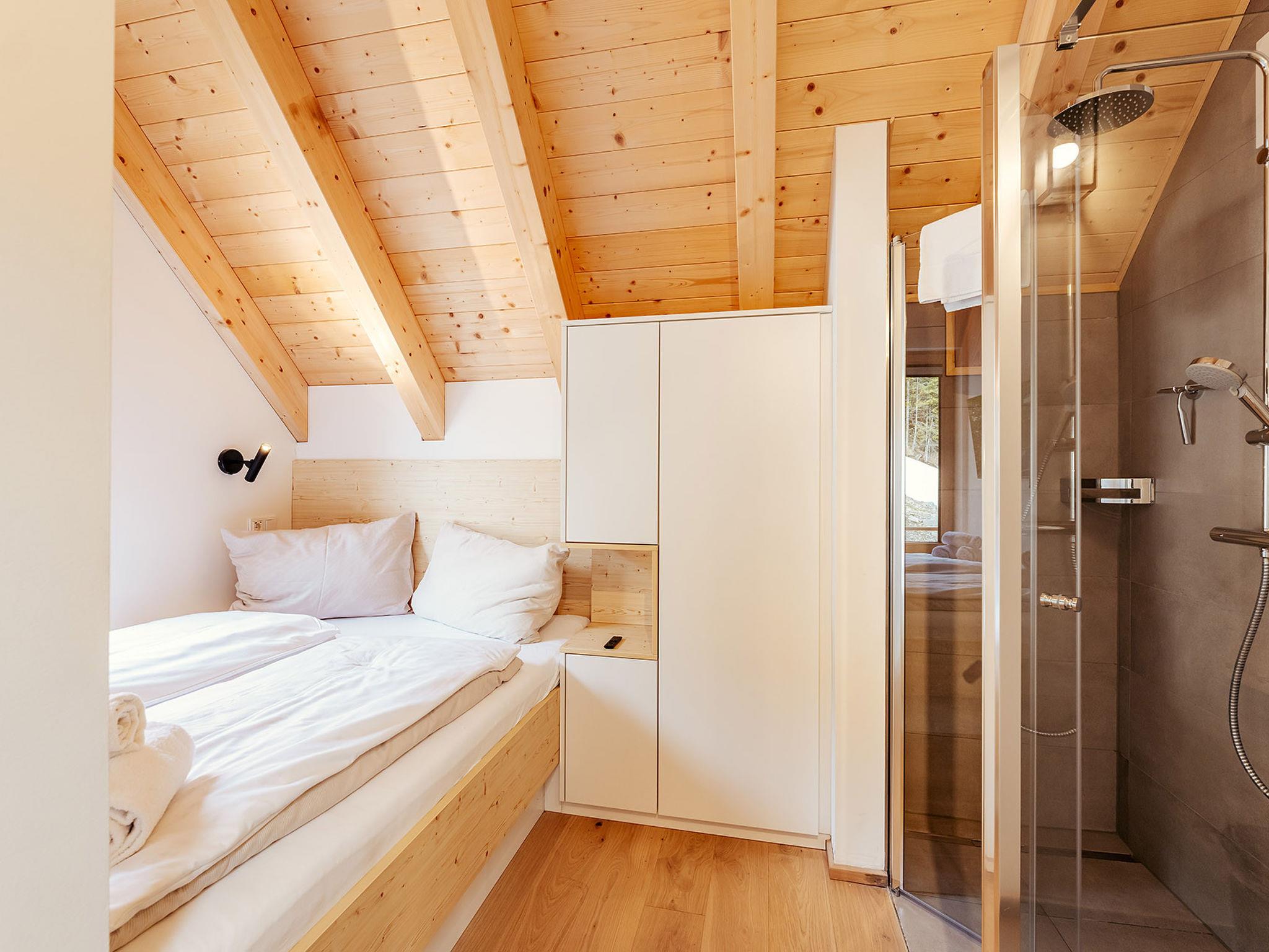 "Chalet Nr. 1 mit 2 Schlafzimmern und Sauna", 3-room house 68 m2. Object suitable for 6 adults. 1 room with 1 double bed and TV. 1 room with 1 double bed. Living room with 1 sofabed and 1 pull-out bed. Kitchen, open kitchen (dishwasher, toaster, kettle, microwave, freezer, electric coffee machine). 2 showers/WC, 2 sep. WC's. Terrace. Facilities: sauna. Please note: non-smokers only. Maximum 2 pets/ dogs allowed.