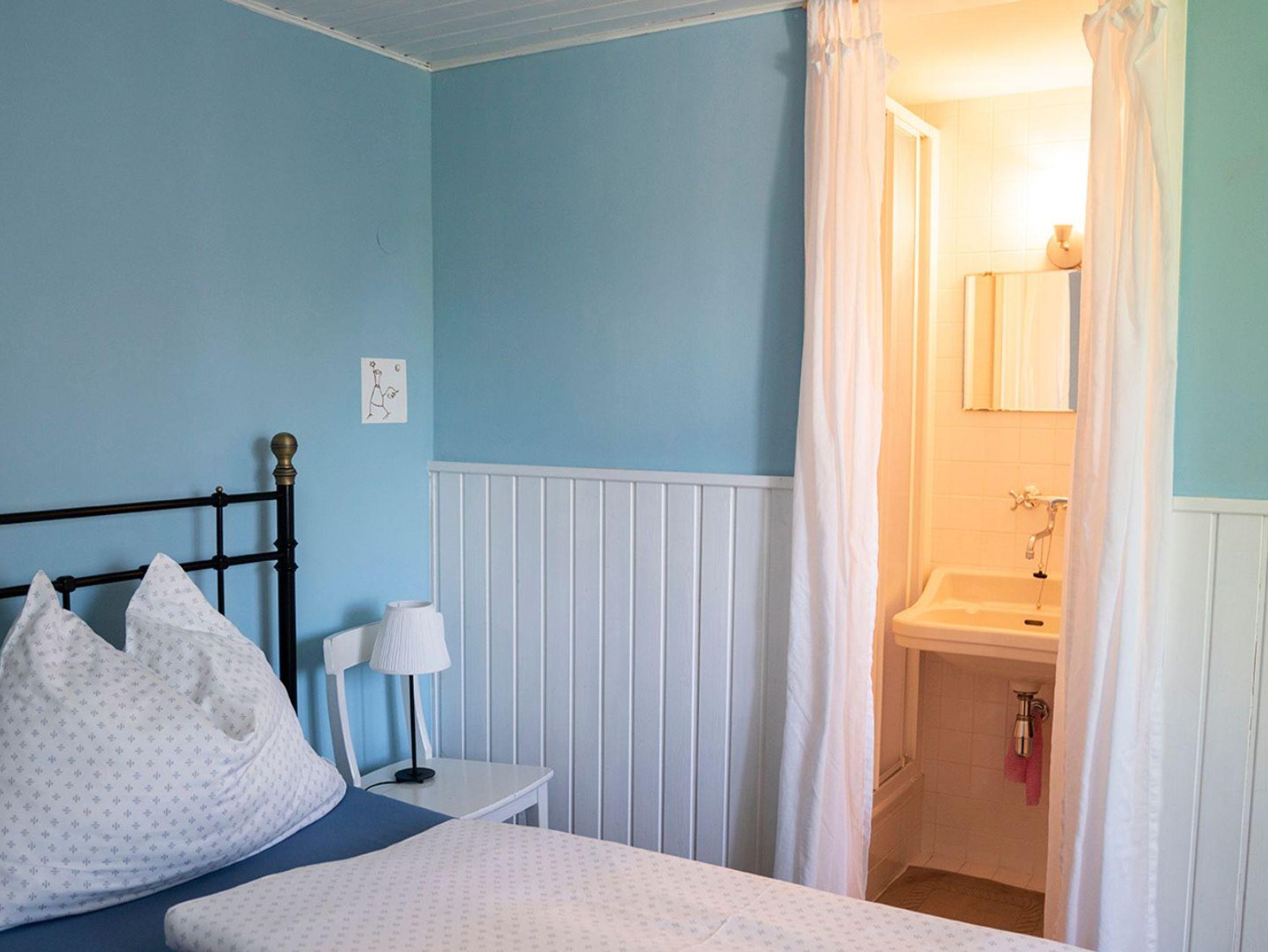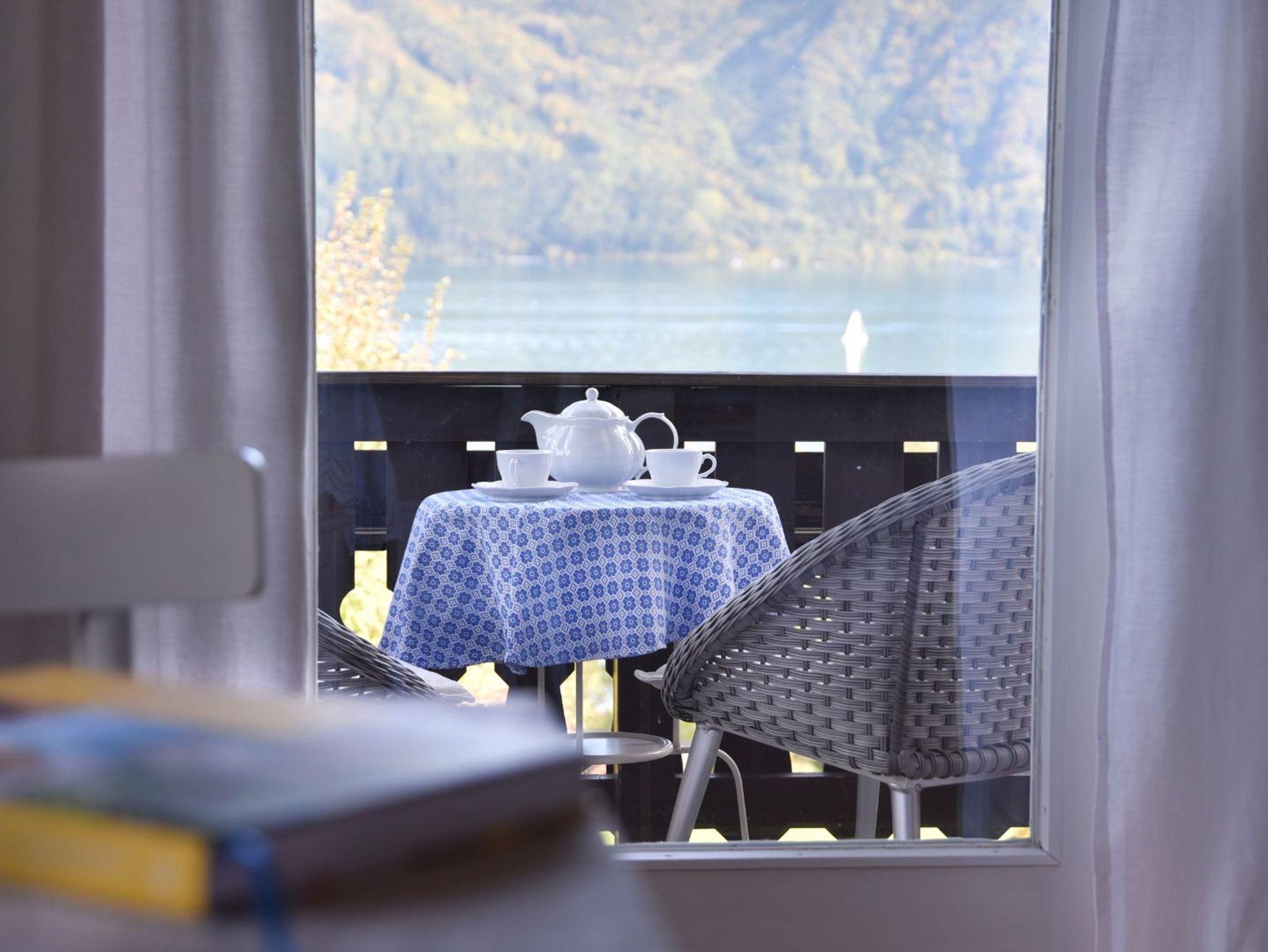Ein Blauer Montag den ganzen Urlaub lang. Mit Blick auf den See. Blau von seiner schönsten Seite. Helle Creme- und Weißtöne verleihen der Einrichtung so viel Leichtigkeit, dass selbst eine manchmal aufziehende Wolke nicht schwer wirken kann.