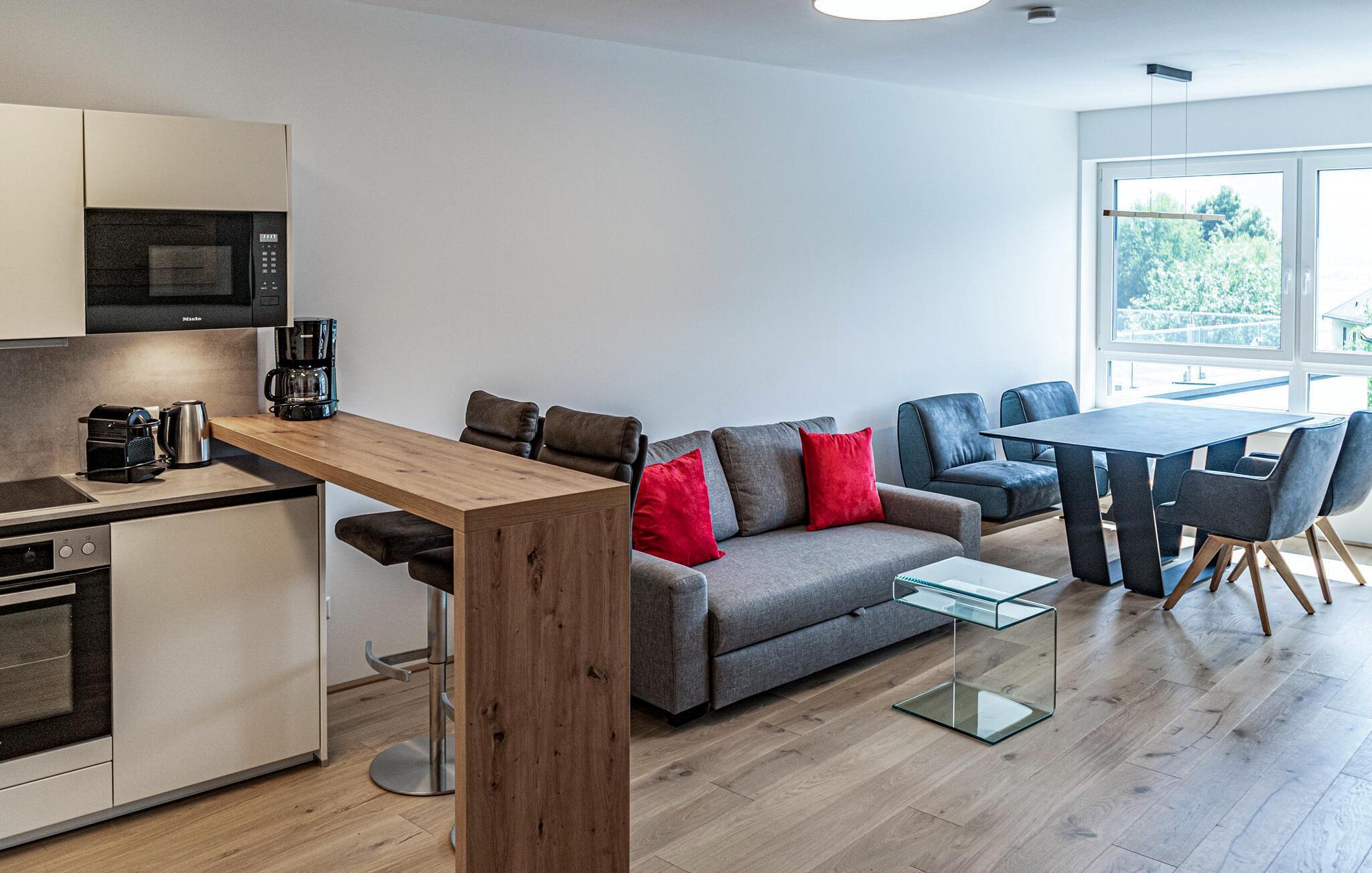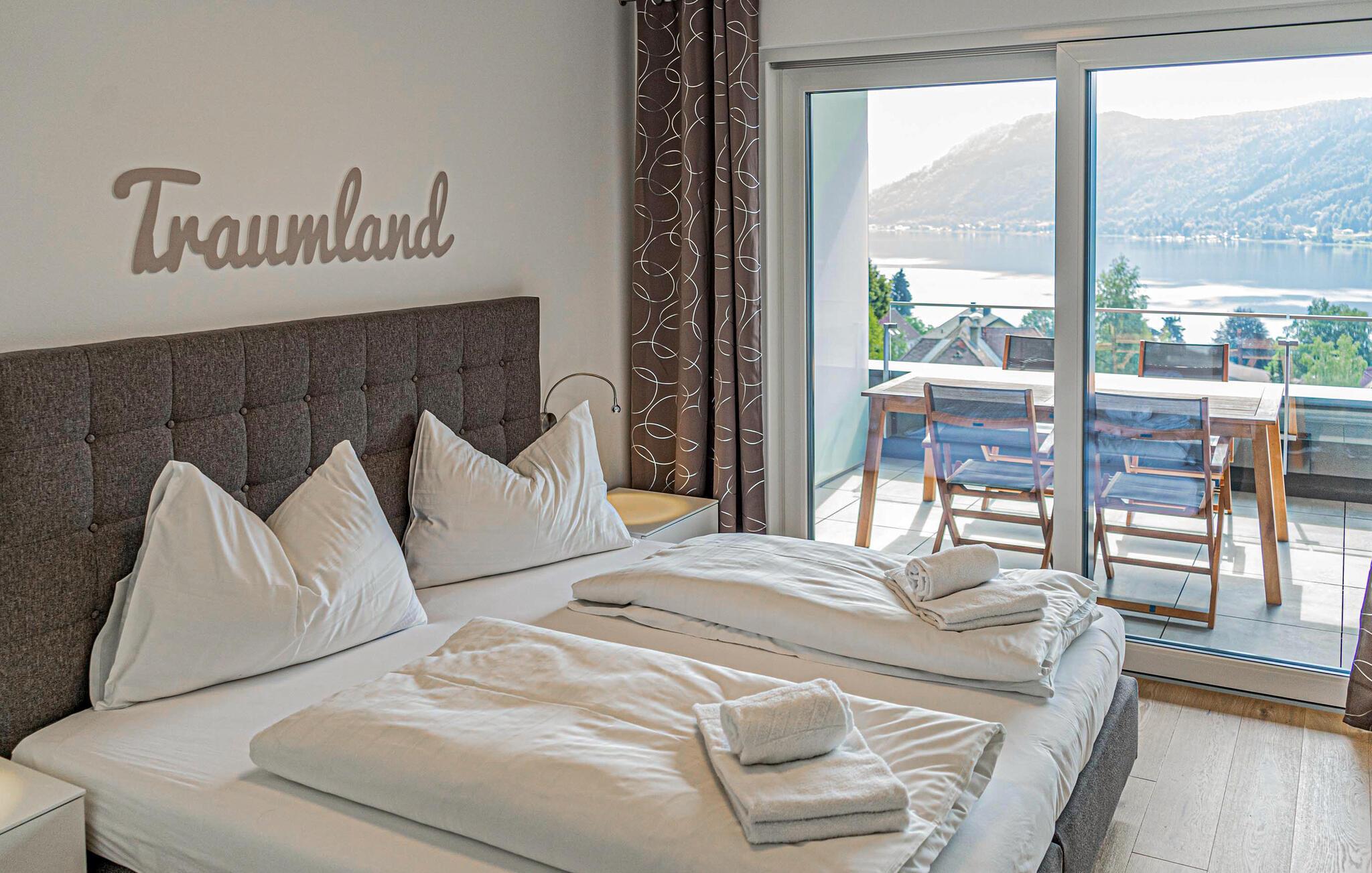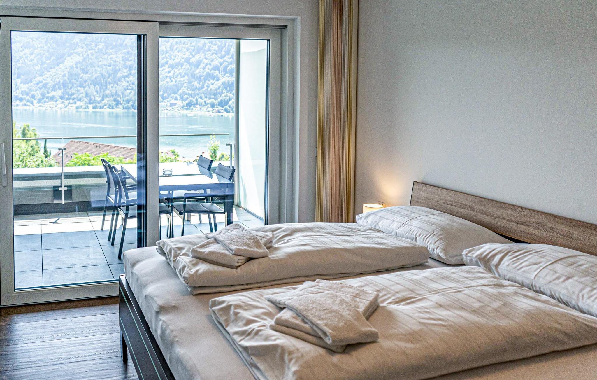 Ikke langt fra dalstasjonen til Gerlitzen Kanzelbahn og med fantastisk panoramautsikt over Ossiach-sjøen, finner du noen eksklusivt møblerte ferieleiligheter i et privat kompleks. Du vil motta en leilighet av den bestilte typen, som inneholder minst det oppførte utstyret. Bildene er eksempler og kan variere noe. Leilighetene ligger i forskjellige etasjer. Hver leilighet har balkong eller terrasse og utsikt over innsjøen.
