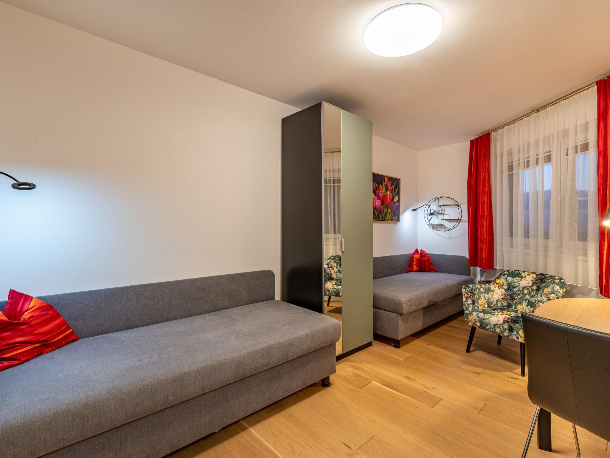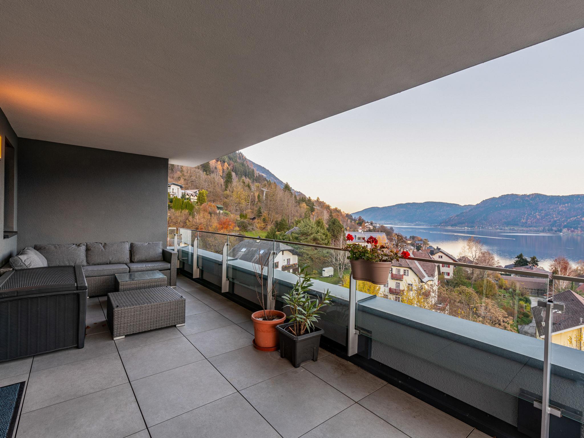 "Adlerblick alpe maritima Ski & See - 22", 3-room apartment 81 m2 on 3rd floor. Bright, very modern and tasteful furnishings: entrance hall. Living/dining room with dining table, TV and digital TV (flat screen). Exit to the terrace. 1 room with 1 bed (90 cm, length 200 cm), shower/bidet/WC. 1 room with 2 sofabeds (90 cm, length 200 cm), bathroom and separate WC. Open kitchen (oven, dishwasher, 4 induction hot plates, toaster, kettle, microwave, freezer, grill, electric coffee machine, Capsules for coffee machine (Nespresso) extra). Parquet floors. Large terrace 27 m2. Terrace furniture. Very beautiful panoramic view of the lake and the mountains. Facilities: washing machine, mosquito net, hair dryer. Internet (WiFi, free). Parking (roofed, 1 car). E-charging station. Please note: non-smokers only. Smoke alarm. Free e-charging station, free access to Amazon Prime, Netflix and Sky Austria Sport.