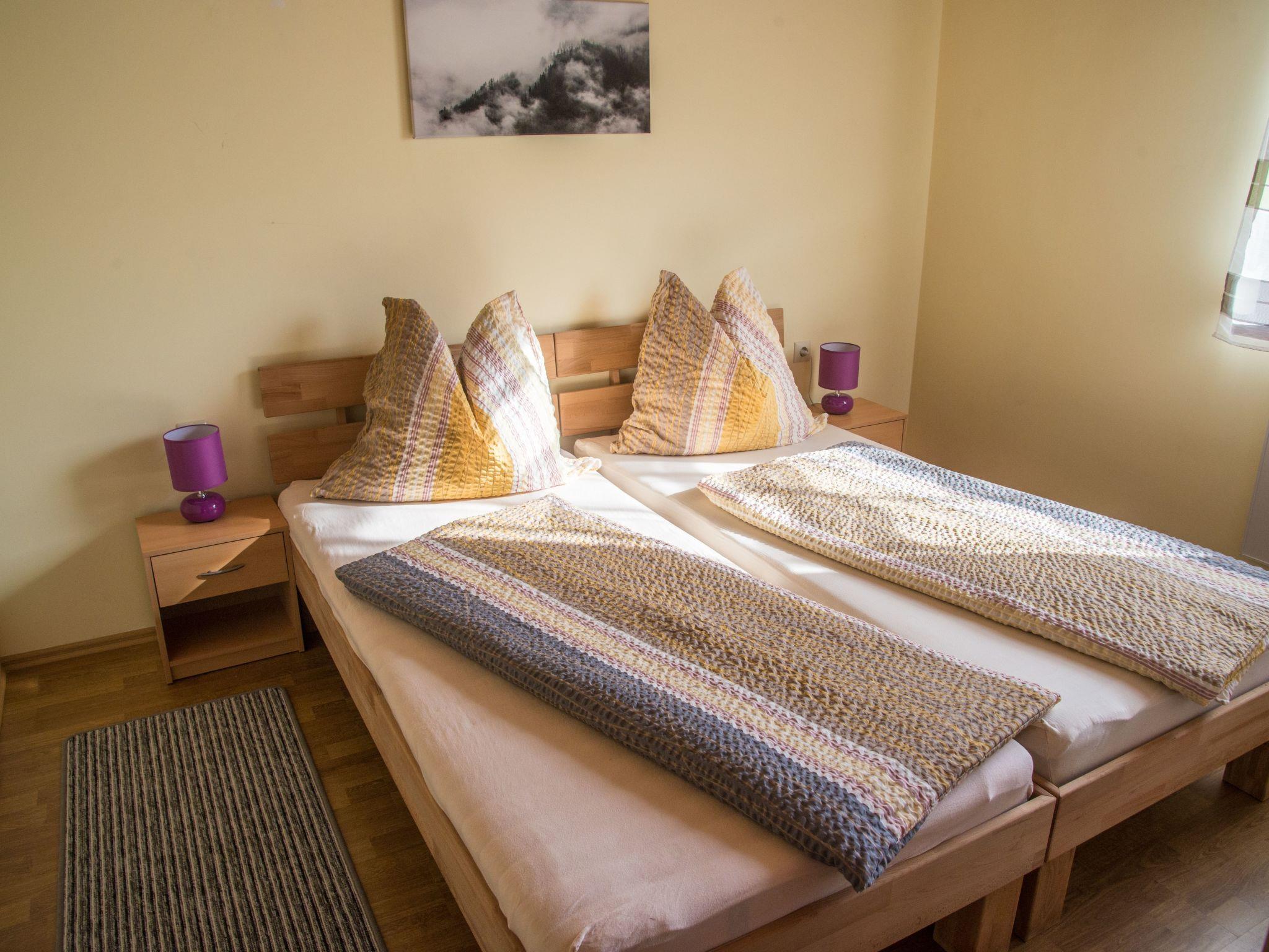 The apartment offers 2 double bedrooms, a kitchen, living / dining area, bathroom and hallway. One of the bedrooms is a twin room. The living room has a sofa bed. The kitchen is fully equipped with ceramic hob, oven, dishwasher, microwave, refrigerator with ice compartment, kettle, coffee maker, a complete set of crockery, cutlery and all the utensils necessary for cooking. A TV with Wi-Fi is available. The bathroom is barrier-free and has a shower, washbasin and toilet as well as a washing machine and a heated towel rail. Fresh towels and bed linen are provided. The apartment is heated with thermostatically controlled infrared radiators in all rooms.