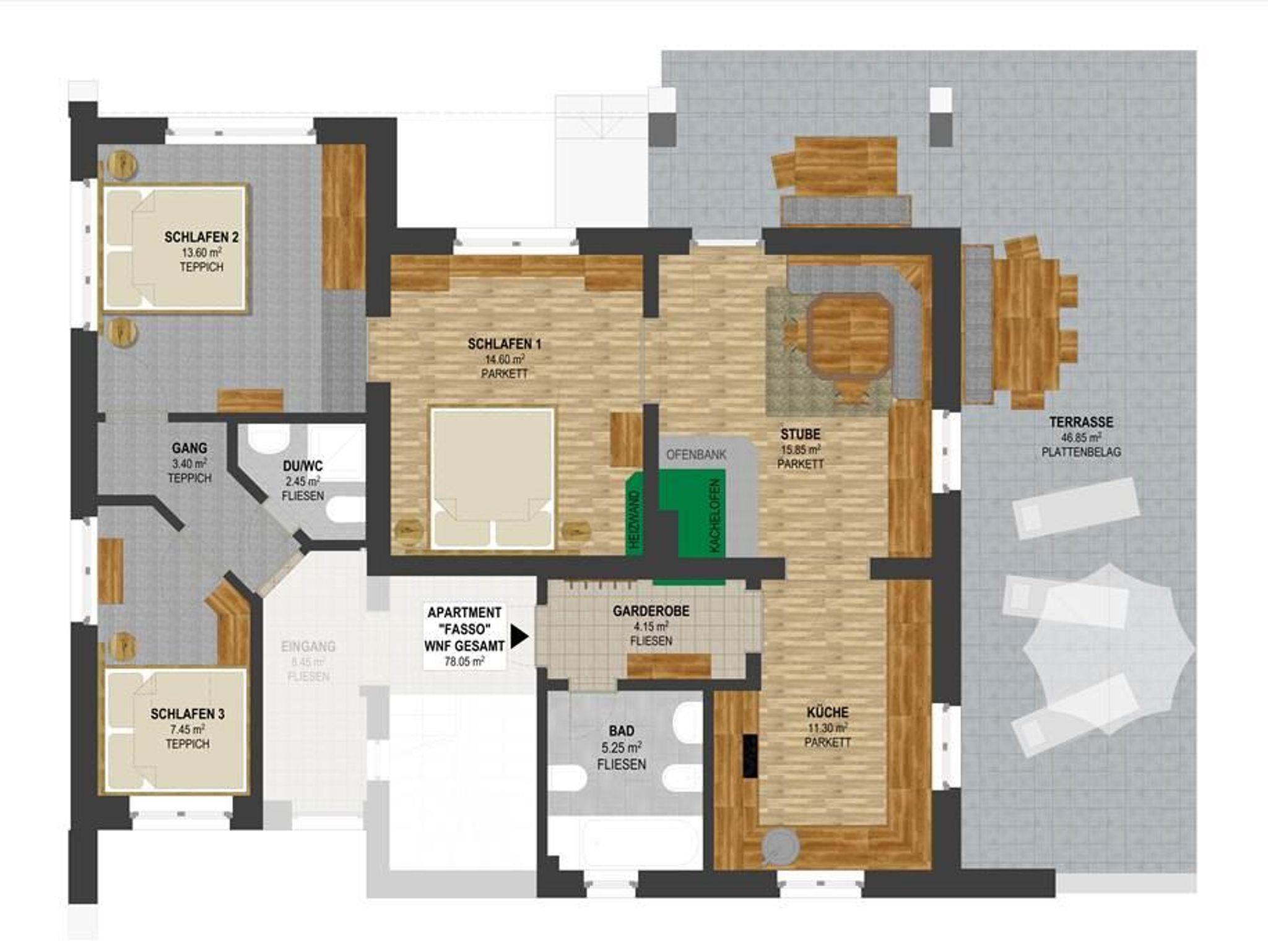 Ahnenhöfl Ferienwohnungen, Apartment "Sasso", Dusche, WC, 3 Schlafräume