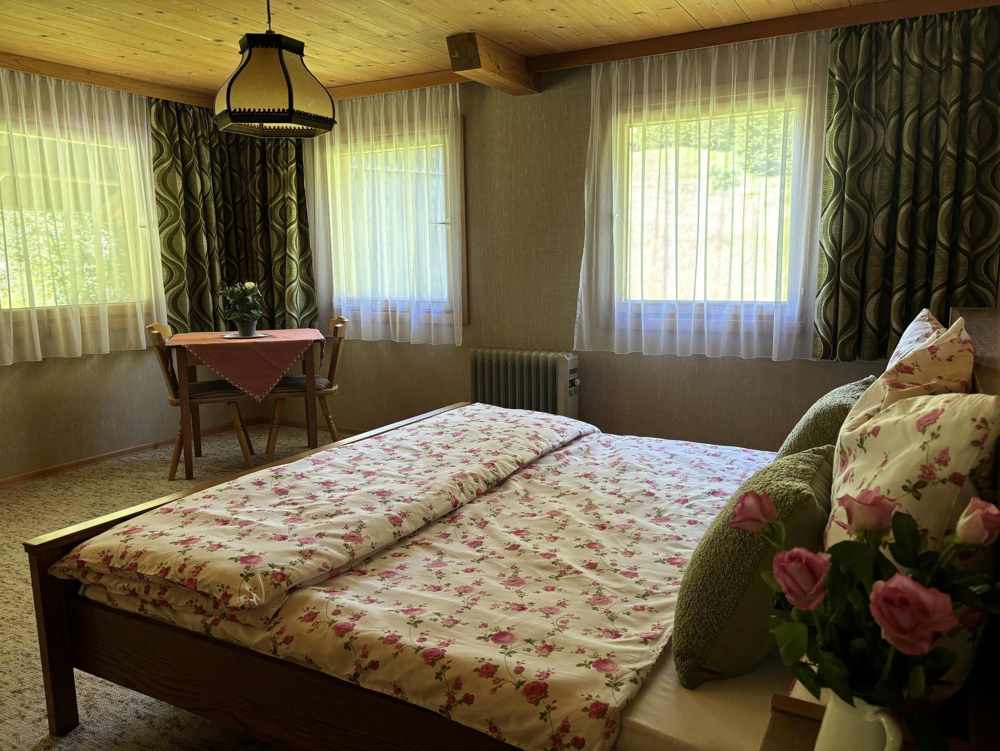 Unser liebevoll eingerichtetes Haus bietet Platz für bis zu sieben Personen und ist ideal für Familien und Freunde, die eine Auszeit inmitten der Natur suchen. Es verfügt über vier gemütliche Schlafzimmer, eine heimelige Stube mit Eckbank & Kachelofen, einen Aufenthaltsraum mit TV & Büchern und eine voll ausgestattete Küche. Ebenso verfügen wir über einen grossen Garten, der zum Verweilen einlädt.