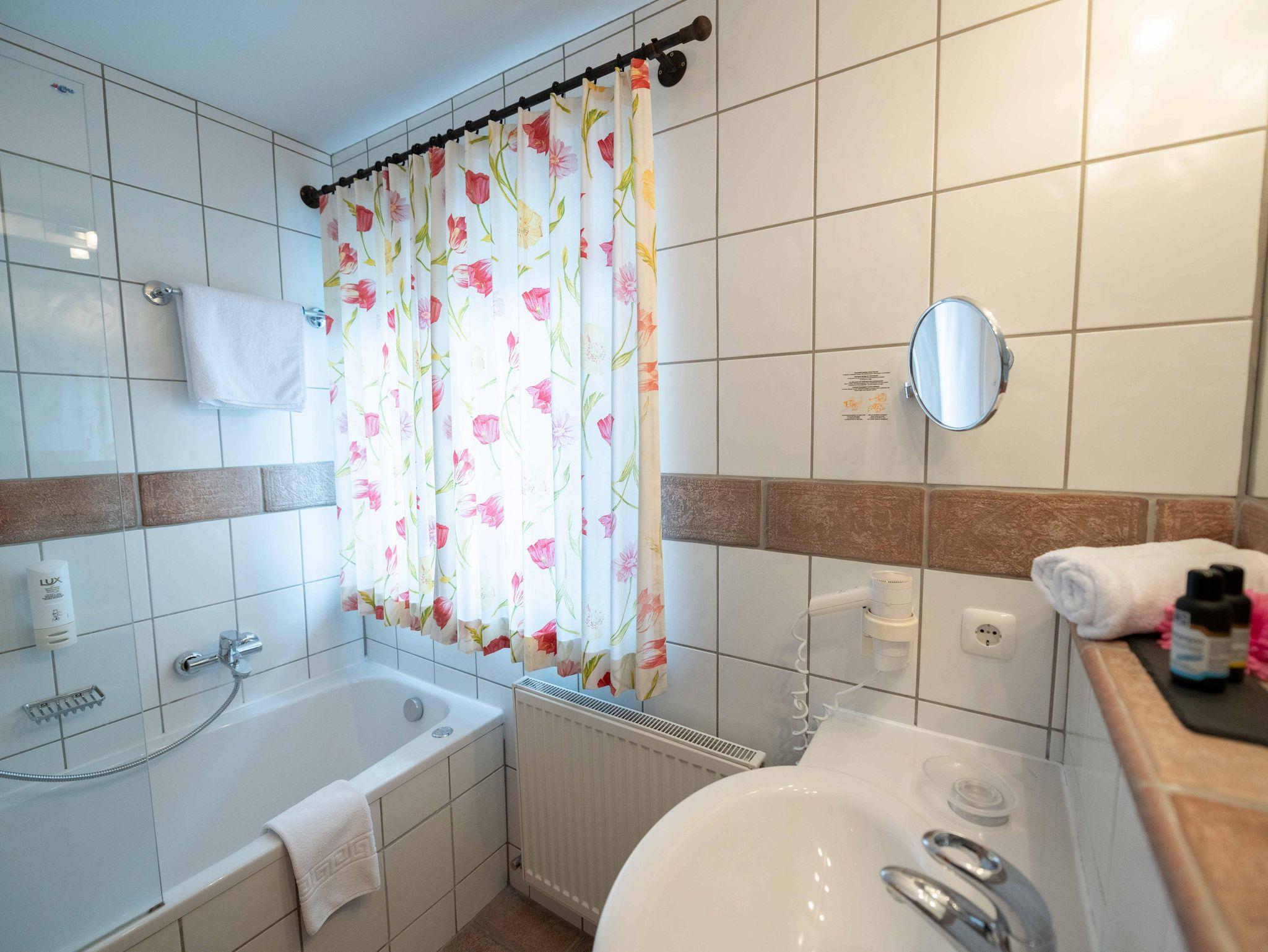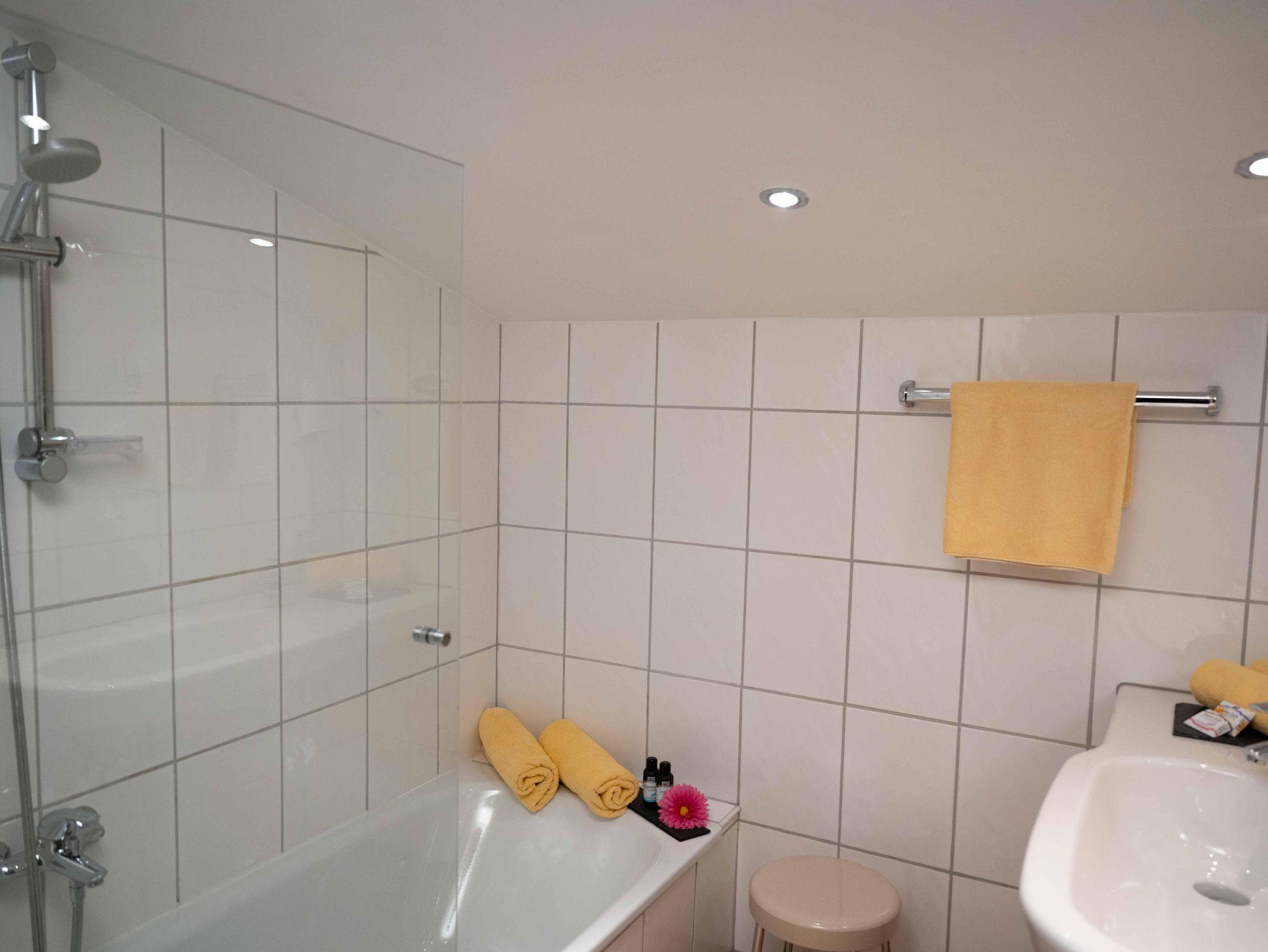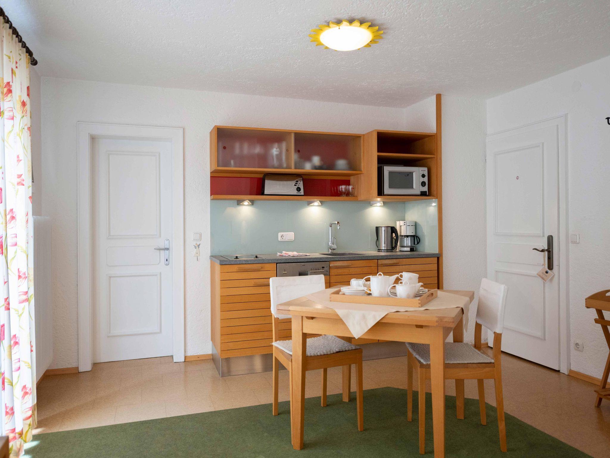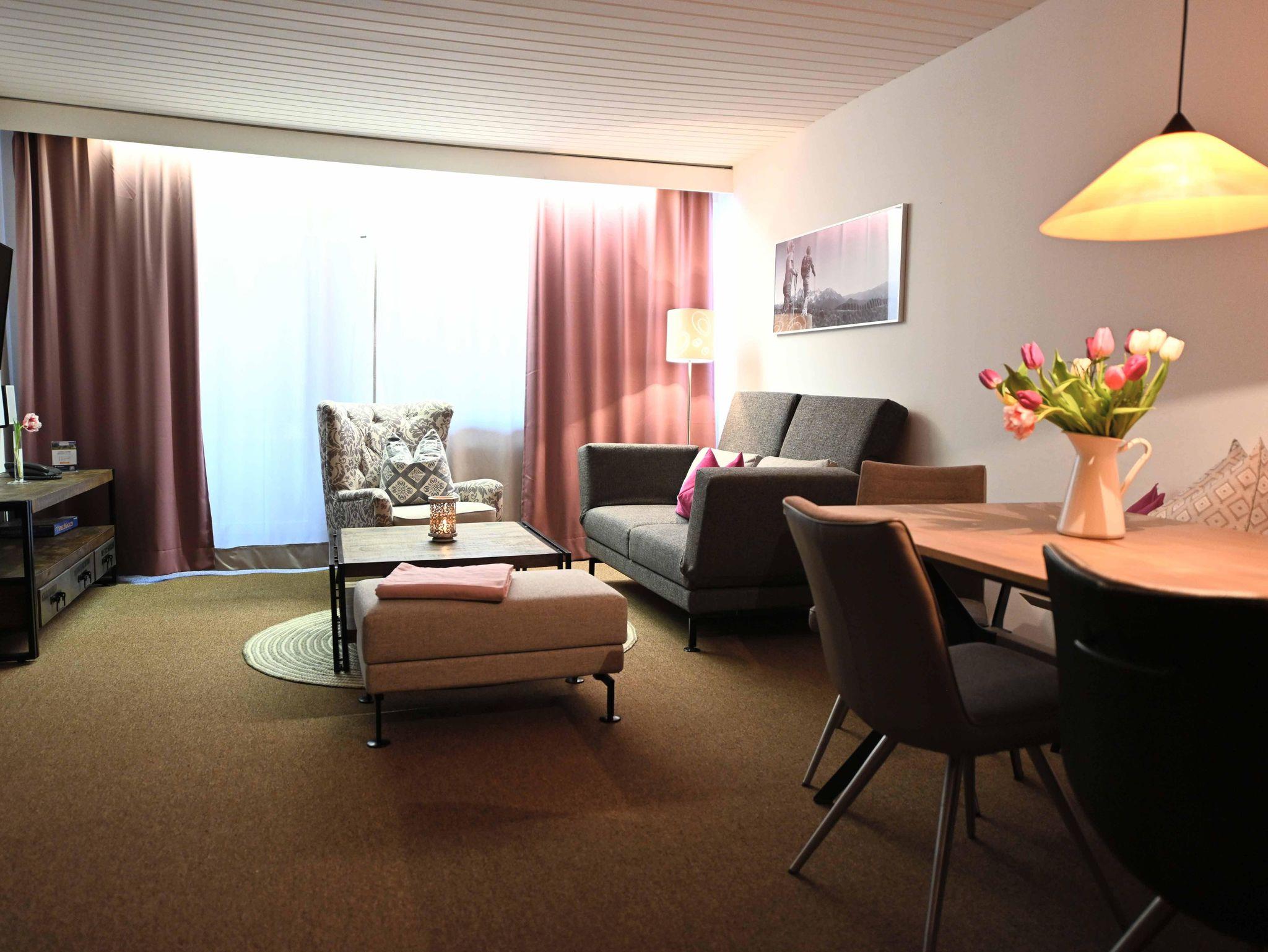Wunderschön ausgestattete Ferienwohnung mit 2 Schlafzimmern, geräumiges Wohnzimmer mit Essbereich, vollausgestattete Küche, Bad mit Badewanne, WC. Großer Balkon bergseitig mit Nachmittagssonne