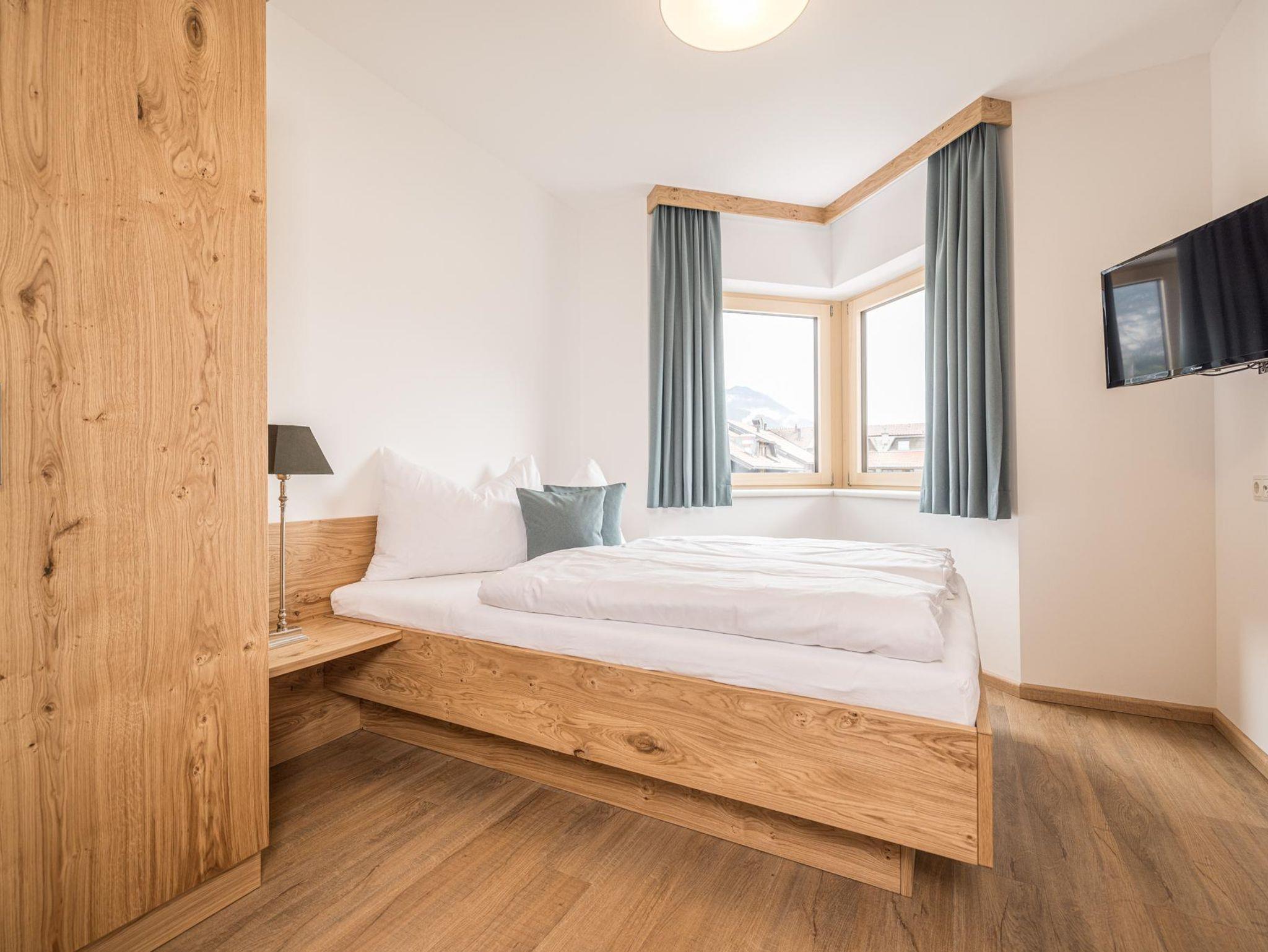 Das Appartement Glück befindet sich im 2. Obergeschoss und verfügt über 47m2 und bietet Platz für bis zu vier Personen. Das modern eingerichtete Appartement mit Blick auf den Rattenberger Schlossberg sowie das Inntal verfügt über ein Schlafzimmer mit einem großzügigen Doppelbett und einem Wohn - Essbereich. Die Küche ist voll ausgestattet mit einer Nespresso Maschine, Wasserkocher, Kühlschrank mit Gefrierfach, Backofen, 4- Platten Cerankochfeld, Geschirrspüler, Kochuntensilien und Geschirrtücher. TV Geräte finden Sie im Wohn - Essbereich wie auch im Schlafzimmer vor. Ebenfalls bietet das Appartement eine gemütliche Essecke sowie ein Sofa mit Ausziehfunktion an.