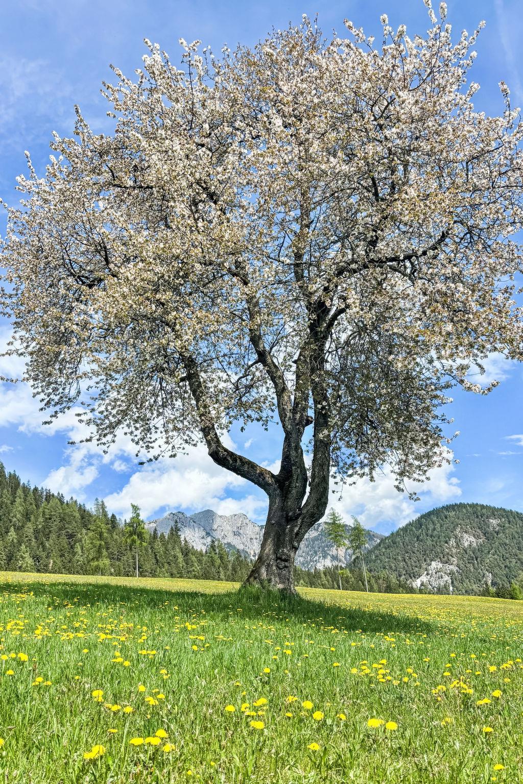 "Wohnung 5", 3-room apartment 90 m2, on the top floor. With sloping ceilings, practical and wooden furniture furnishings: 2nd upper floor: living room with dining table and satellite TV. 2 rooms, each room with 1 double bed. Exit to the balcony. Open kitchen (oven, 4 ceramic glass hob hotplates, toaster, kettle, microwave, electric coffee machine). Shower/WC, sep. WC. Wood heating. Parquet floors, carpet. Balcony. Very beautiful view of the mountains. Facilities: Internet (WiFi, free). Please note: non-smoking house. Maximum 2 pets/ dogs allowed. Smoke alarm, fire extinguisher.