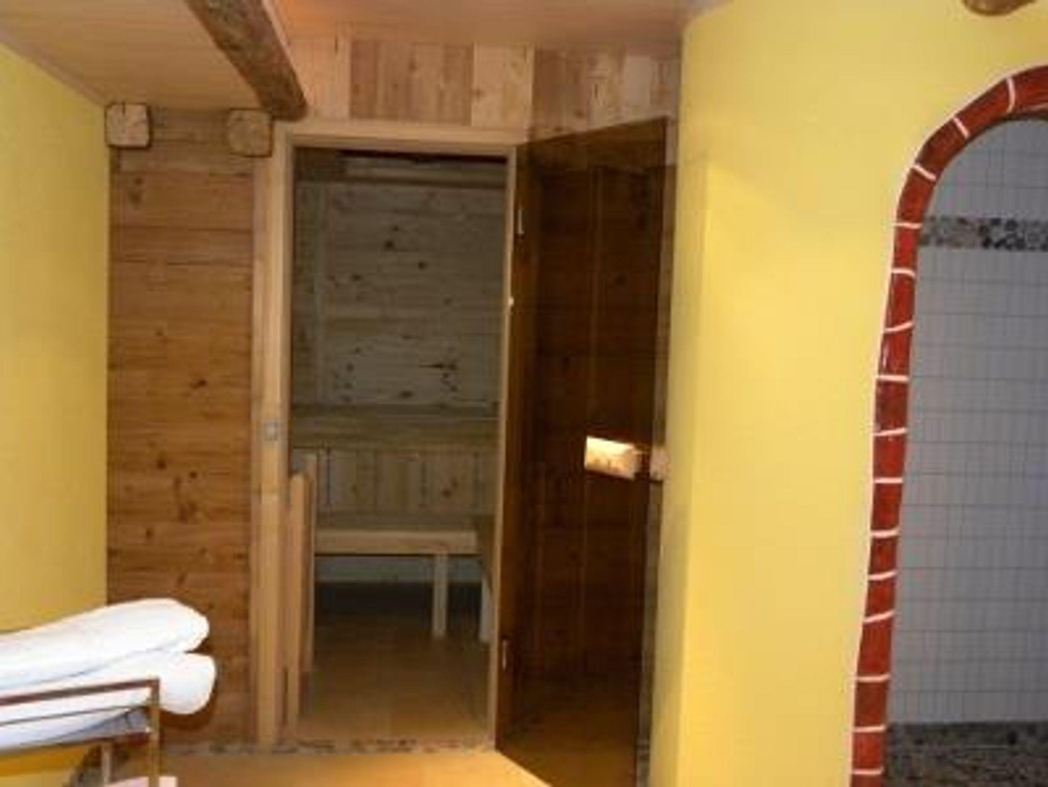 Großes Ferienhaus (200m²) für bis zu 10 Personen Wohnzimmer (45m²) mit offenem Kamin und Schiebetür zur Terrasse 4 geräumige Schlafzimmer Wellnessbereich mit Sauna und Tepidarium Grillmöglichkeit im Garten Balkone mit Panoramablick Garage