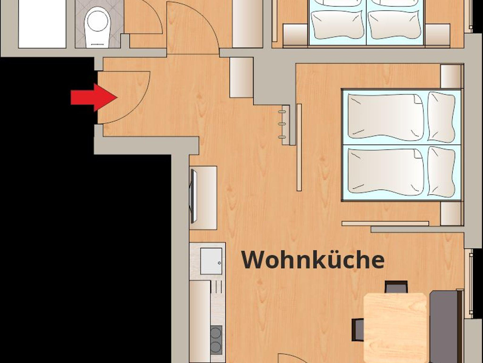 Ankommen und Wohlfühlen. Dieses voll ausgestattete Appartement besteht aus 2 Schlafzimmer, einer Küche sowie einem Bad mit Dusche & WC und ermöglicht ein komfortables Wohnen für 2 - 4 Personen.