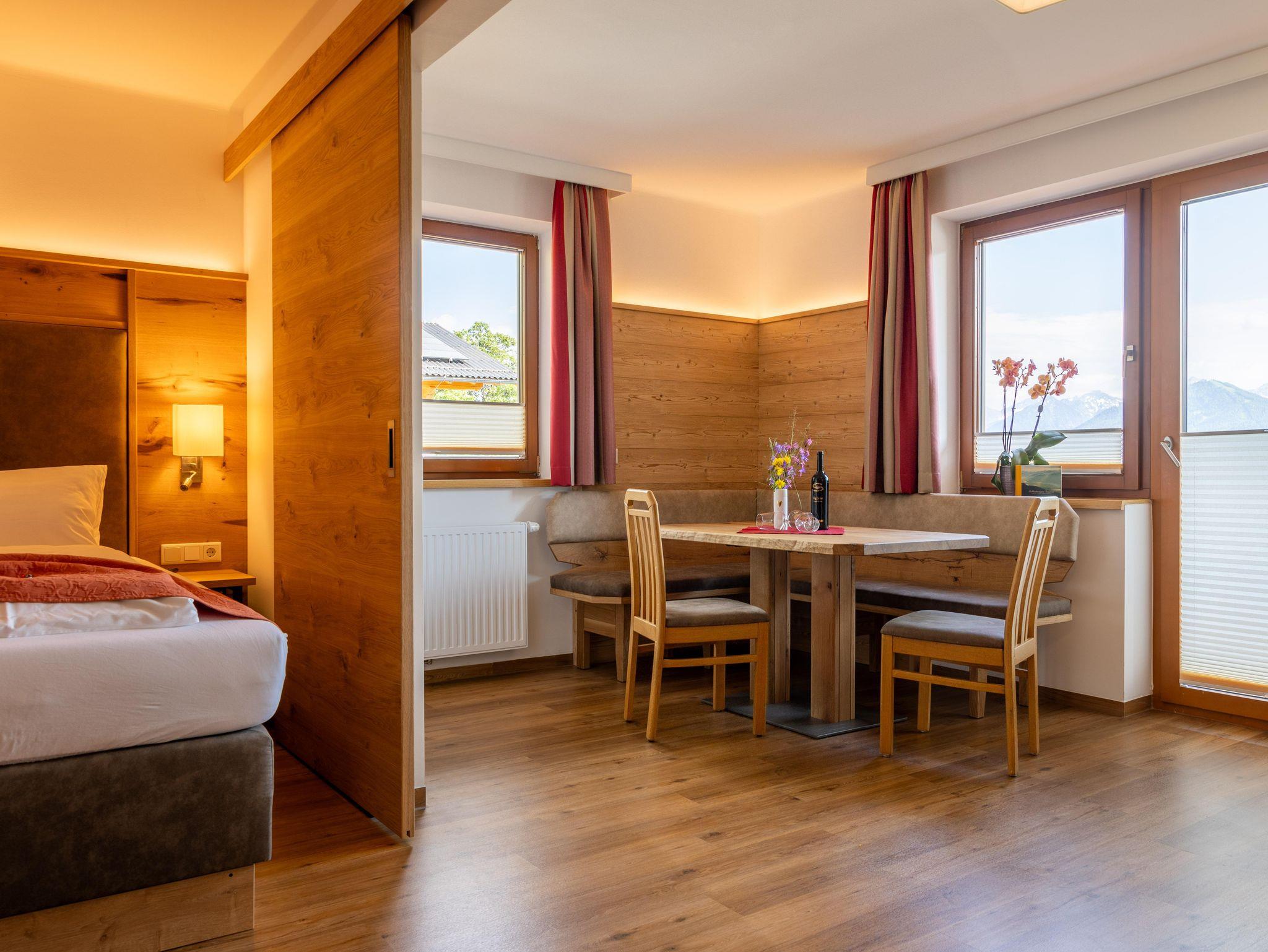 In unserem Hotel bieten wir Ihnen modern eingerichtete Doppel-, Dreibettzimmer und Ferienwohnungen bzw. Appartements. Alle Zimmer verfügen über geräumige Badezimmer, einem eigenen Balkon mit Bergblick, kostenloses WLAN, Flachbild -TV, Zimmersafe, Radio und einen gemütlichem Sitzbereich.
