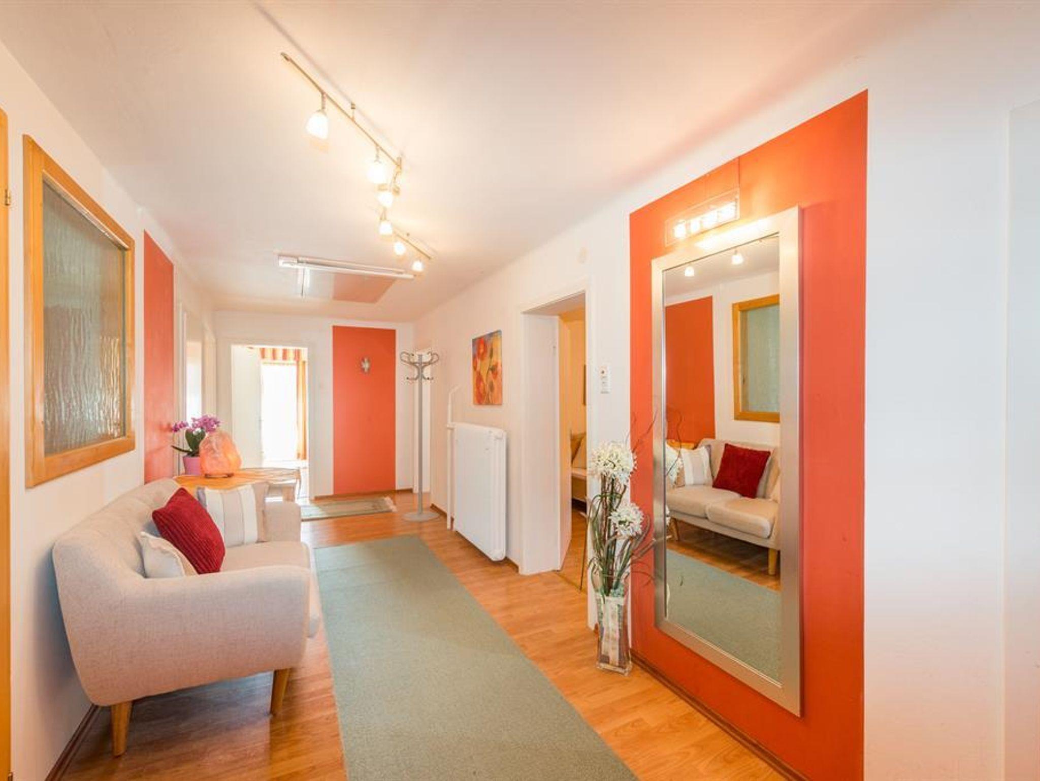 Gönnen Sie sich Platz! Appartement im modernen Stil in der 1. Etage mit über 100 m² und einem wunderbaren Ausblick auf die bezaubernde Bergwelt! Aufgeteilt in 2 Einheiten: 1. Einheit: Küche mit gemütlicher Sitzecke und Wohnlandschaft, Balkon mit Bergpanorama, 2 separate Schlafzimmer (1 x Doppelbett und 1 x Einbettzimmer mit Zustellbett), Vorraum mit Garderobe, 1 x Badezimmer mit Dusche und WC. Die Schlafzimmer sind mit Flat-TV Radio ausgestattet. 2. Einheit: 2 separate Schlafzimmer (1 x Doppelbett und 1 x franz. Bett), Vorraum mit Garderobe, Badezimmer mit Dusche und separatem WC. Balkon mit Gartenblick. Gratis W-Lan. Ihr Vierbeiniger Freund auf Anfrage herzlich willkommen.