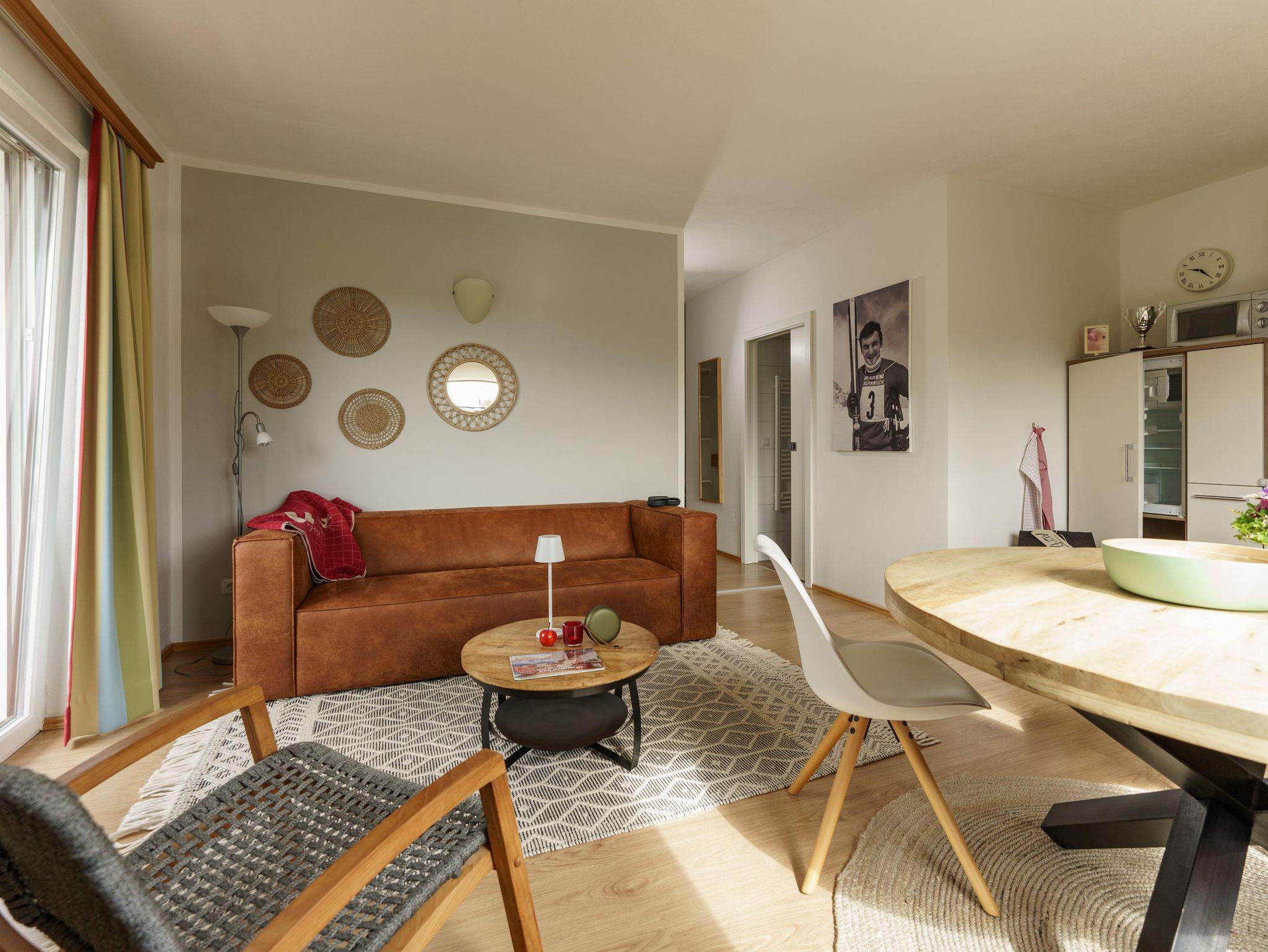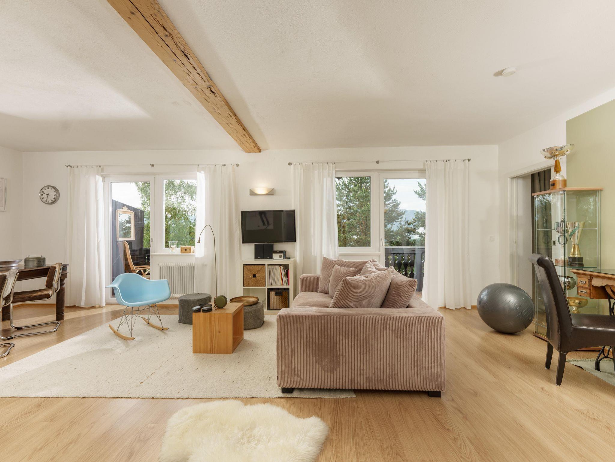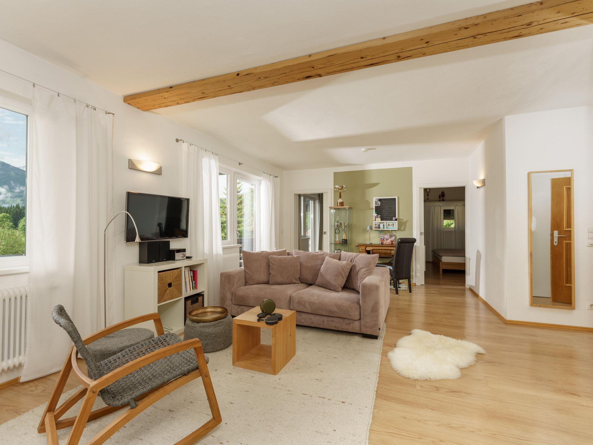 ... groß - hell - offen - originell DIE WOHNUNG FÜR DIE WITZIGEN ... für 2-4 Personen, 75 m2 Eichenboden, 2 Schlafzimmer (TEMPUR Matratzen, begehbarer Kleiderschrank, Südbalkon), „RIESENRAUM“ mit 2 Lodencouches, Flat-TV, Schreibtisch, Stereoanlage, Südbalkon mit Schaukel, grosser Esstisch, moderne Küche mit Geschirrspüler, Espresso-Maschine, Mikro, Toaster, Wasserkocher etc, Badezimmer mit „Freiheits-Dusche“, WC extra mit Waschbecken, 11 m Balkon (mit Schaukel und Balkonmöbel), W-LAN, Brötchenservice, Gäste-Waschmaschine. Im Winter: freier Eintritt in das Ramsauer Badeparadies. Im Sommer: GRATIS Schladming-Dachstein Sommercard