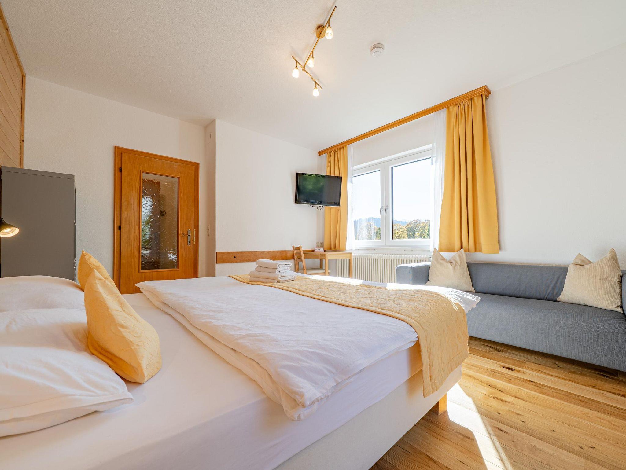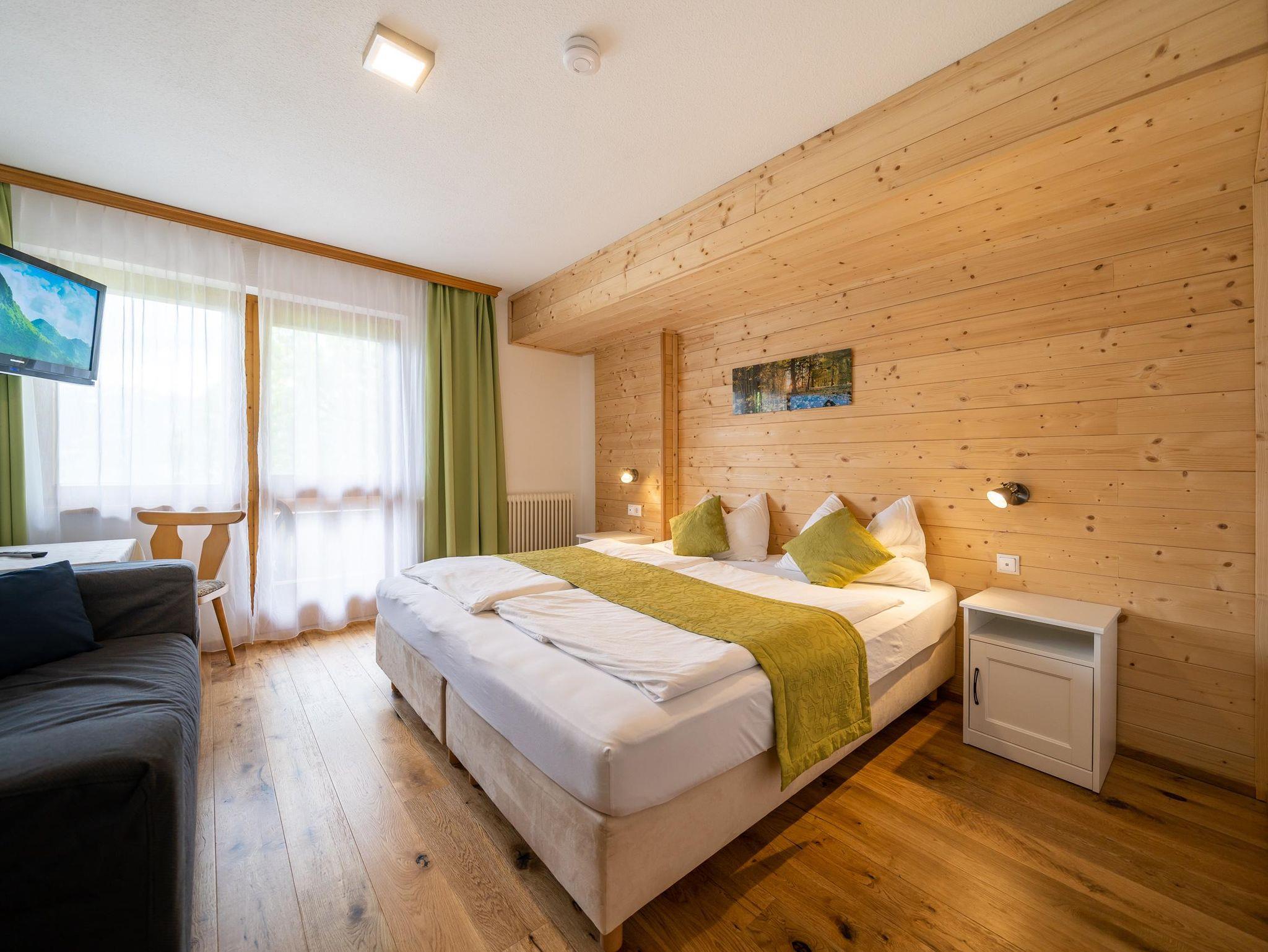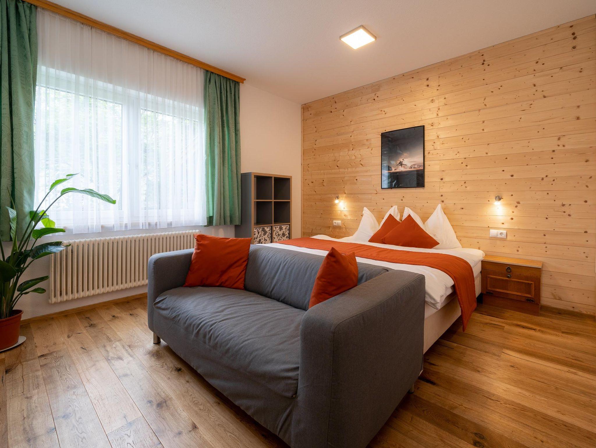 Unser gemütliches Doppelzimmer bietet angenehmen Komfort für zwei Personen und ist ideal für Paare oder Alleinreisende, die entspannte Tage in den Bergen verbringen möchten. Das liebevoll eingerichtete Zimmer überzeugt durch seine warme, einladende Atmosphäre.