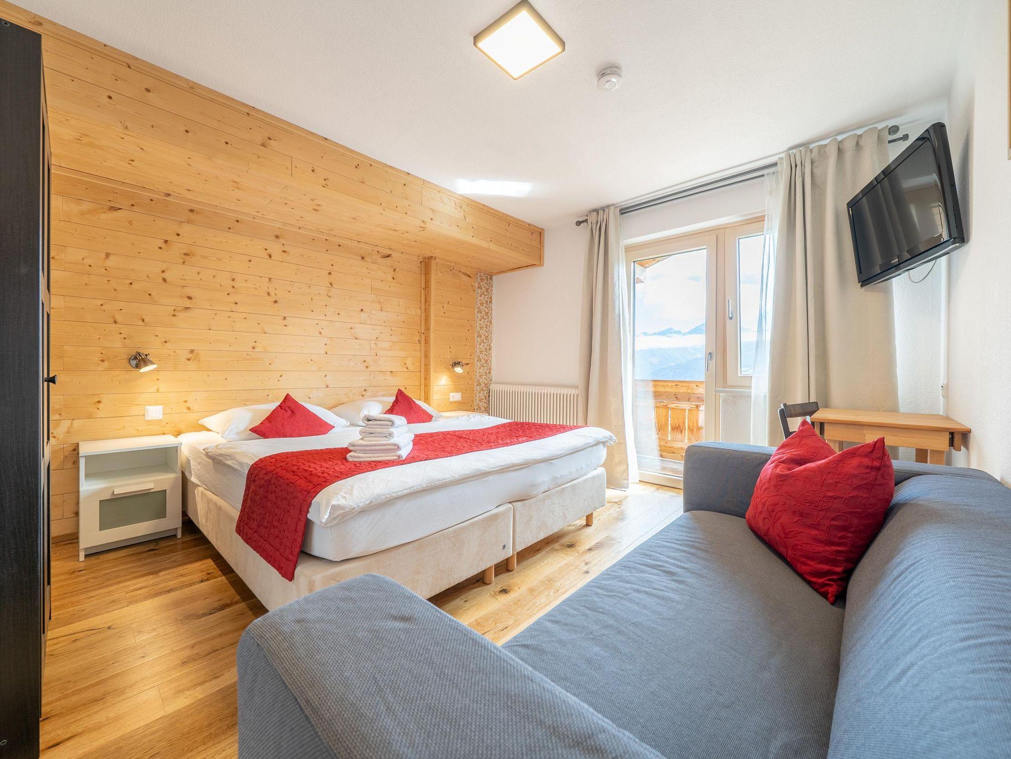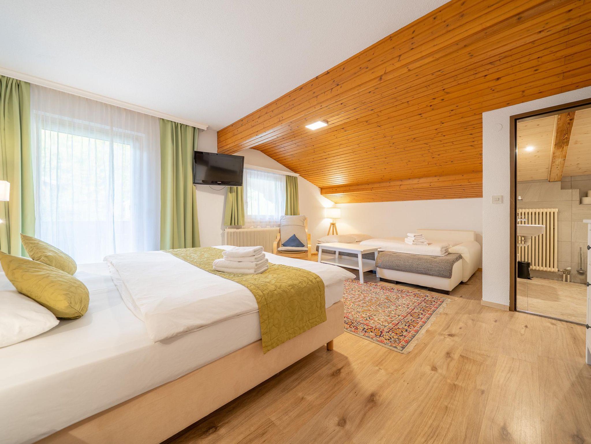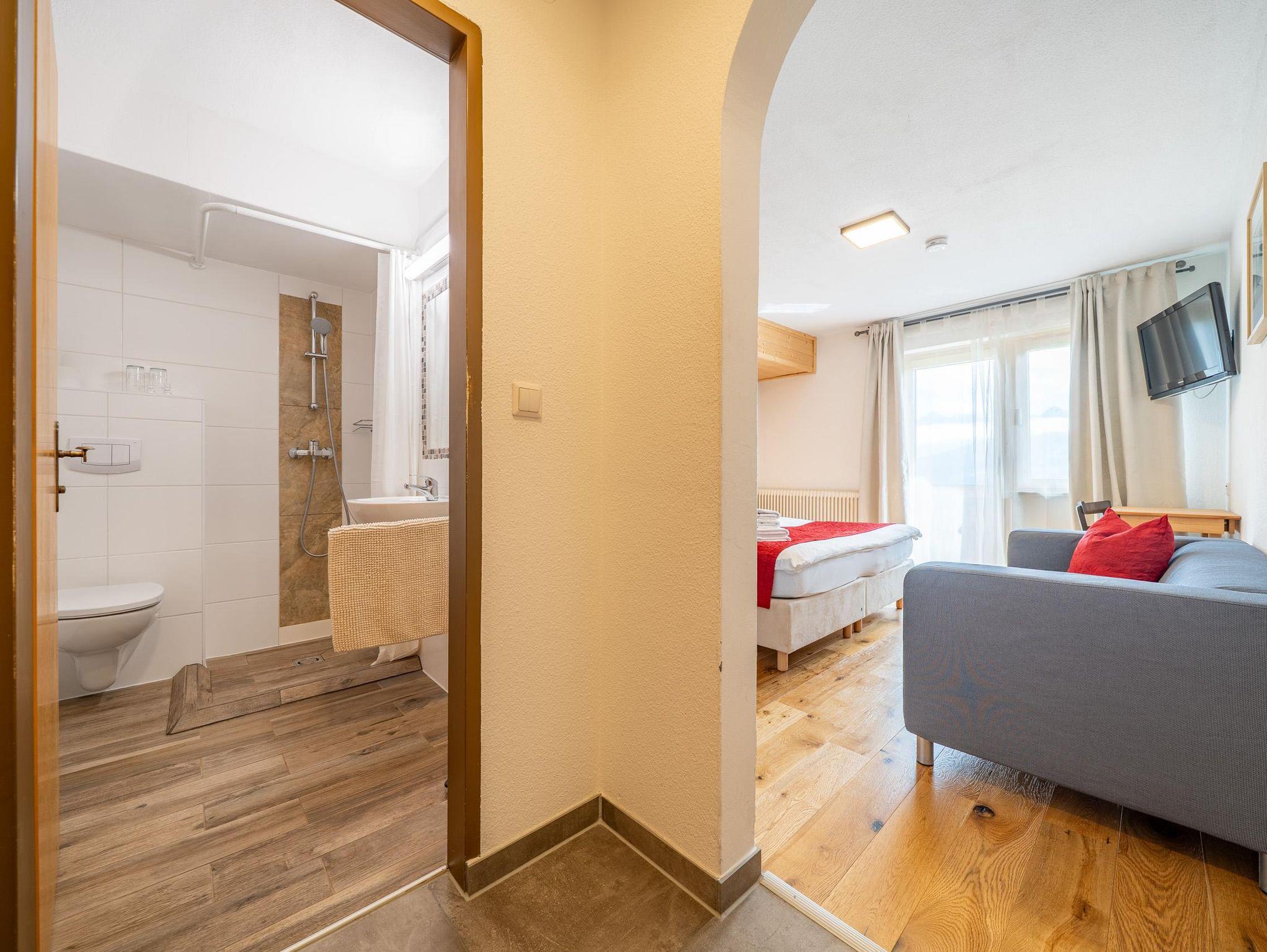 Vom eigenen Balkon aus genießen Sie eine herrliche Aussicht auf die umliegende Bergwelt – perfekt, um den Tag mit einer Tasse Kaffee zu beginnen oder den Abend in Ruhe ausklingen zu lassen. Das Zimmer ist mit einem komfortablen Doppelbett, Nachtkästchen, einem Sofa und einem Fernseher ausgestattet. Das moderne Badezimmer verfügt über Dusche und WC. Hier finden Sie Ruhe, Gemütlichkeit und Erholung inmitten der Natur.