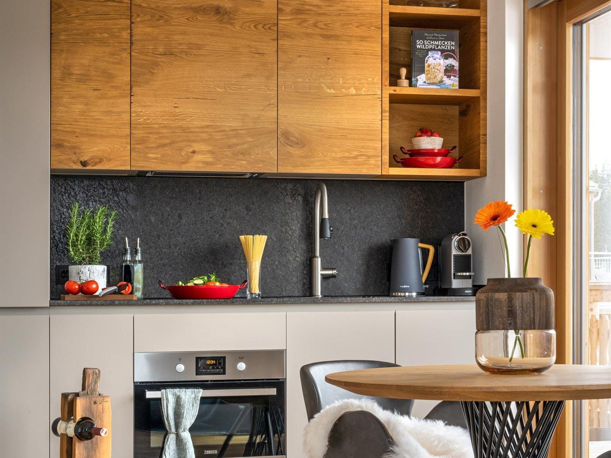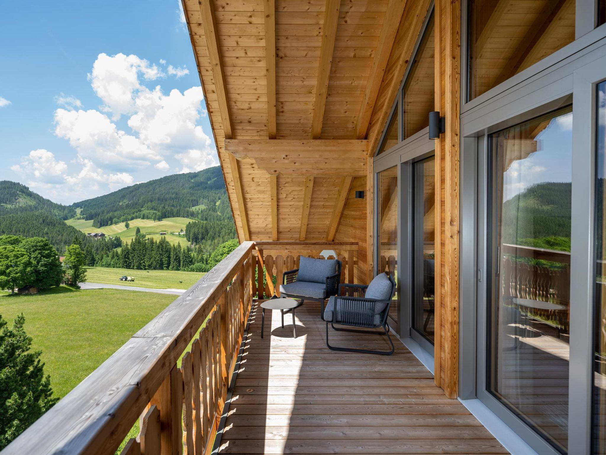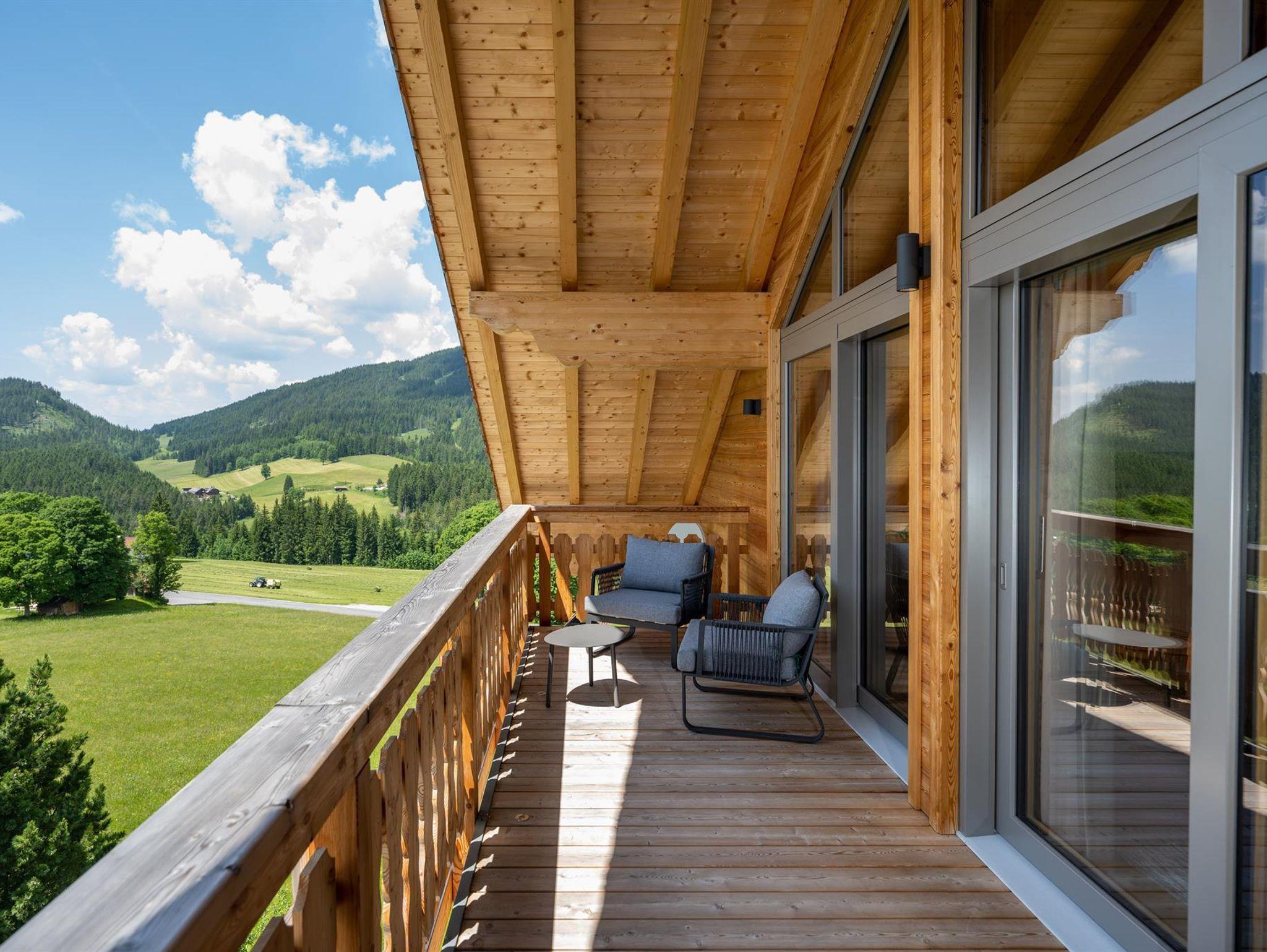Hochwertigste Materialien treffen im Alpine-Cosmopolitan Design auf eine atemberaubende Aussicht über die Niederen Tauern. Die Süd-Ost-Ausrichtung des Apartments bietet Sonne von früh morgens bis in die Nachmittagsstunden.