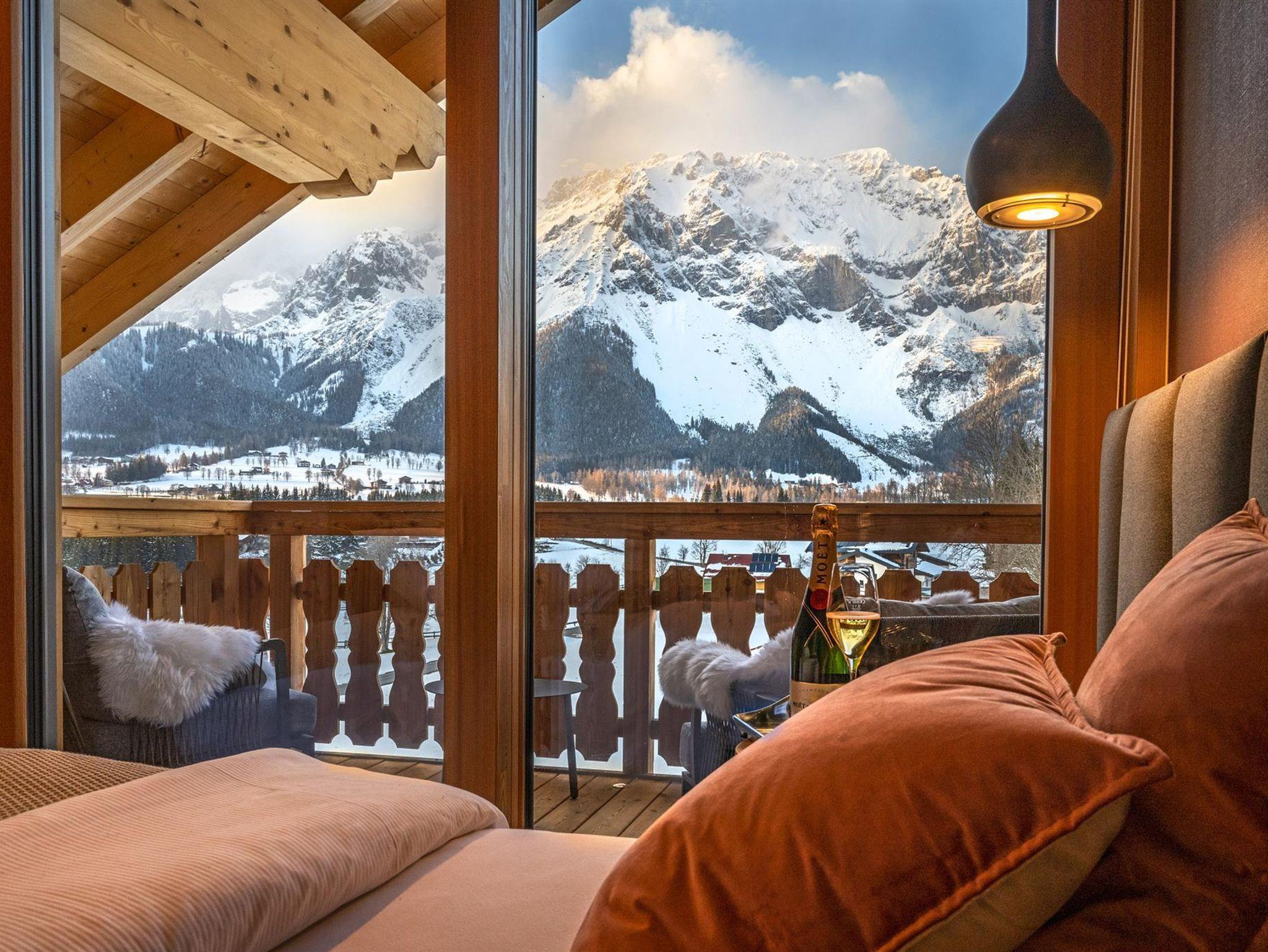 NEUERÖFFNUNG Mai 2021 - Design trifft Tradition in der im Mai 2021 neu eröffneten Alpine Residence Dachsteinperle - familiäre Atmosphäre seit 1975. Umgeben von der atemberaubenden Bergwelt auf dem Ramsauer Hochplateau bietet Ihnen die Alpine Residence Dachsteinperle einen einzigartigen Panoramablick über das Dachsteinmassiv und die Niederen Tauern.