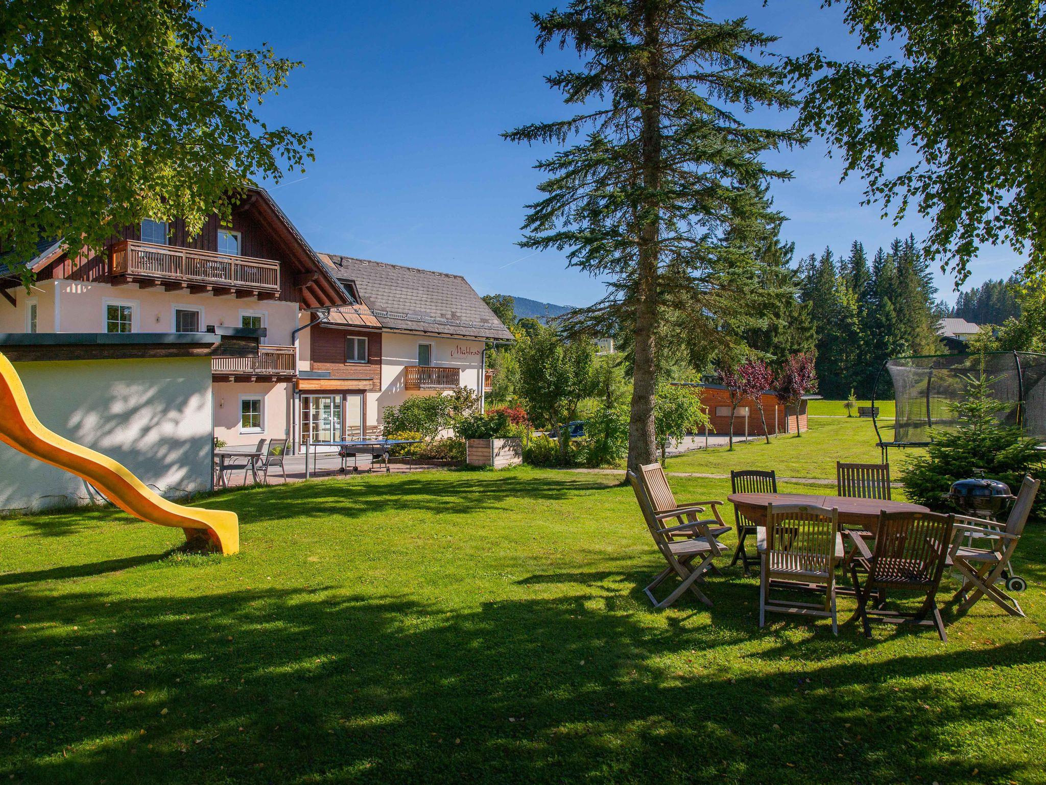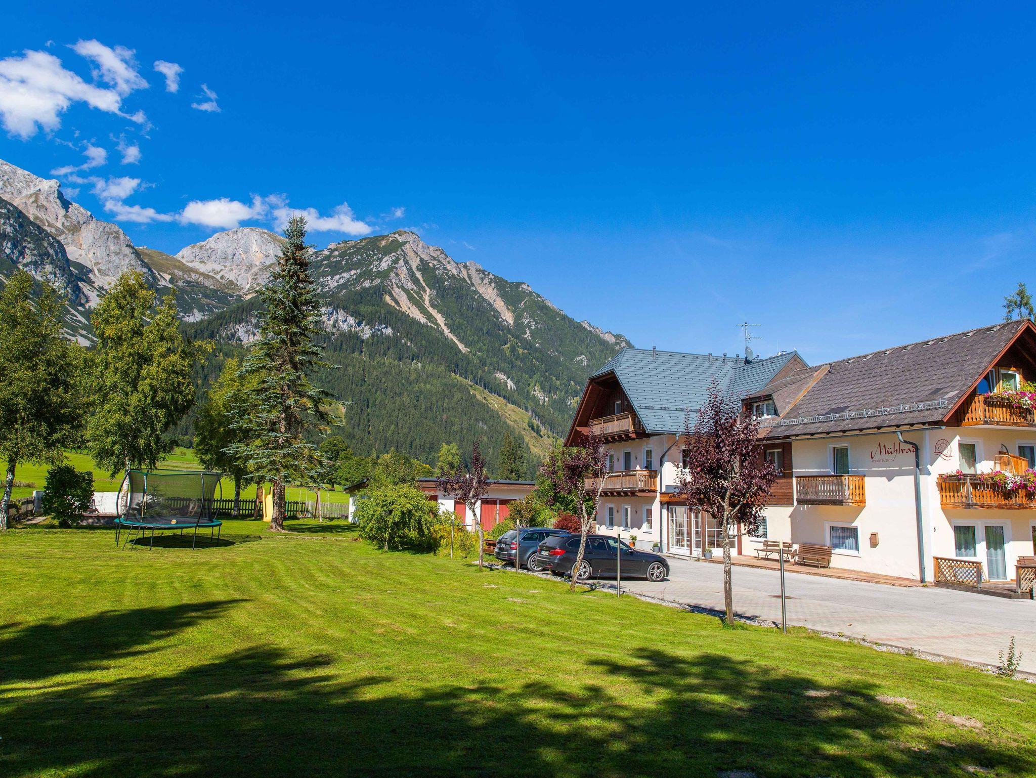 Im Sommer lädt der großzügige Garten am idyllischen Bach zum Entspannen ein, während zahlreiche Aktivitäten wie Wanderungen oder Spaziergänge direkt vom Haus aus beginnen können. Die ruhige und naturnahe Lage wird von einem atemberaubenden Panorama auf das Dachsteinmassiv gekrönt und macht das Mühlrad Appartements zu einem besonderen Rückzugsort für Ihren Urlaub – zu jeder Jahreszeit!