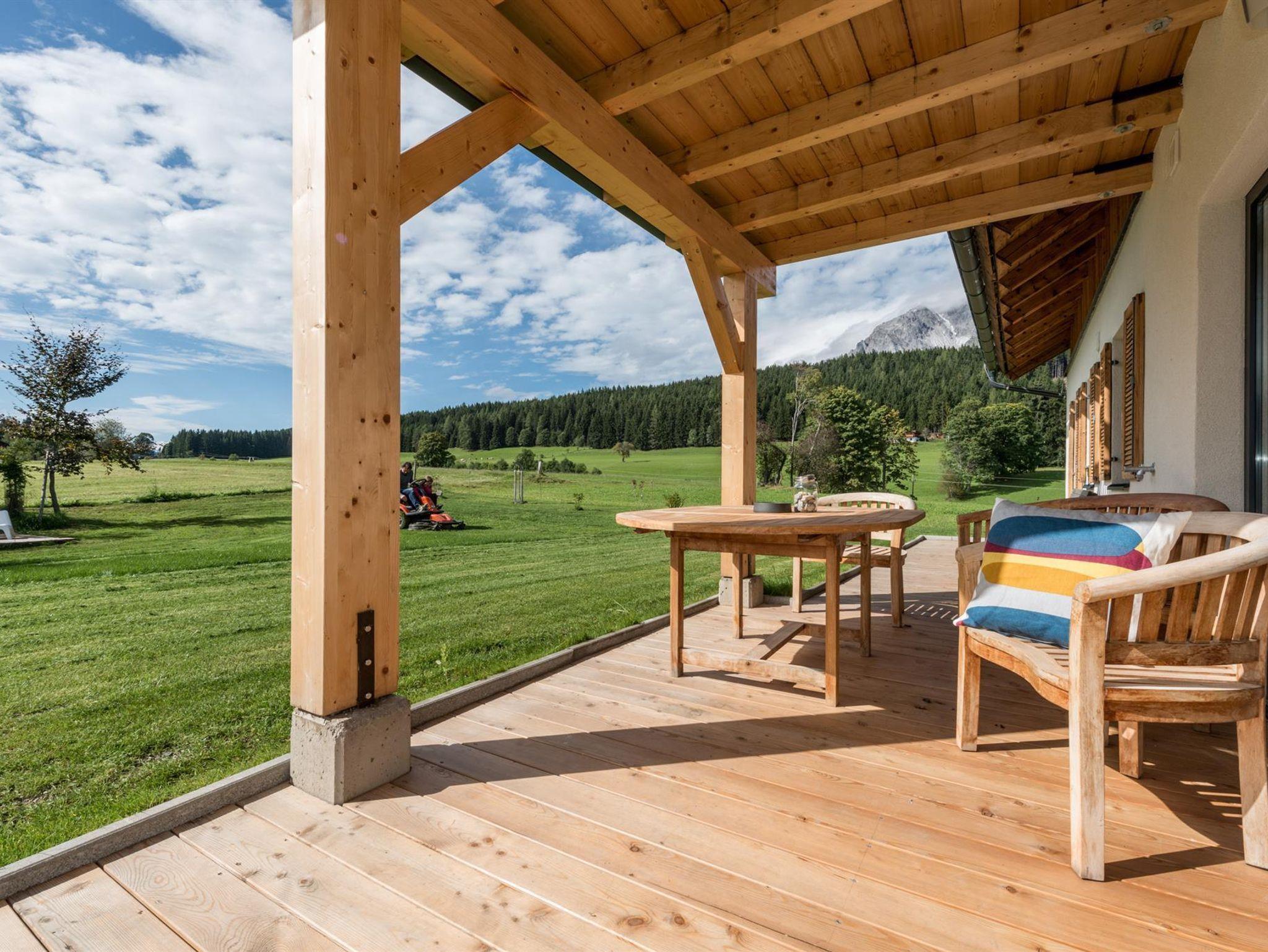 Zum Haus gehört ein großer Garten mit wunderbarer Aussicht, sowohl in die Schladminger Tauern, als auch nördlich ins Dachstein Gebirge. In der Anfahrt gibt es jeweils 2 sichere Parkplätze mit Carport.