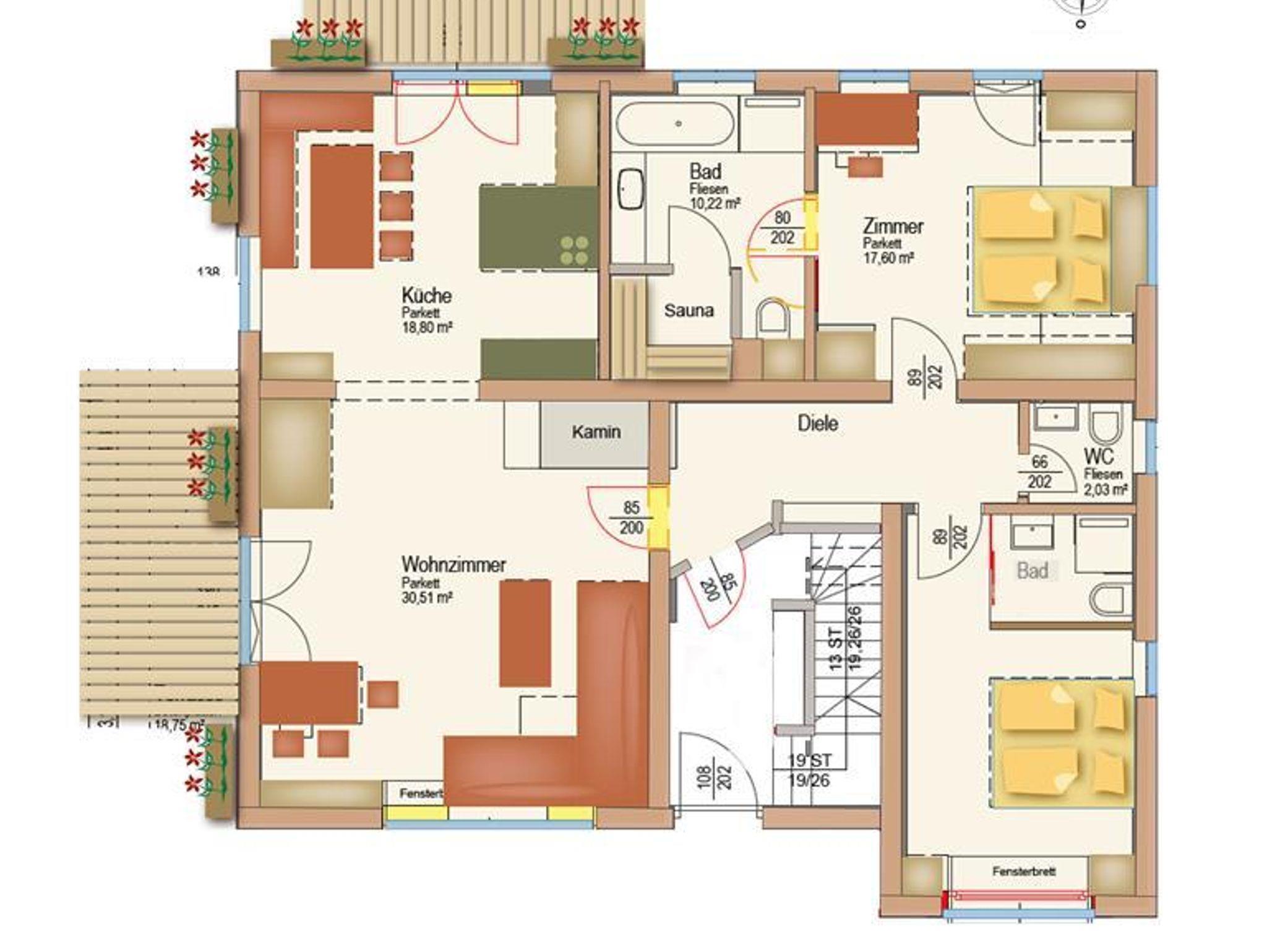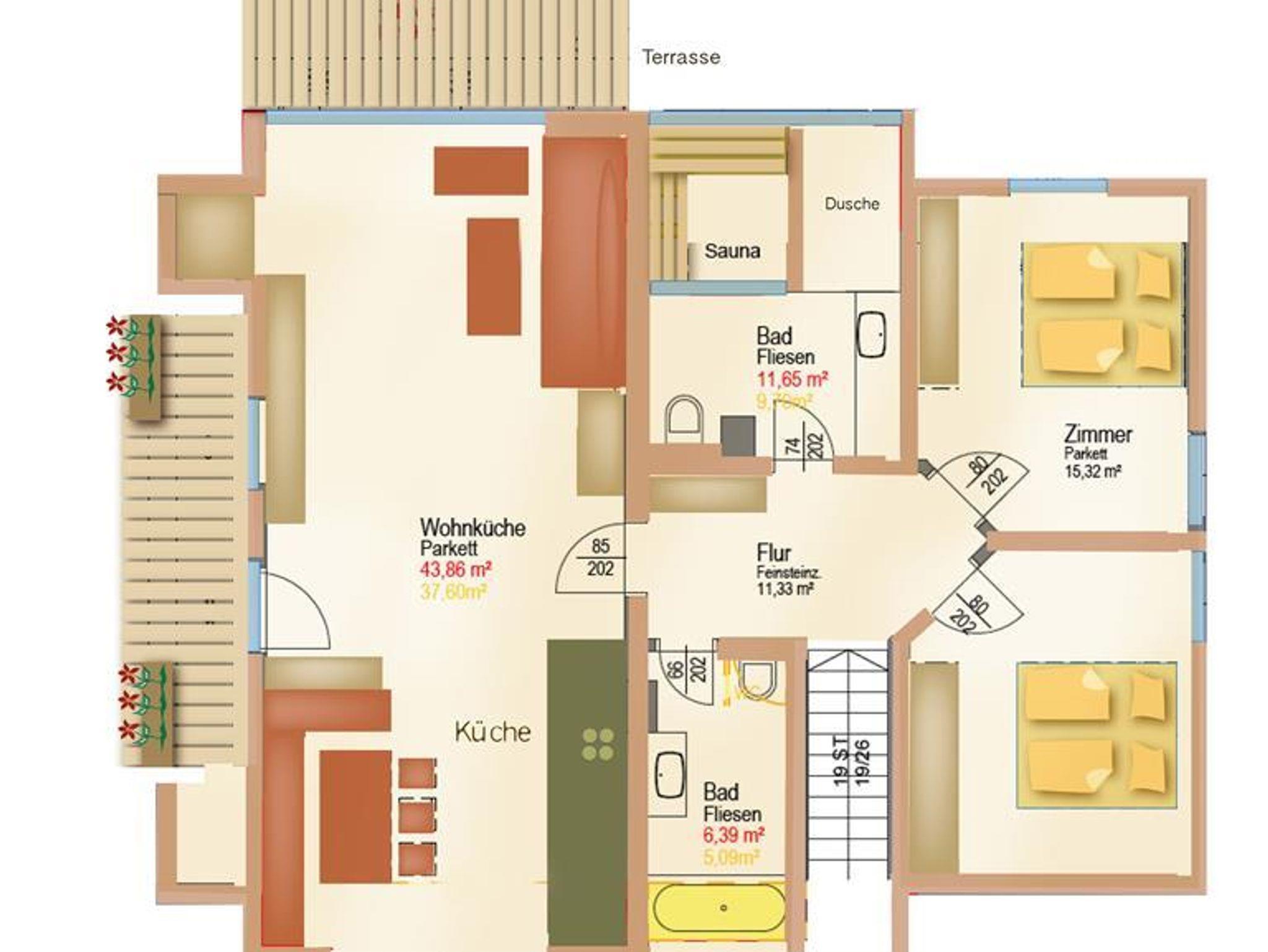 Sonnige, ebenerdige FeWo mit großem Garten, Holzböden, Kachelofen, Lodenstoffe, stilvoll und großzügig. Großes südlich ausgelegtes WZ mit hochwertiger Küche, Esstisch für bis zu 8 Personen, 2 Schlafzimmer mit Doppelbett, 2 Badezimmer mit WC, Badewanne, Private Sauna, Zusatzbelegung im WZ, Schlafcouch für 2 Personen, 2 Kinderbetten zusätzlich möglich.
