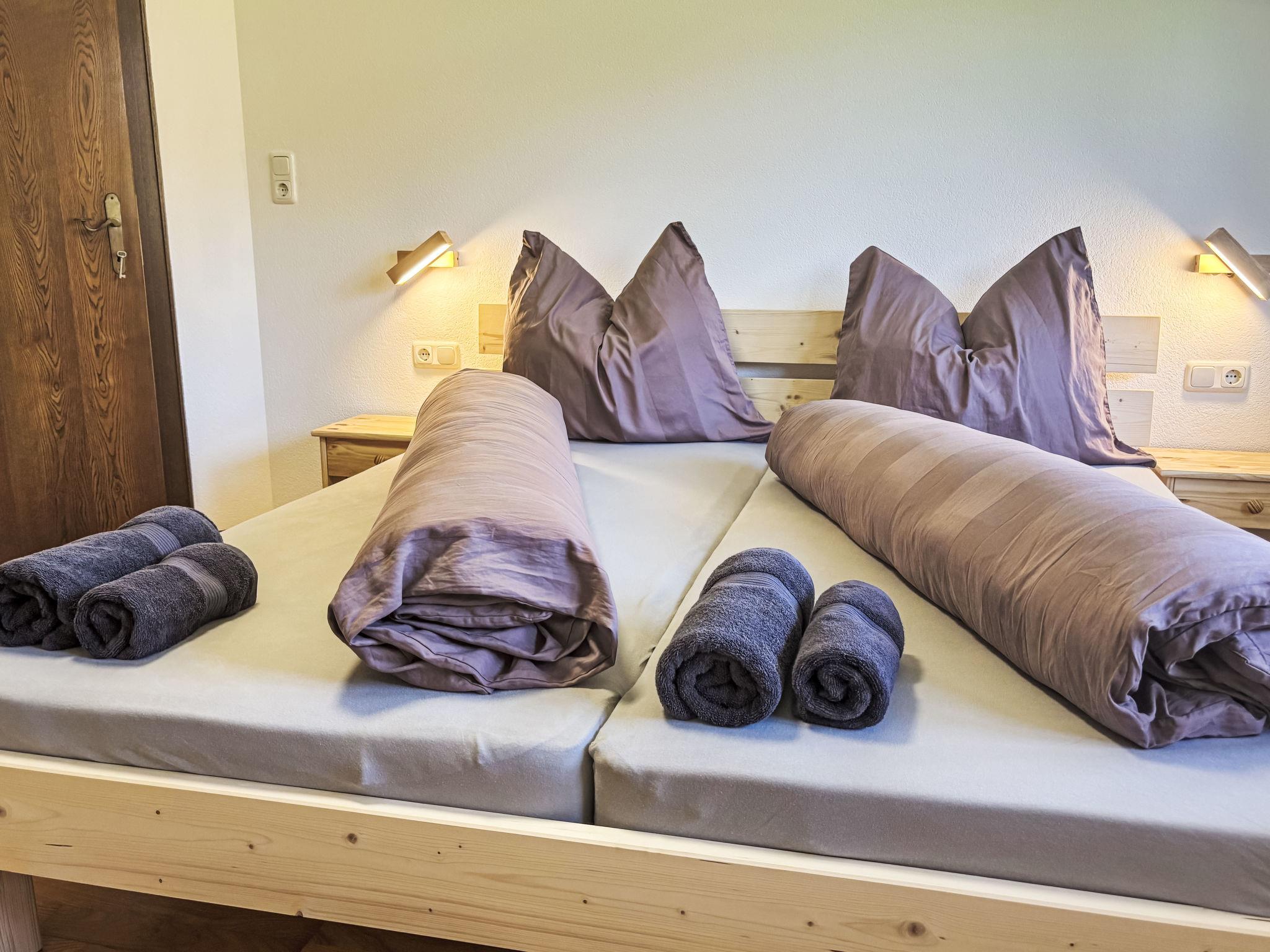 "Panoramablick", 4-room apartment 125 m2, on the ground floor. Tasteful and cosy furnishings: entrance hall with dining table. Living room with satellite TV (flat screen). 2 double bedrooms. Living/sleeping room with 1 x 1 bunk beds (90 cm, length 200 cm). Large kitchen (oven, dishwasher, 4 induction hot plates, toaster, kettle, microwave, freezer, electric coffee machine). Bath/WC. Oil heating. Terrace. Terrace furniture. Beautiful panoramic view of the mountains and the forest. Facilities: Internet (WiFi, free). Please note: non-smokers only. Maximum 1 pet/ dog allowed. Smoke alarm.