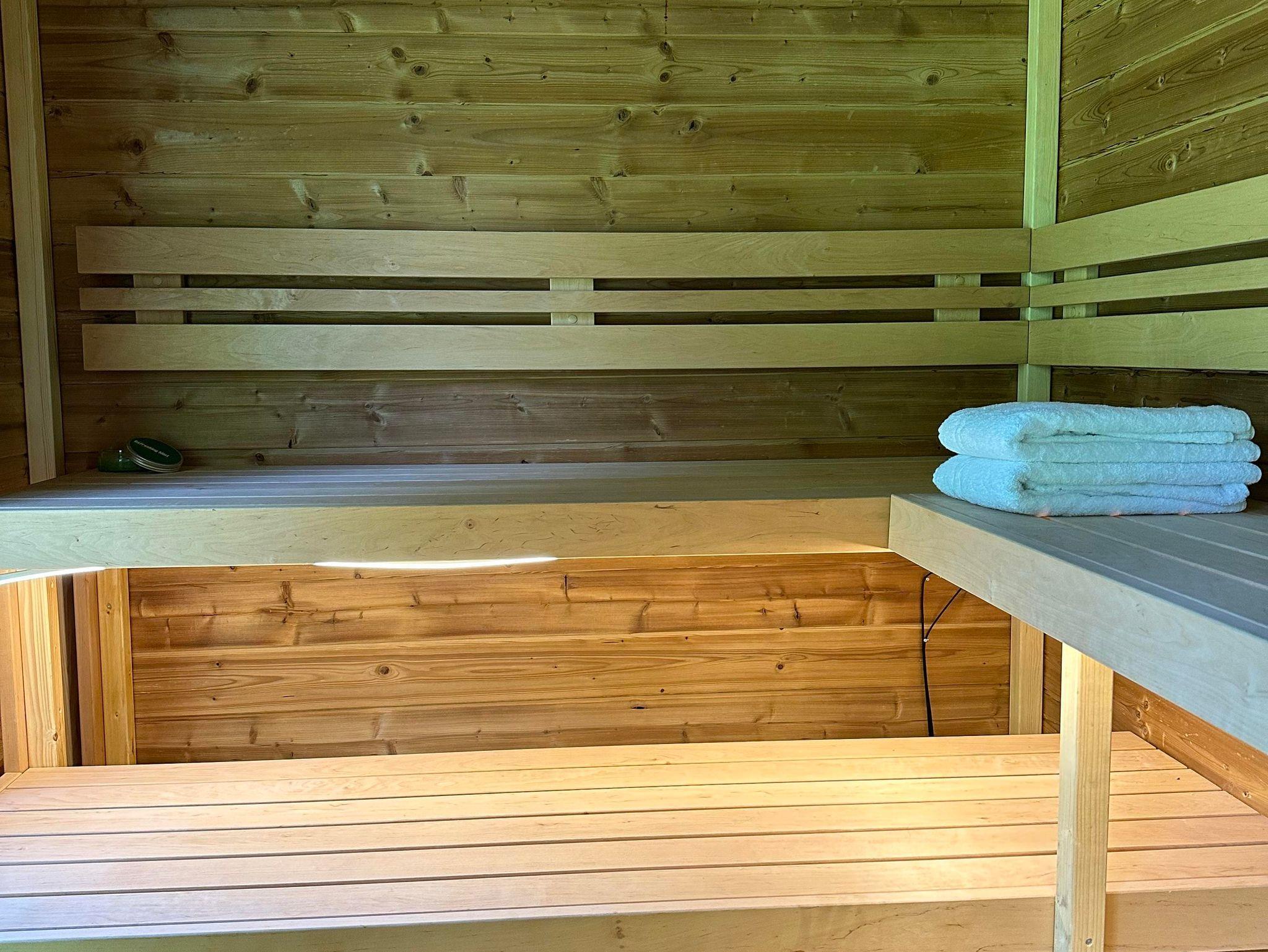 Von der zentralen Halle führt eine feste Treppe zu einer geräumigen 4-Personen-Wohnung mit einer großen Sitzecke und einer voll ausgestatteten Küche. Das Badezimmer und die Toilette sind separat. Das erste Schlafzimmer ist mit einem Doppel-Boxspringbett ausgestattet, im zweiten Schlafzimmer finden Sie zwei Einzelbetten, die auf Wunsch zusammengeschoben werden können.