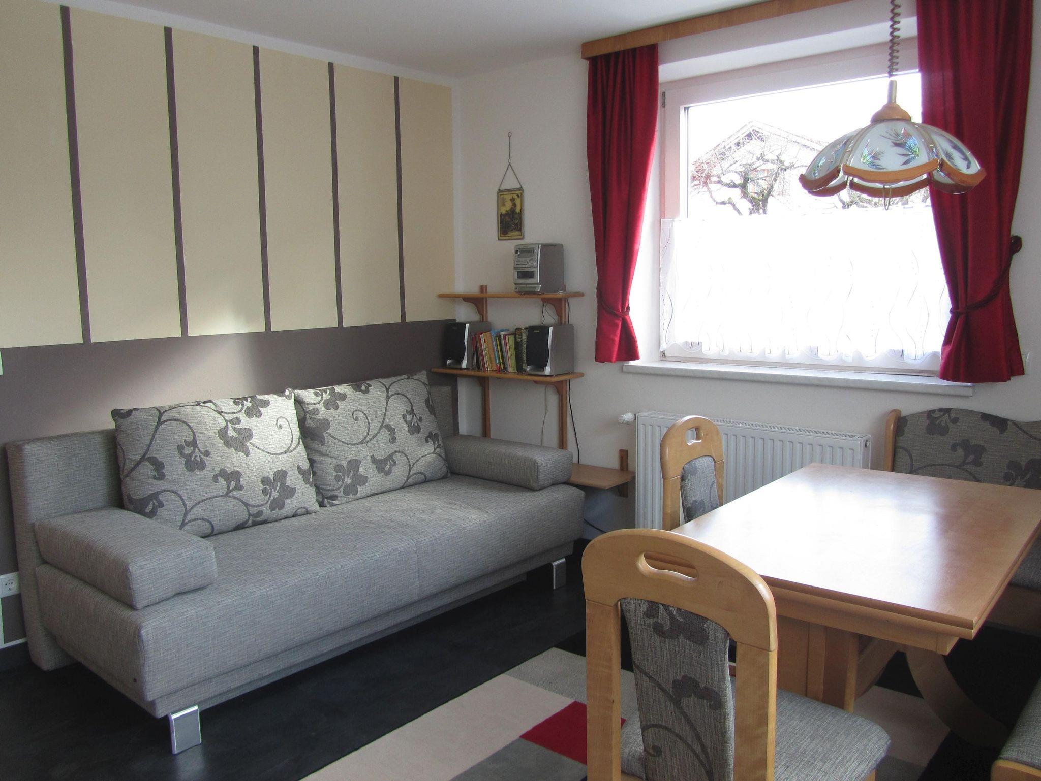 APPARTEMENT 1 INFO Appartement/ 2-4 Personen/ 45qm/ 1 Schlafraum mit Doppelbett/ 1 Wohnschlaf-raum bestehend aus Küche mit Geschirrspüler und Mikrowelle, Eckbankgruppe, Wohncouch mit Doppelbettfunktion/Bad mit WC, WT und Dusche/ Radio/ SAT Flat TV im Wohnraum und Schlafraum/ W-Lan/ Parkplatz/ eigener ebenerdiger Hauseingang/ kleine Terrasse mit Liegewiese. Kinderbett und Hochstuhl bei Bedarf vorhanden. Wir ersuchen um Verständnis, dass Haustiere nicht gestattet sind.