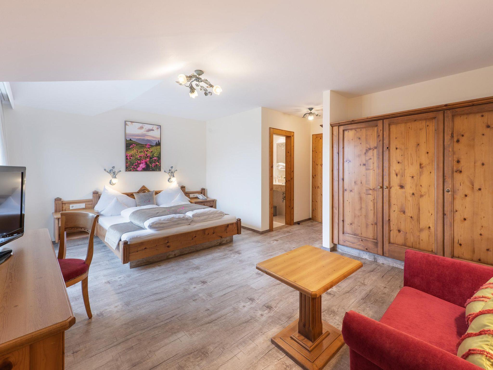 Das sonnige und elegante Doppelzimmer Hohe Salve auf der Südseite eignet sich perfekt für Paare und Familien. Das Zimmer bietet ausreichend Platz und ist mit einem bequemen Doppelbett sowie einer gemütlichen Sitzgelegenheit ausgestattet, die auch als Schlafsofa genutzt werden kann. Die Einrichtung schafft eine entspannende Atmosphäre, die Ihren Aufenthalt zu einem unvergesslichen Erlebnis macht.