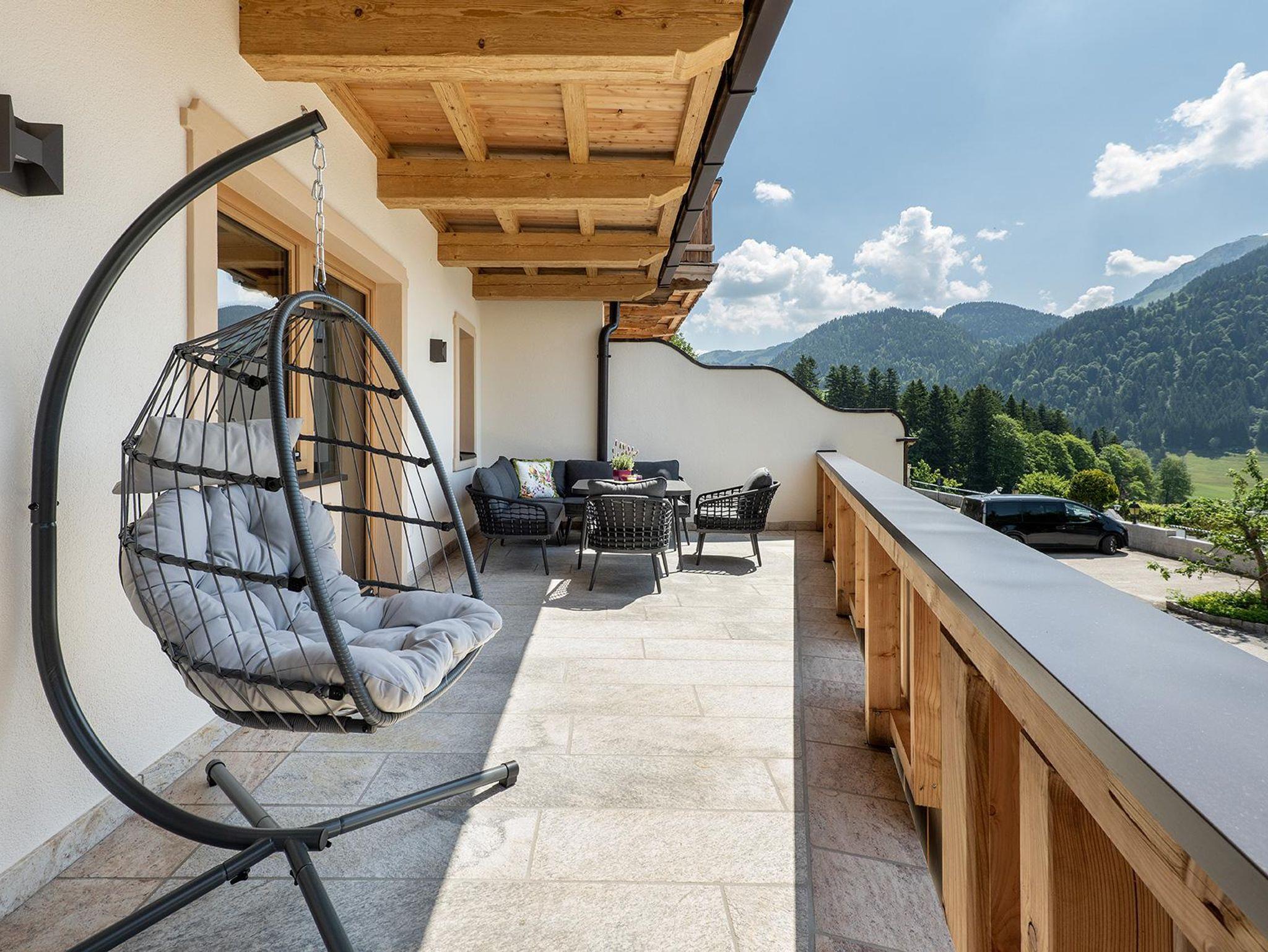 Von Ihrem eigenen Sonnenbalkon genießen Sie den traumhaften Blick auf Tirols Aussichtsberg - die Hohe Salve und den bezaubernden Schlösslgarten. Hier können Sie entspannen und die Seele baumeln lassen, während Sie die Schönheit der Kitzbüheler Alpen in vollen Zügen genießen.