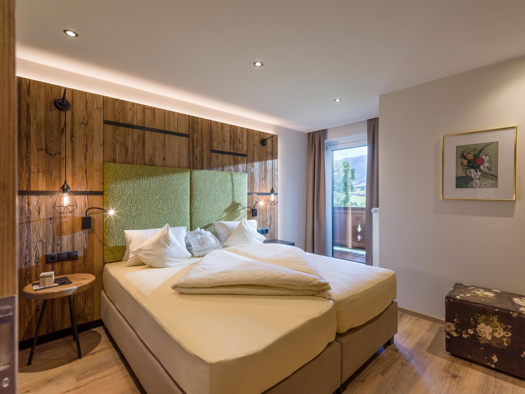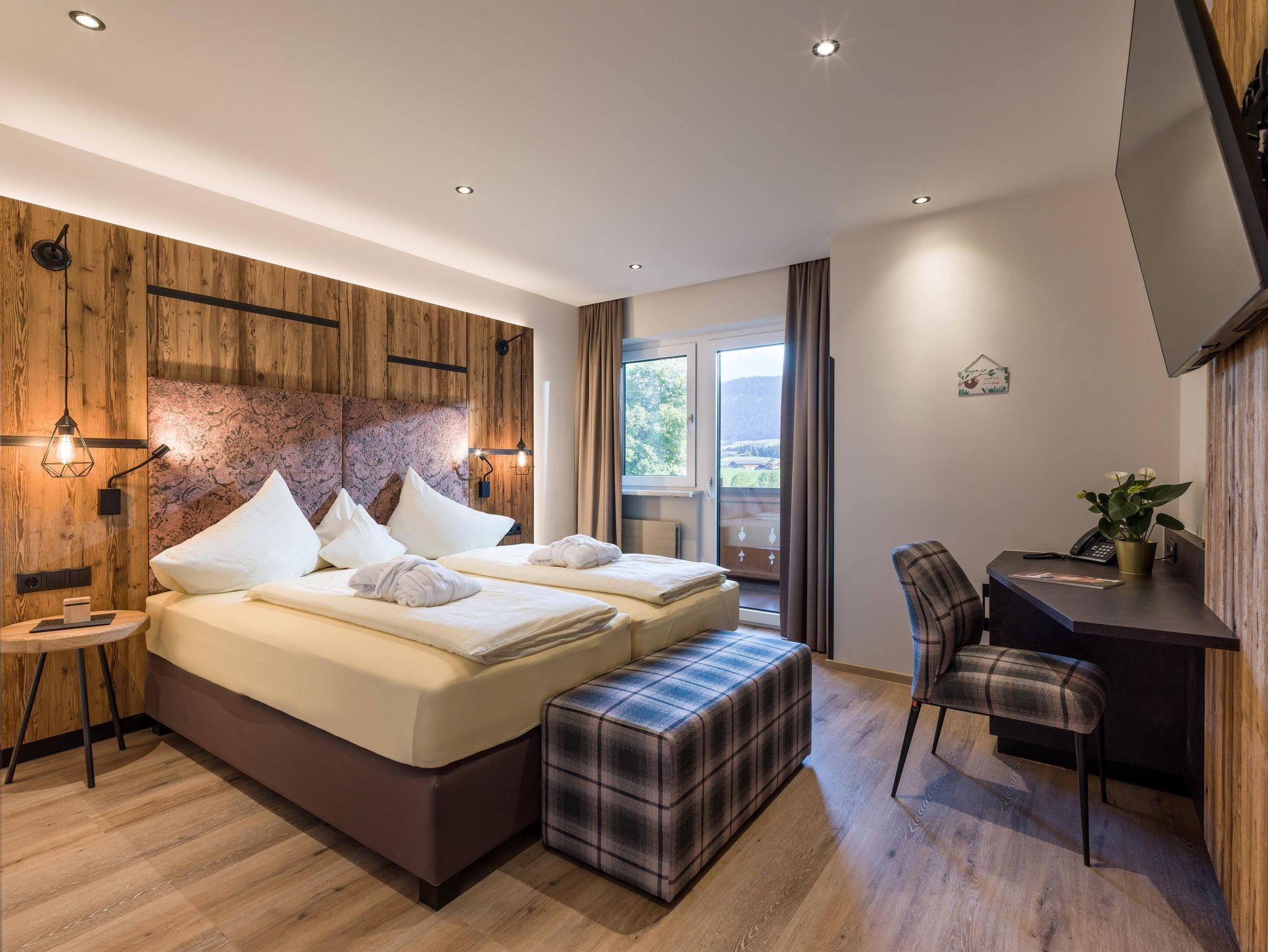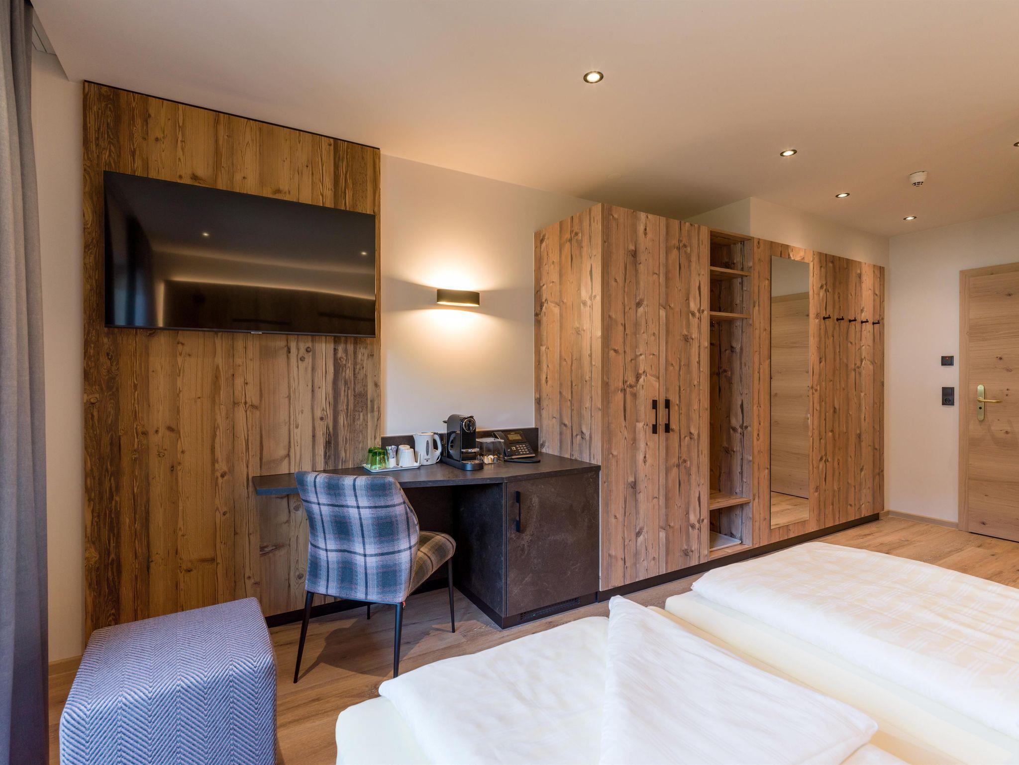 Unser Doppelzimmer Bergblick (ca. 22m²) ist komfortabel ausgestattet mit DU/WC, Föhn, Safe,